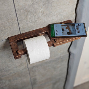 Wood Toilet Paper Holder with Phone Shelf, Wall Mounted Oak Roll Holder for Bathroom, Minimalist Toilet Paper Storage