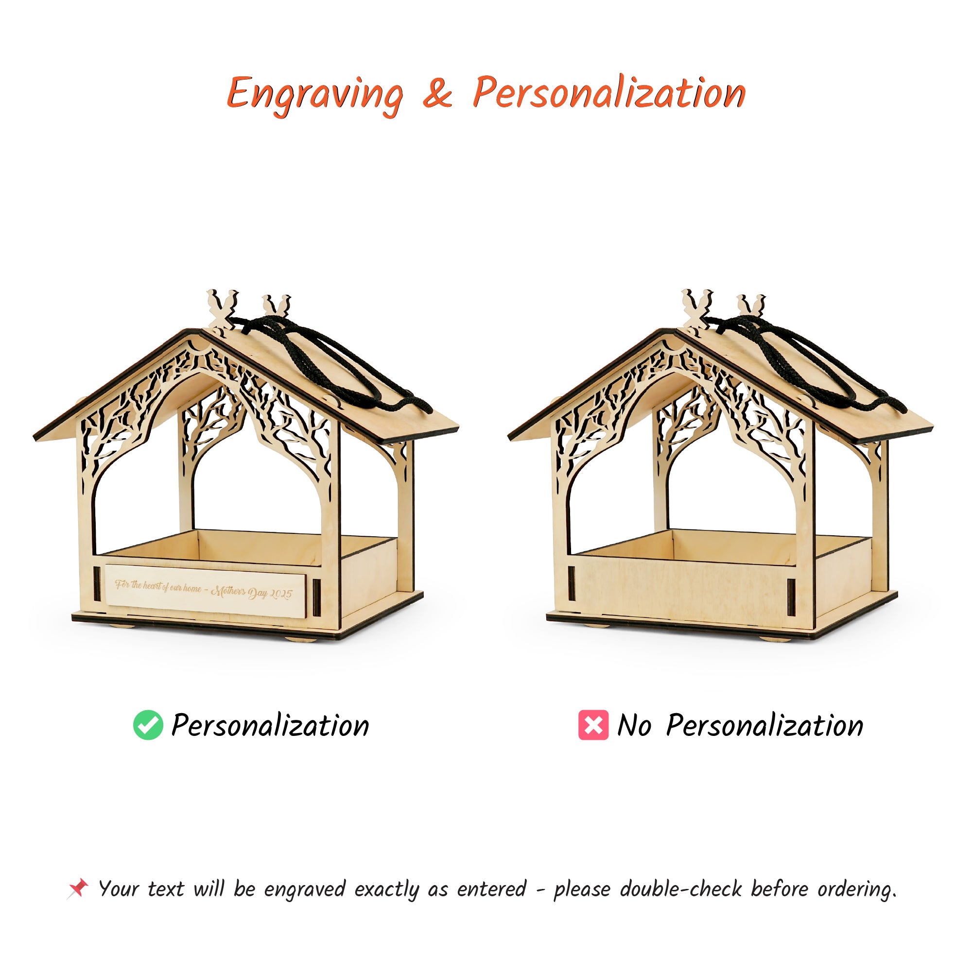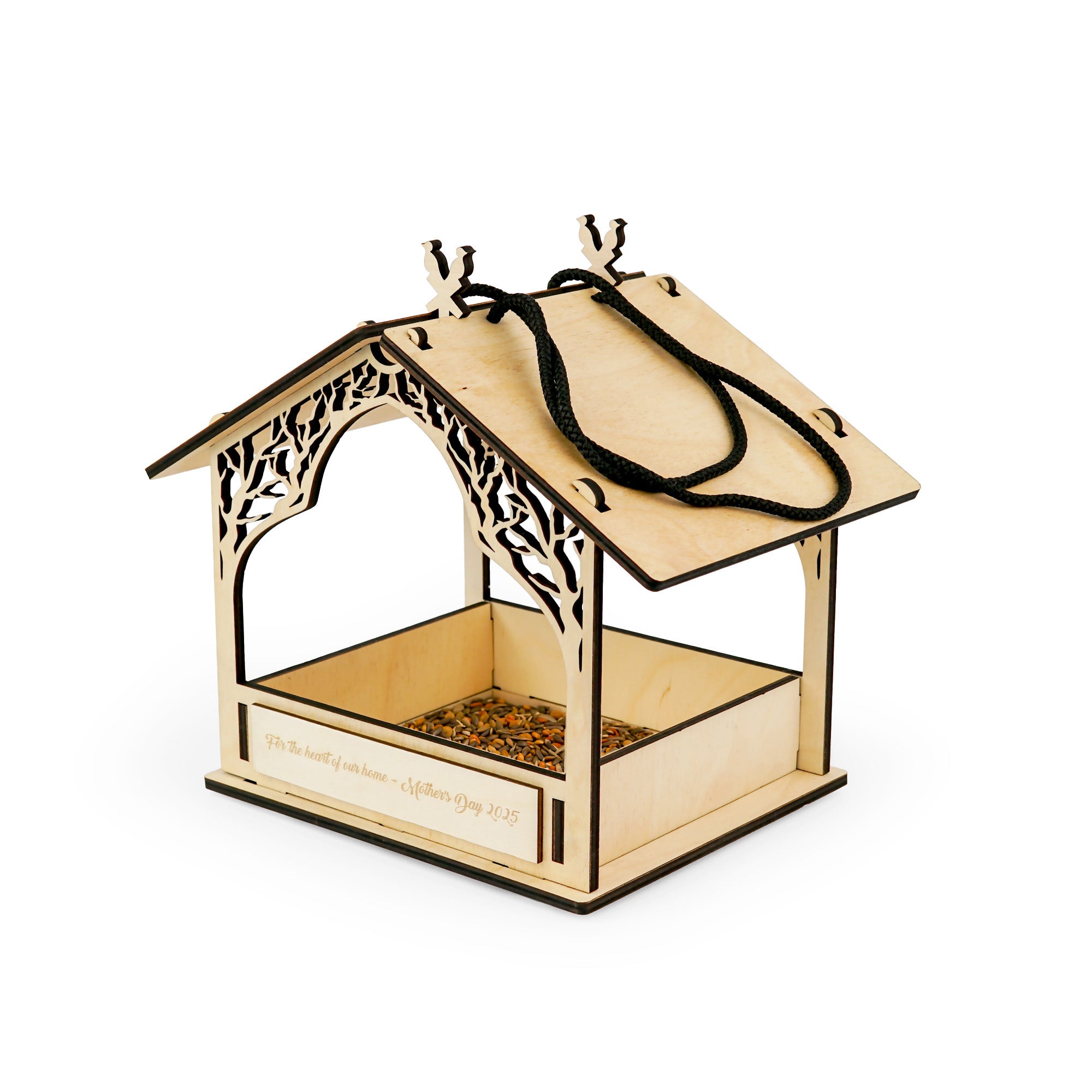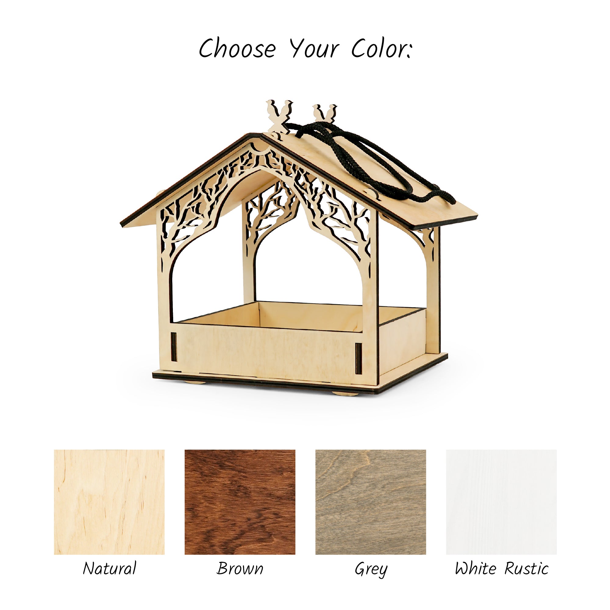 This wooden bird feeder is a handcrafted piece made from durable birch plywood, featuring a clean, modern design. Built to be both functional and decorative, it fits seamlessly into any outdoor space. Its natural wood finish adds a subtle rustic touch, making it a solid addition to gardens, porches, balconies, or yards. Use it to attract wild birds like finches, sparrows, or chickadees, and fill it with sunflower seeds, suet, or mixed bird seed. Whether used as a feeder or a piece of outdoor decor, it offers a straightforward, effective solution for everyday bird feeding.
