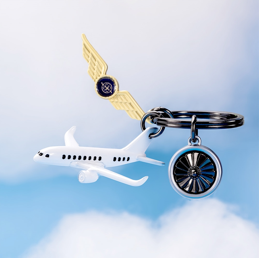 The Pilot Plane Keychain features a detailed airplane design with an engine and a badge. This aviation keychain works as a practical accessory for keys, backpacks, travel bags, or luggage. A great choice for pilots, aviation fans, and airplane lovers, it shows a passion for flying and aircraft.