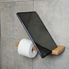 Wood Toilet Paper Holder with Phone Shelf, Wall Mounted Oak Roll Holder