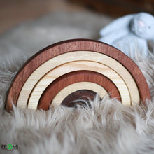 This beautiful wooden rainbow stacking toy is made from natural smooth solid wood, is meant to last a lifetime. Your kid can safely chew it, taste it - it is absolutely safe and made from ecological materials. The toy has six different size arches that can be put together to create a beautiful rainbow.