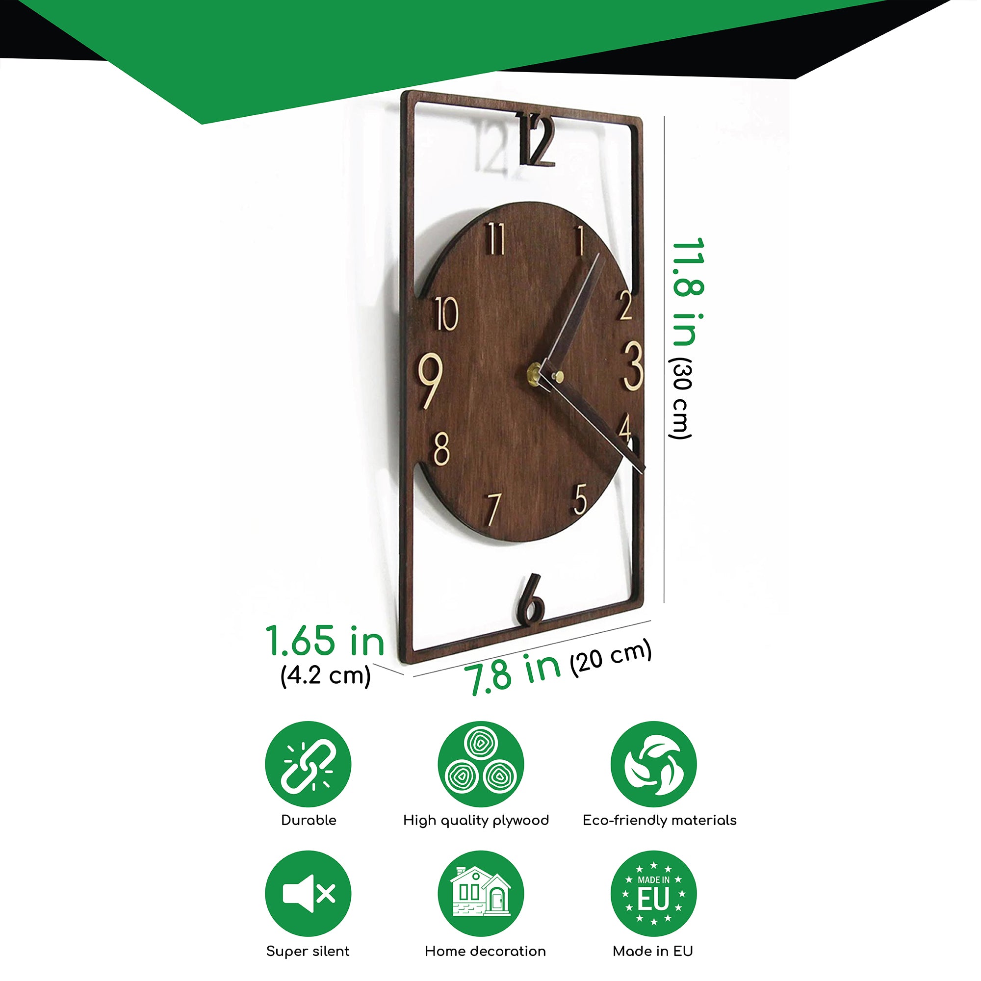 Wooden Black Wall Clock, Non-Ticking mechanism