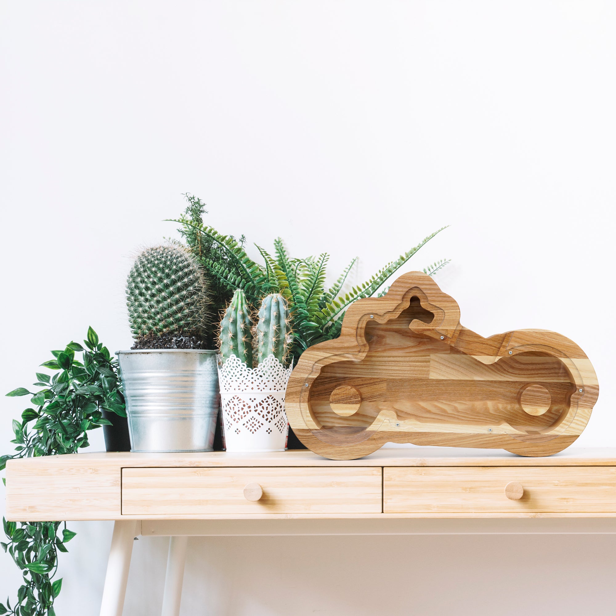 Motorcycle shaped piggy bank, Wooden Money Box