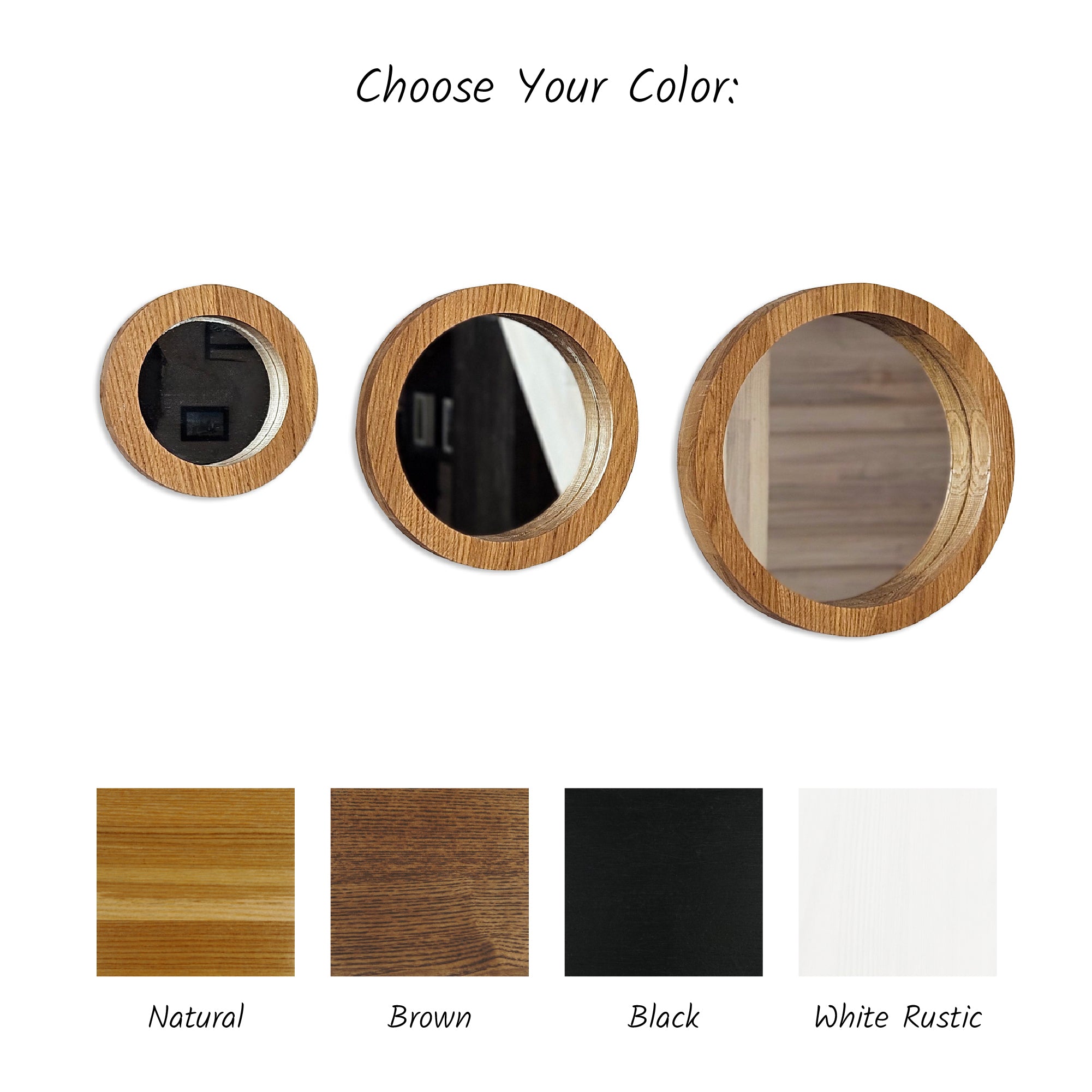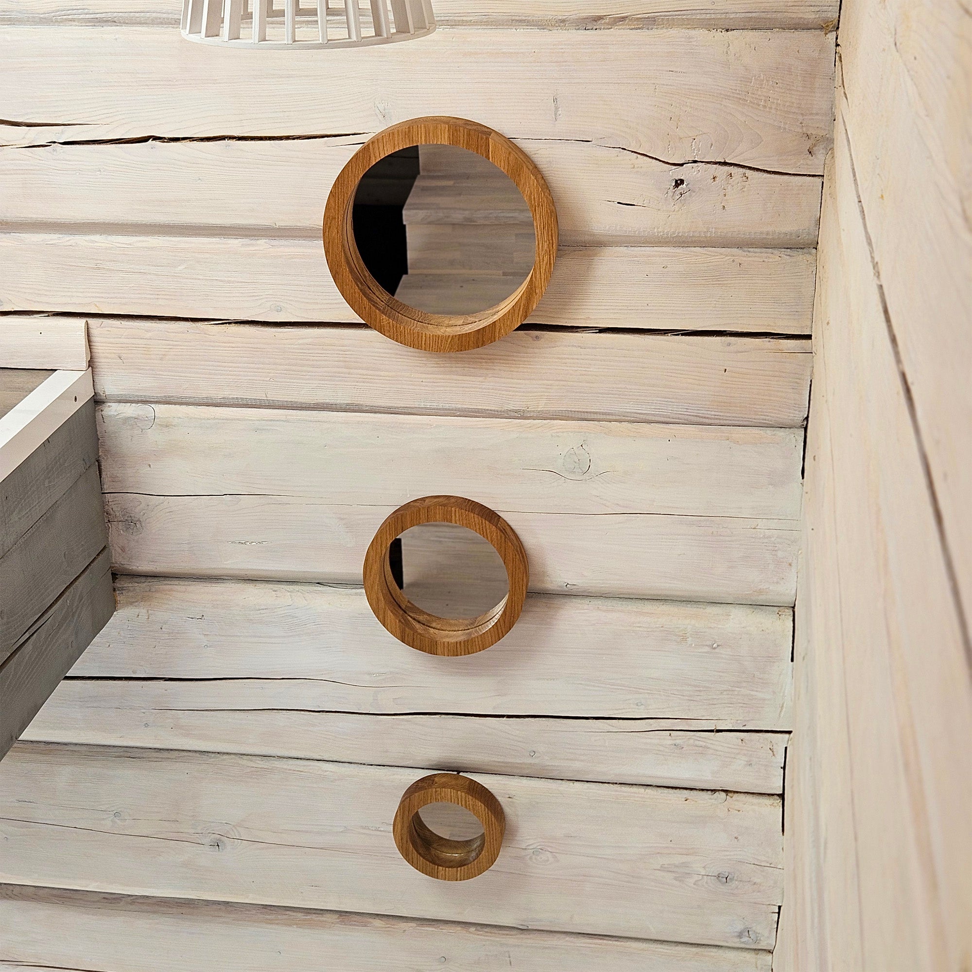 Set of 3 Oak Wood Wall Mirrors, Rustic Wooden Frame Mirrors for Living Room, Bathroom, or Entryway