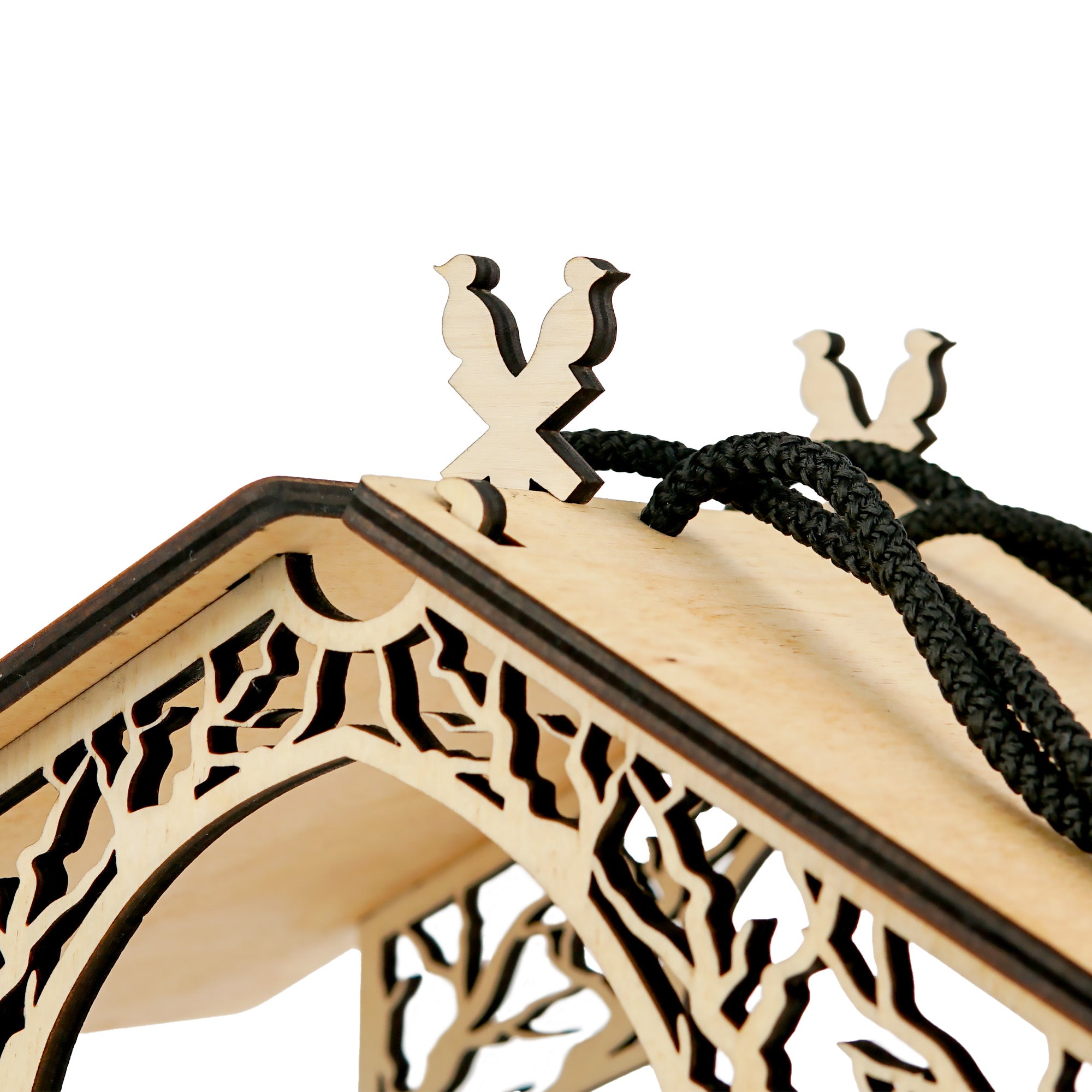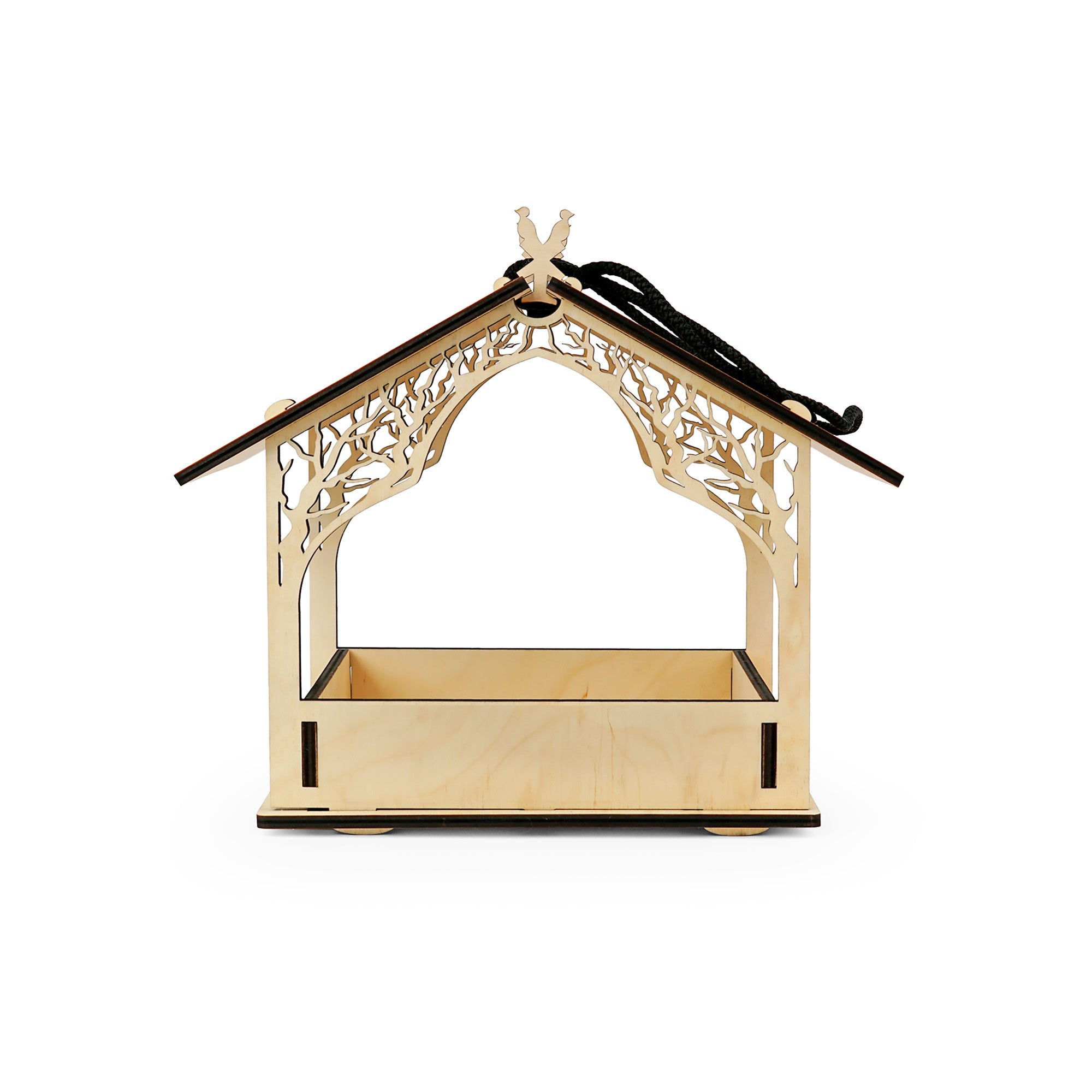 Rustic Wooden Bird Feeder, Outdoor Hanging Feeder for Wild Birds with Natural Wood Finish