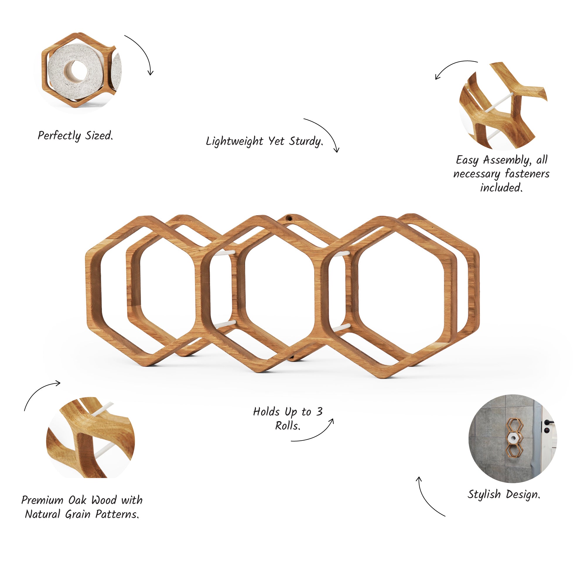 Triple Roll Toilet Paper Holder, Wall Mounted Bathroom Organizer for Extra Storage & Easy Access