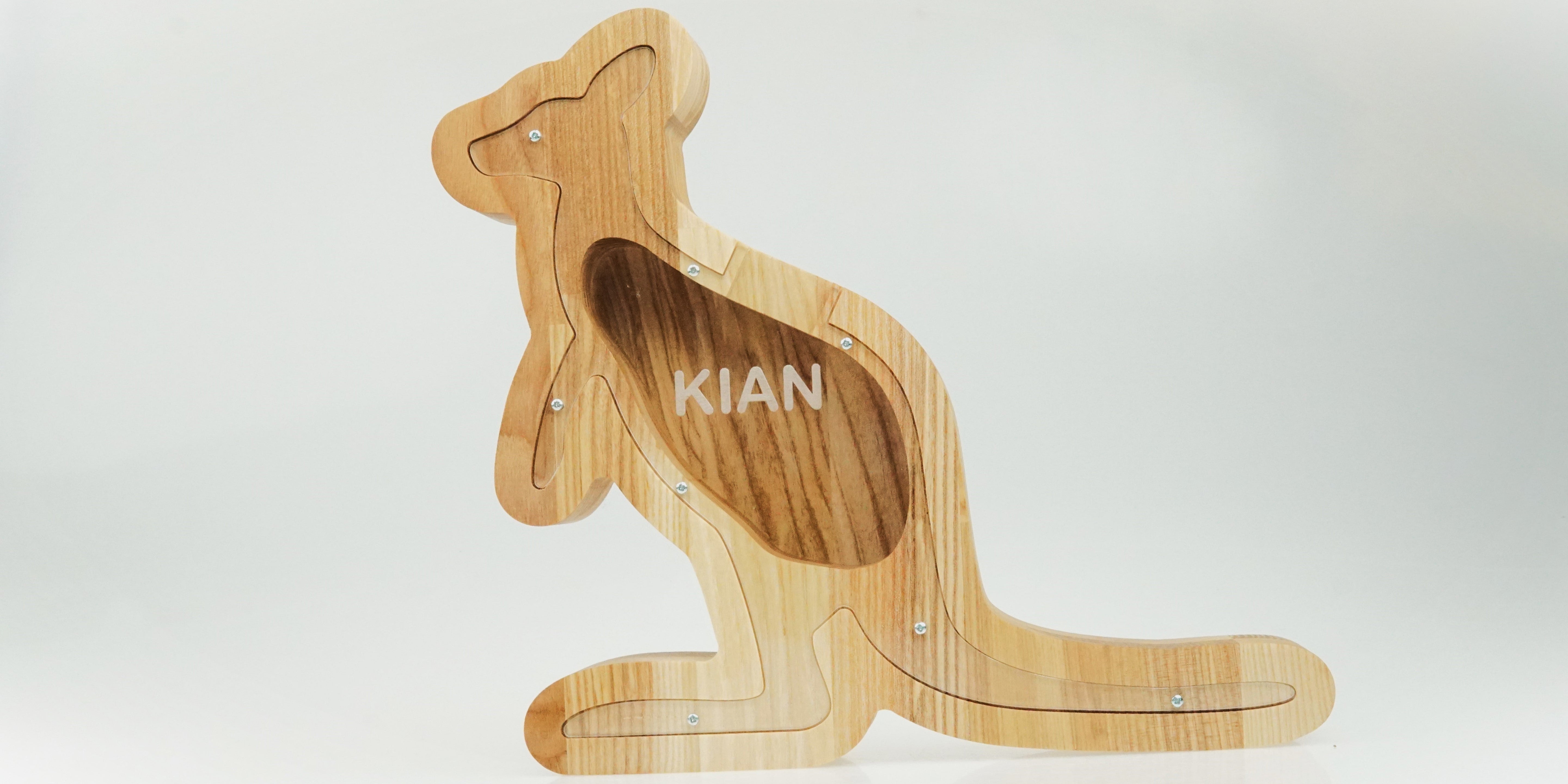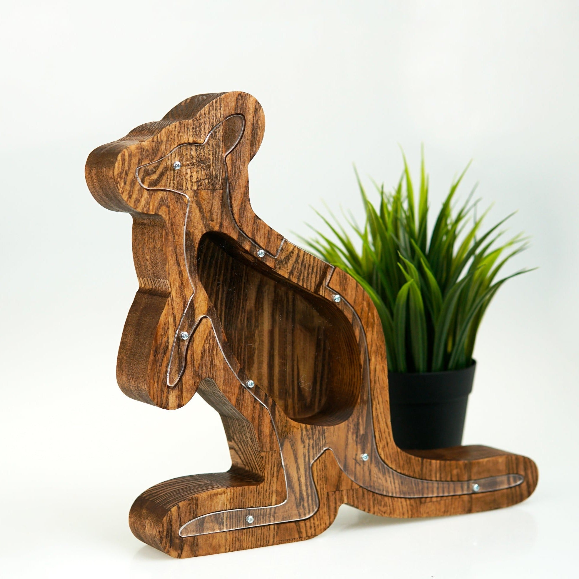 Wooden Piggy Bank Kangaroo (Brown, Engraving)