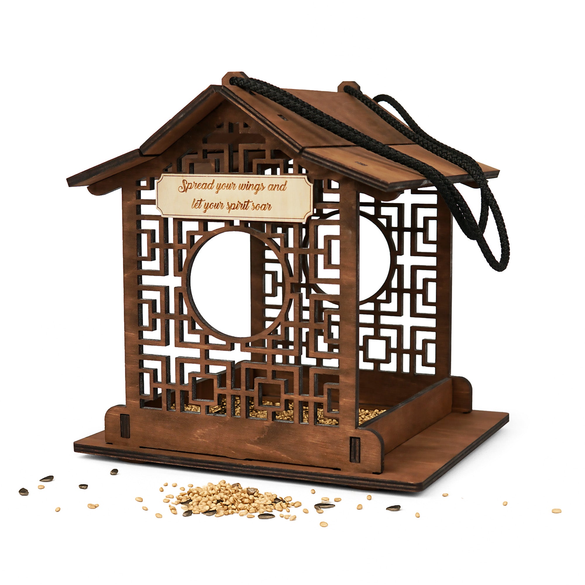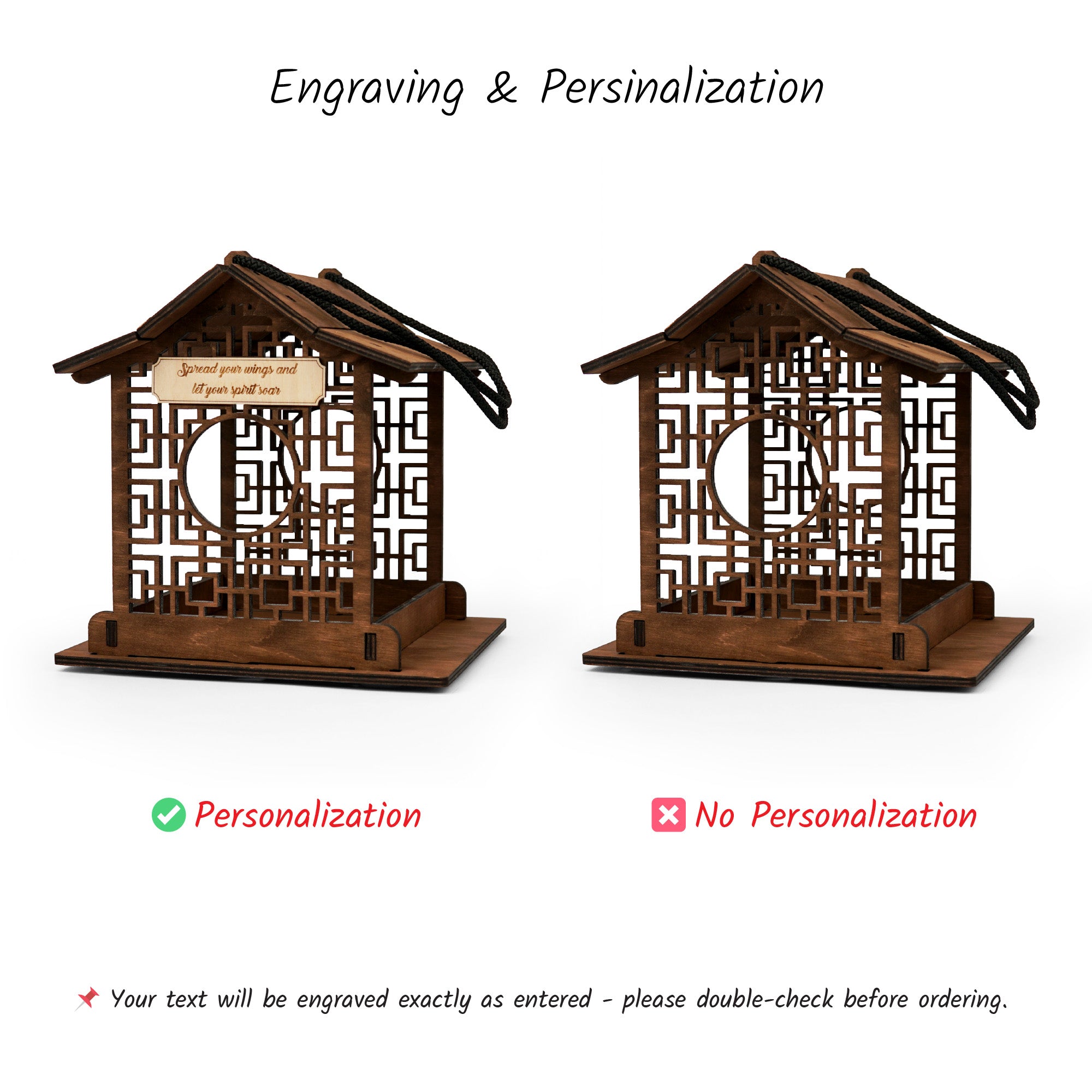 Personalized Wooden Bird Feeder with Asian Architecture Design
