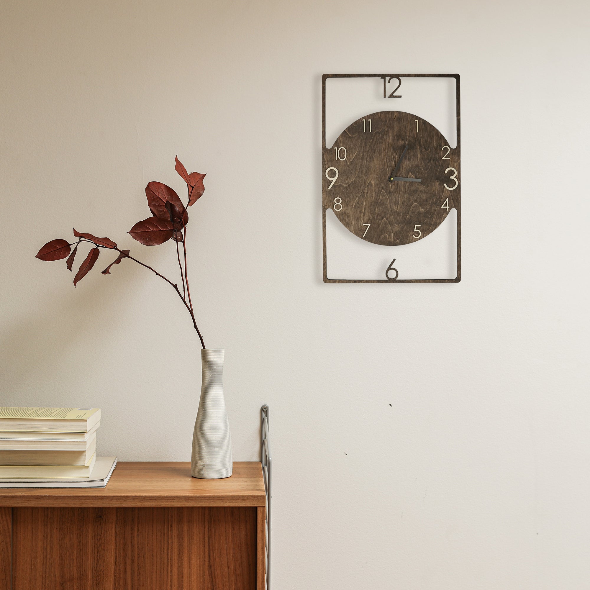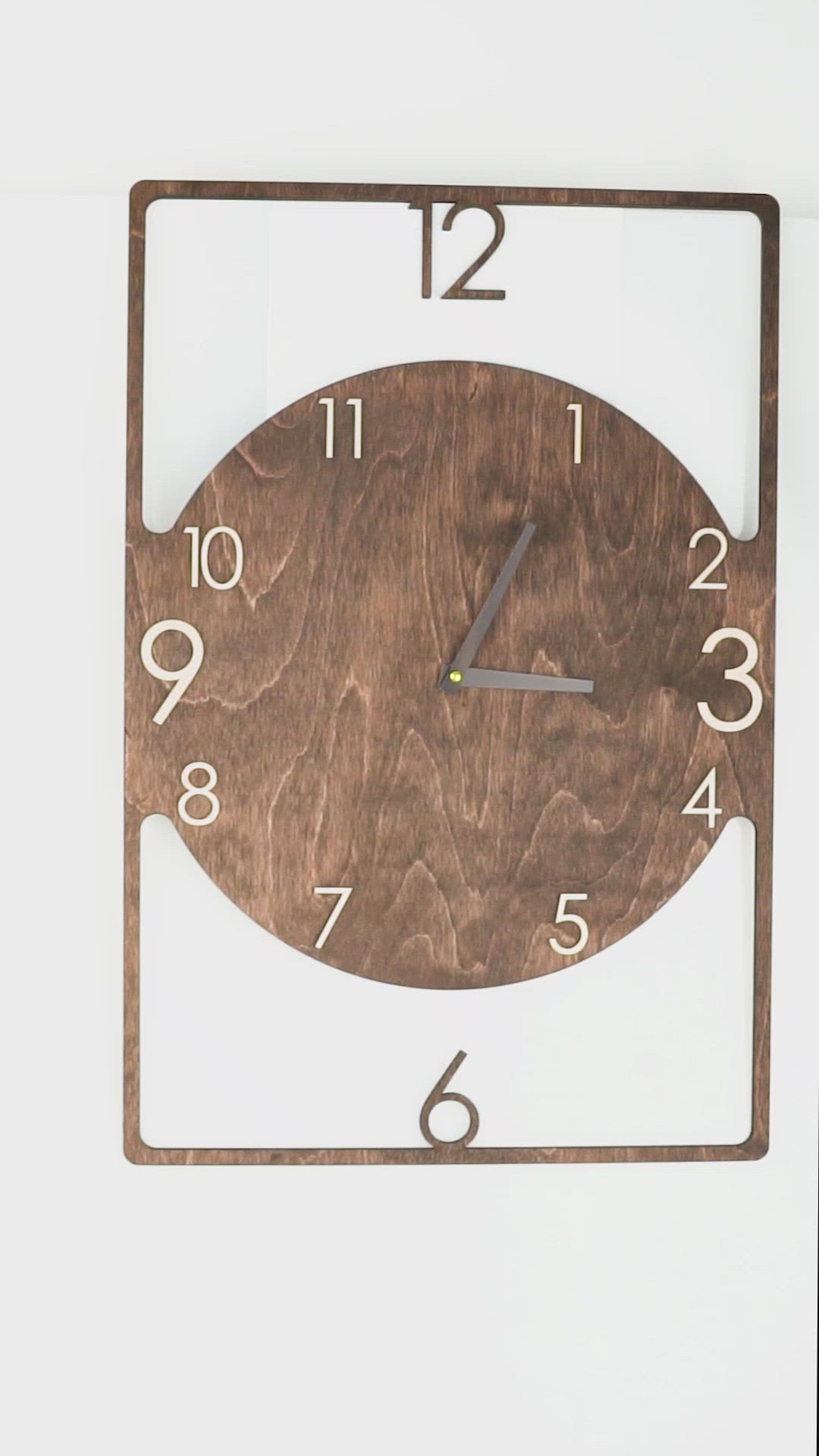 The clock is made of high-quality 3mm plywood which has been painted brown to allow this watch to blend into any interior. Also, the hands of this clock are unique and are placed only on the watches of our production. The watch is hung on the wall on a hook or nail. The mechanism has a special hole for hanging.