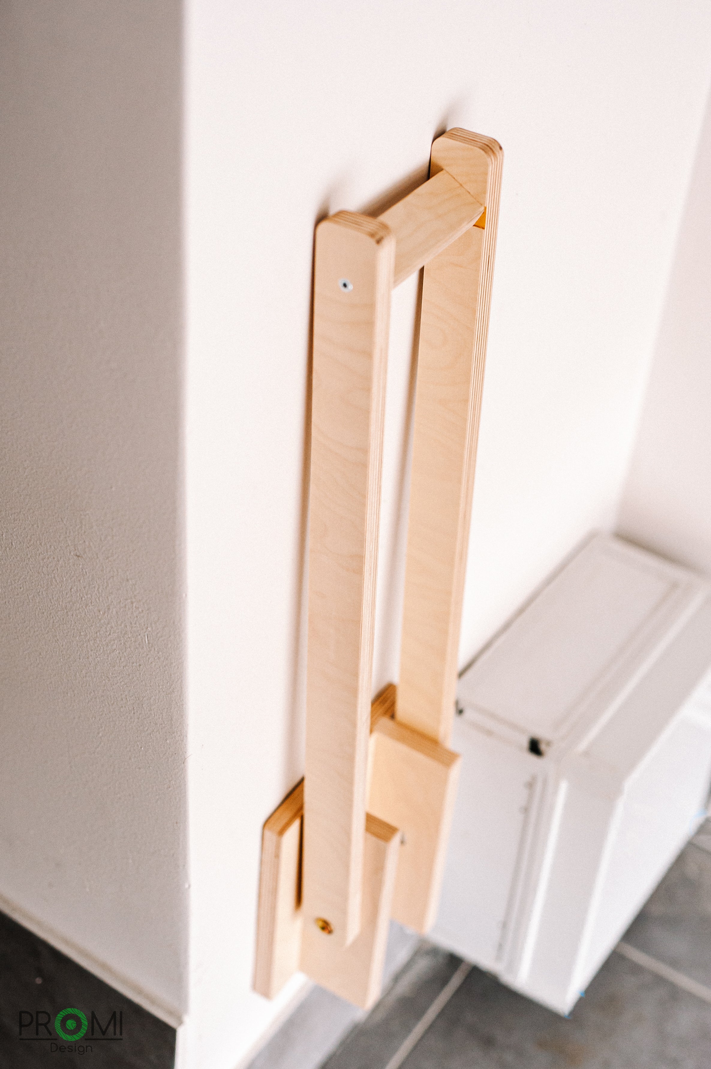 This simple, but yet genius wall bike holder will be a lovely addition to any garage or room.  It doesn't require much but will save a lot of space for any biker owner. Easy to install design, stylish and practical at the same time.