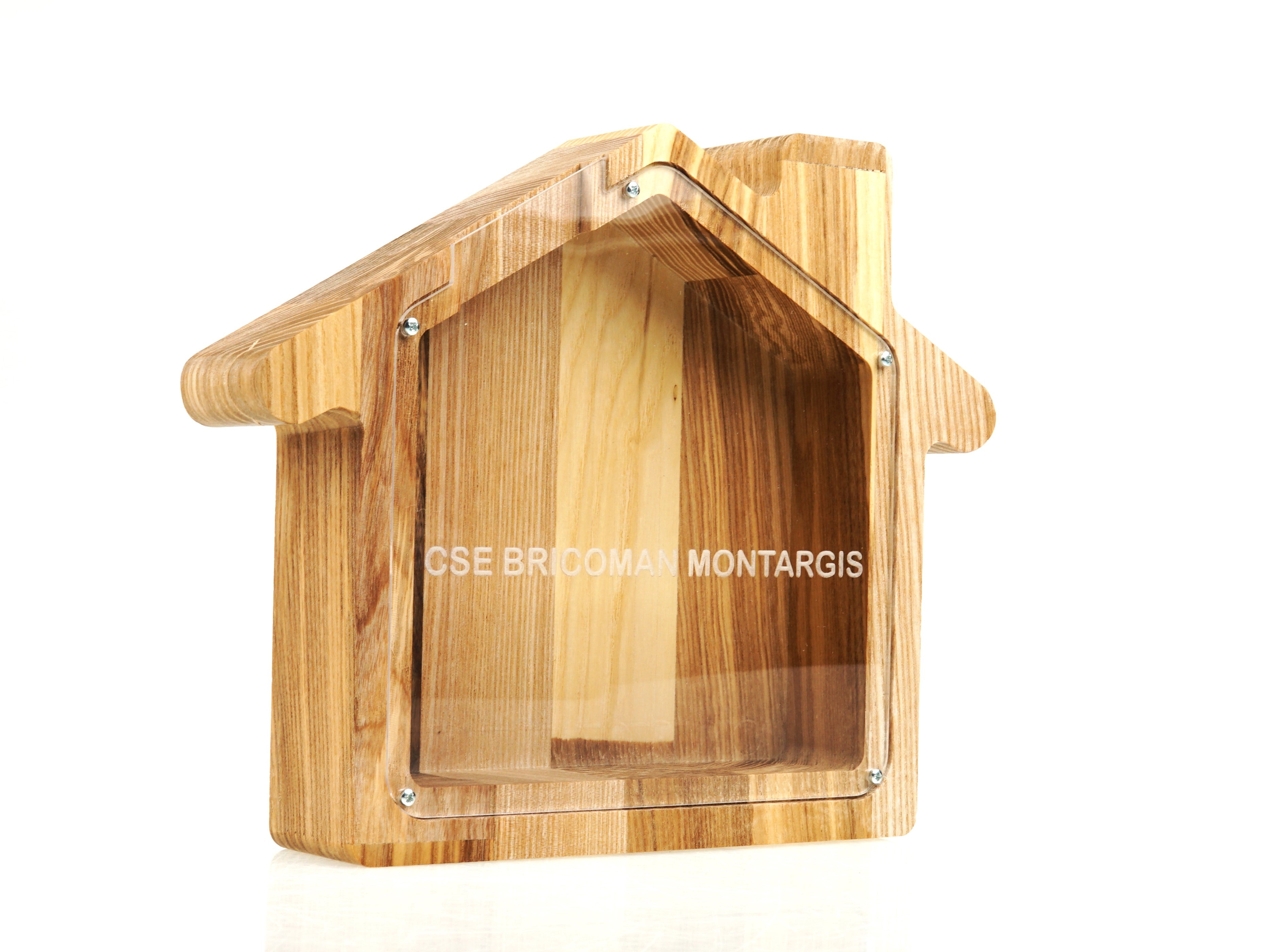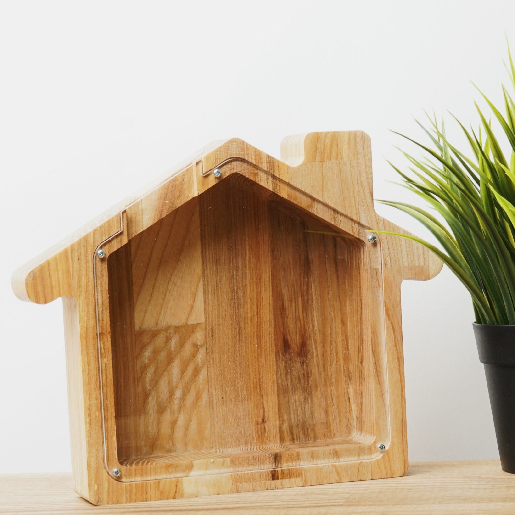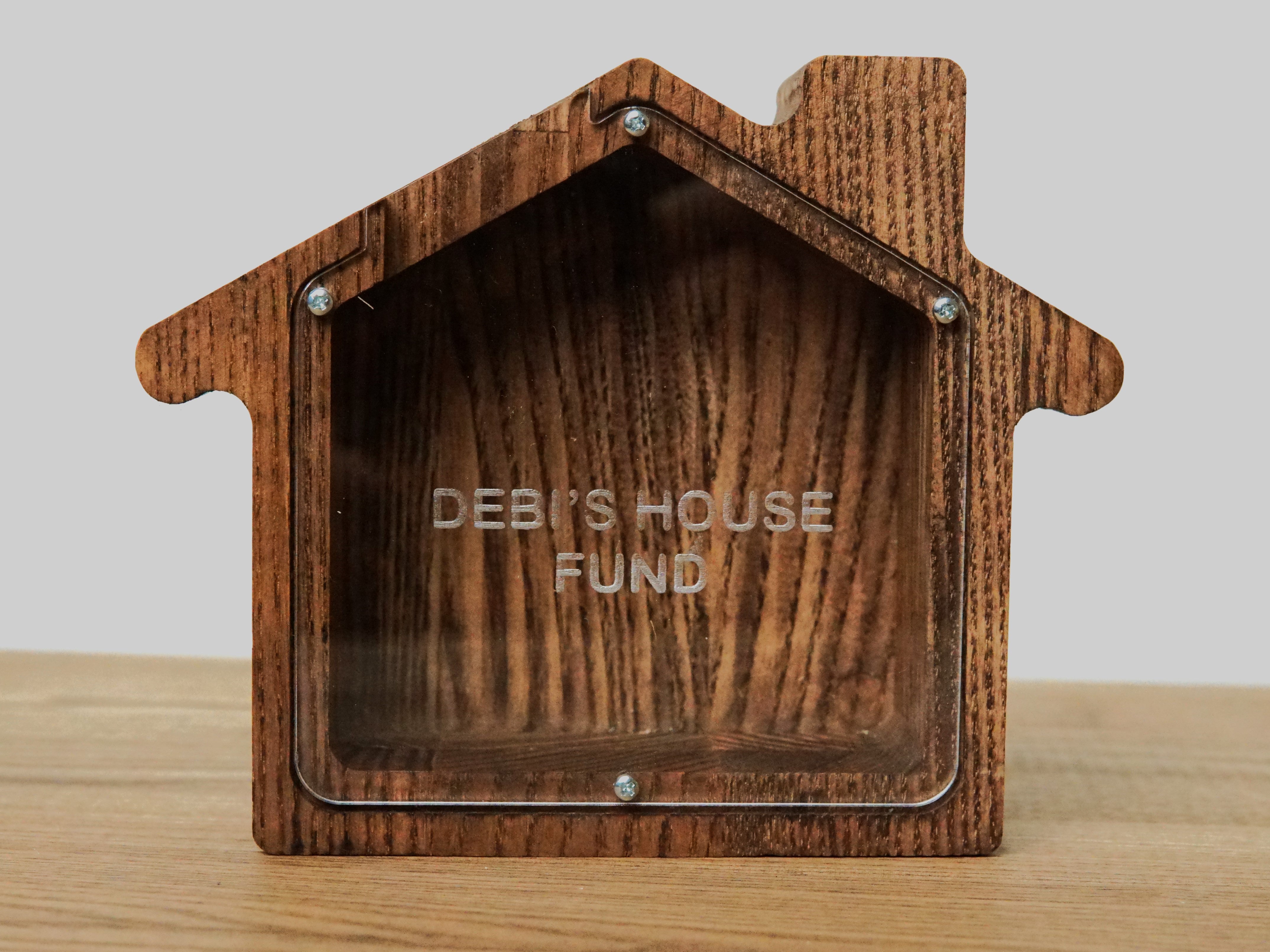 Wooden Piggy Bank House (Engraving)