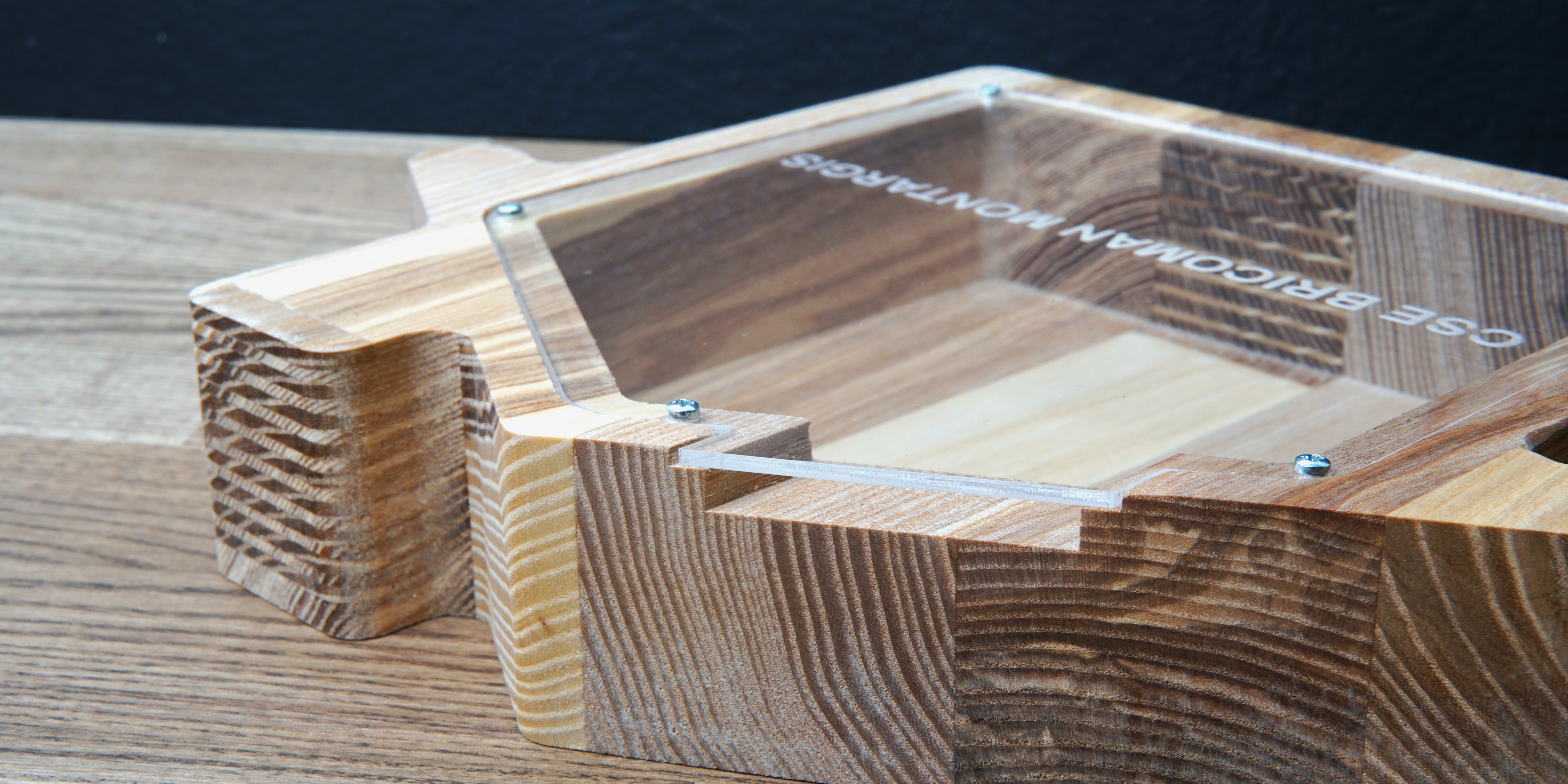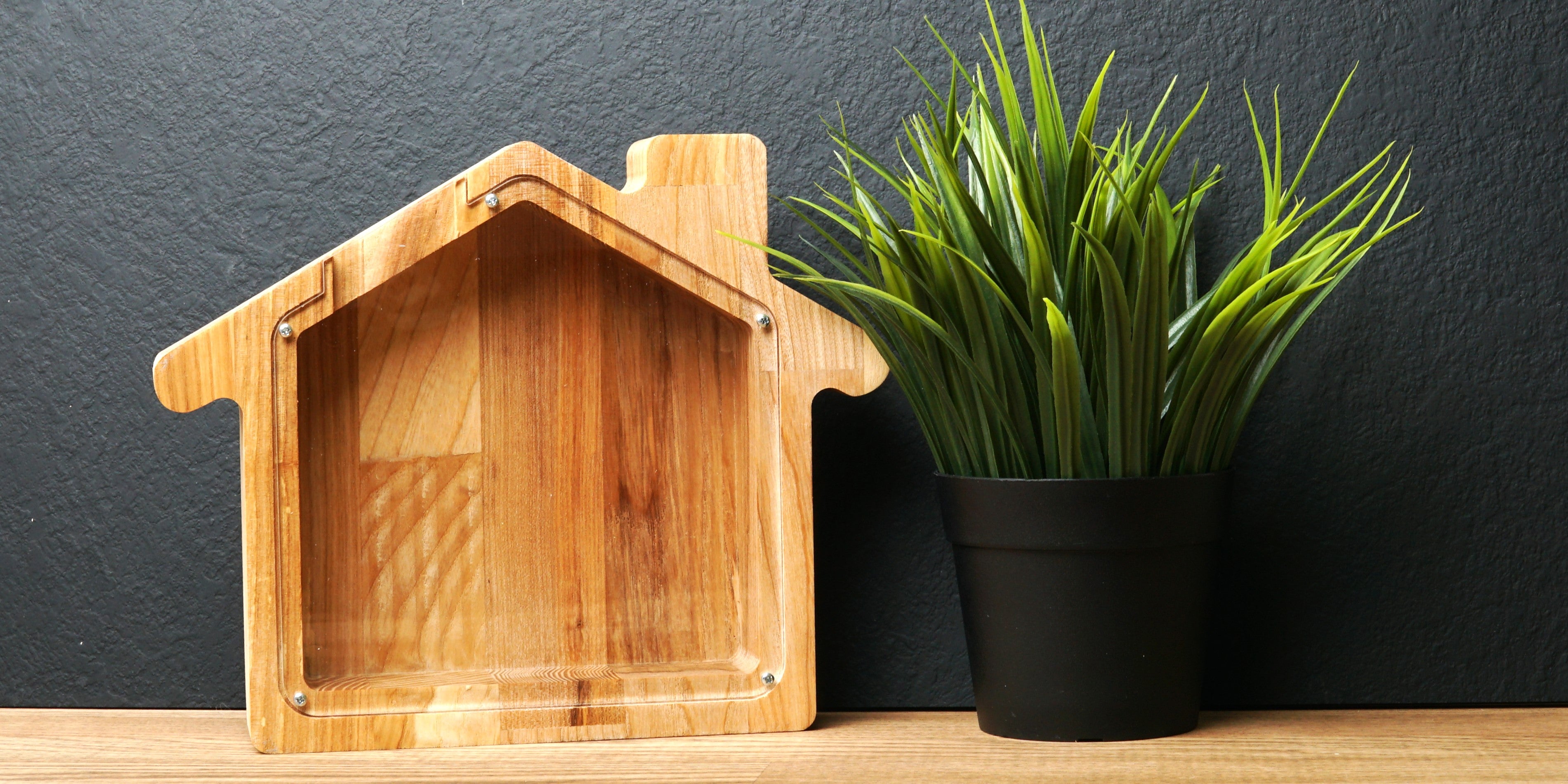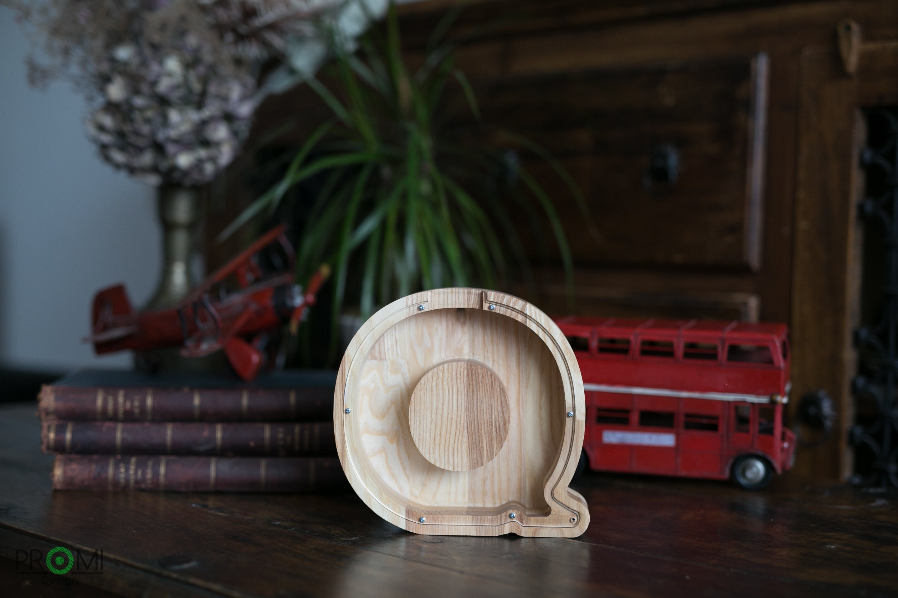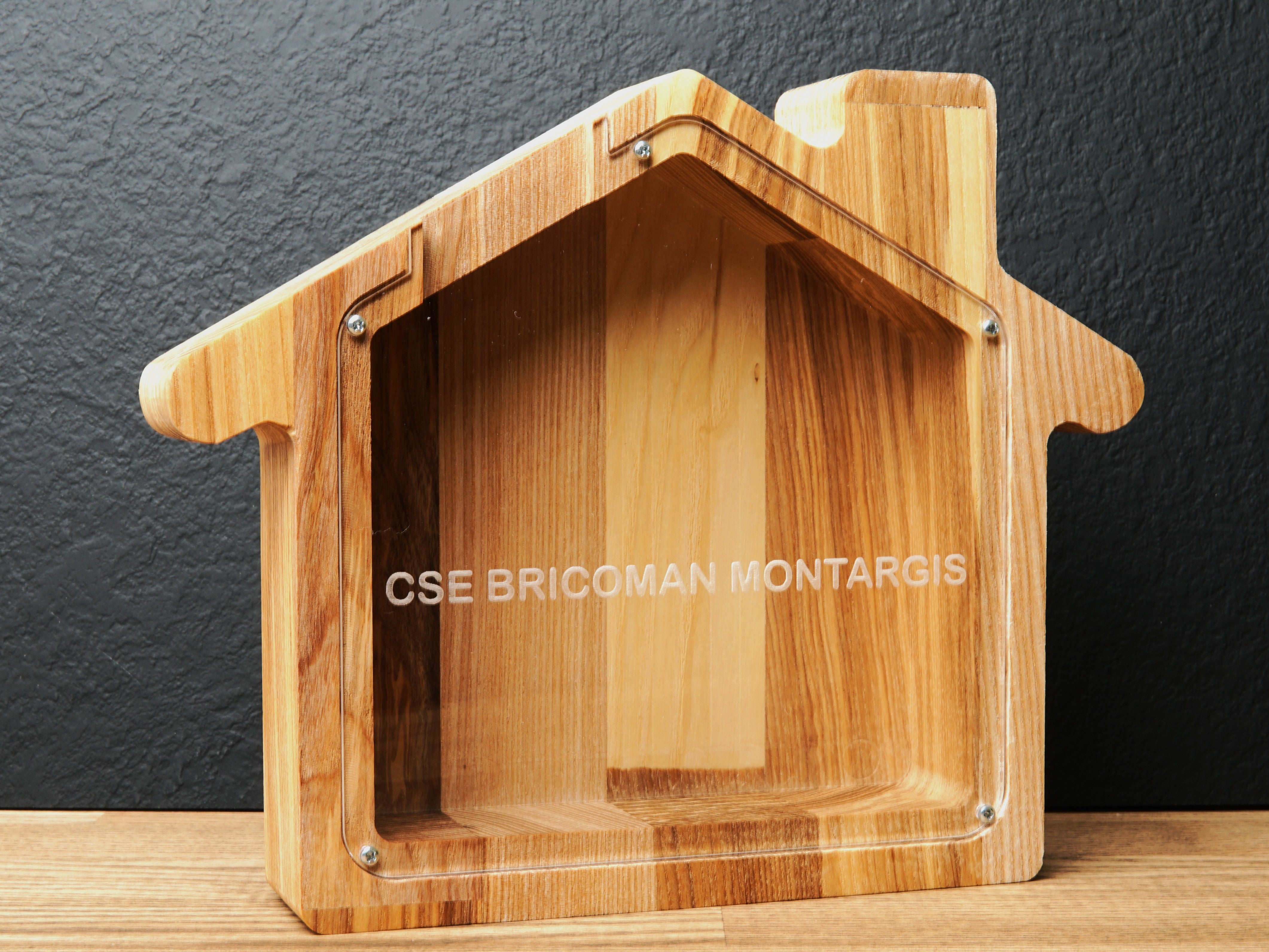 Wooden Piggy Bank House (Engraving)