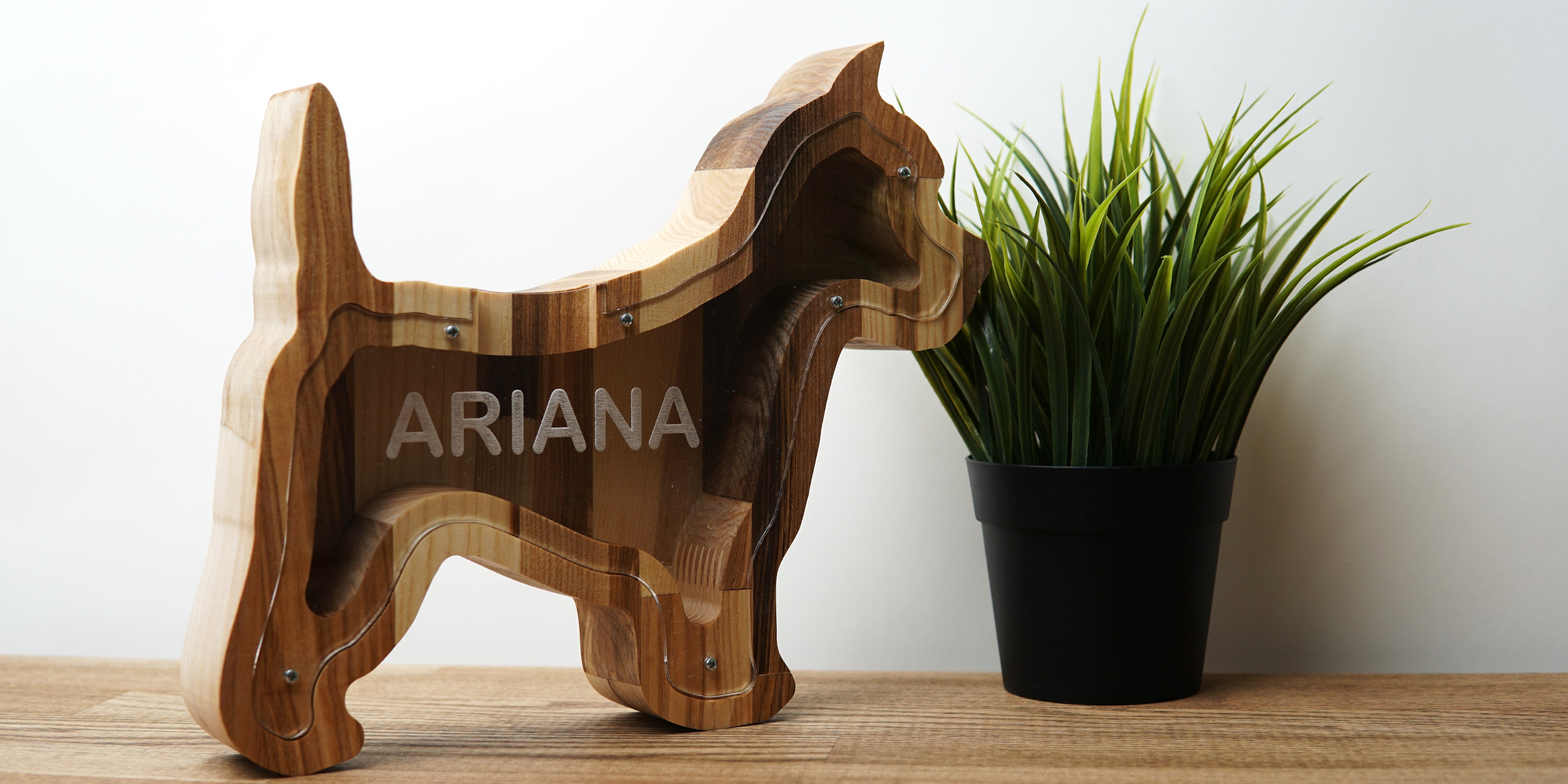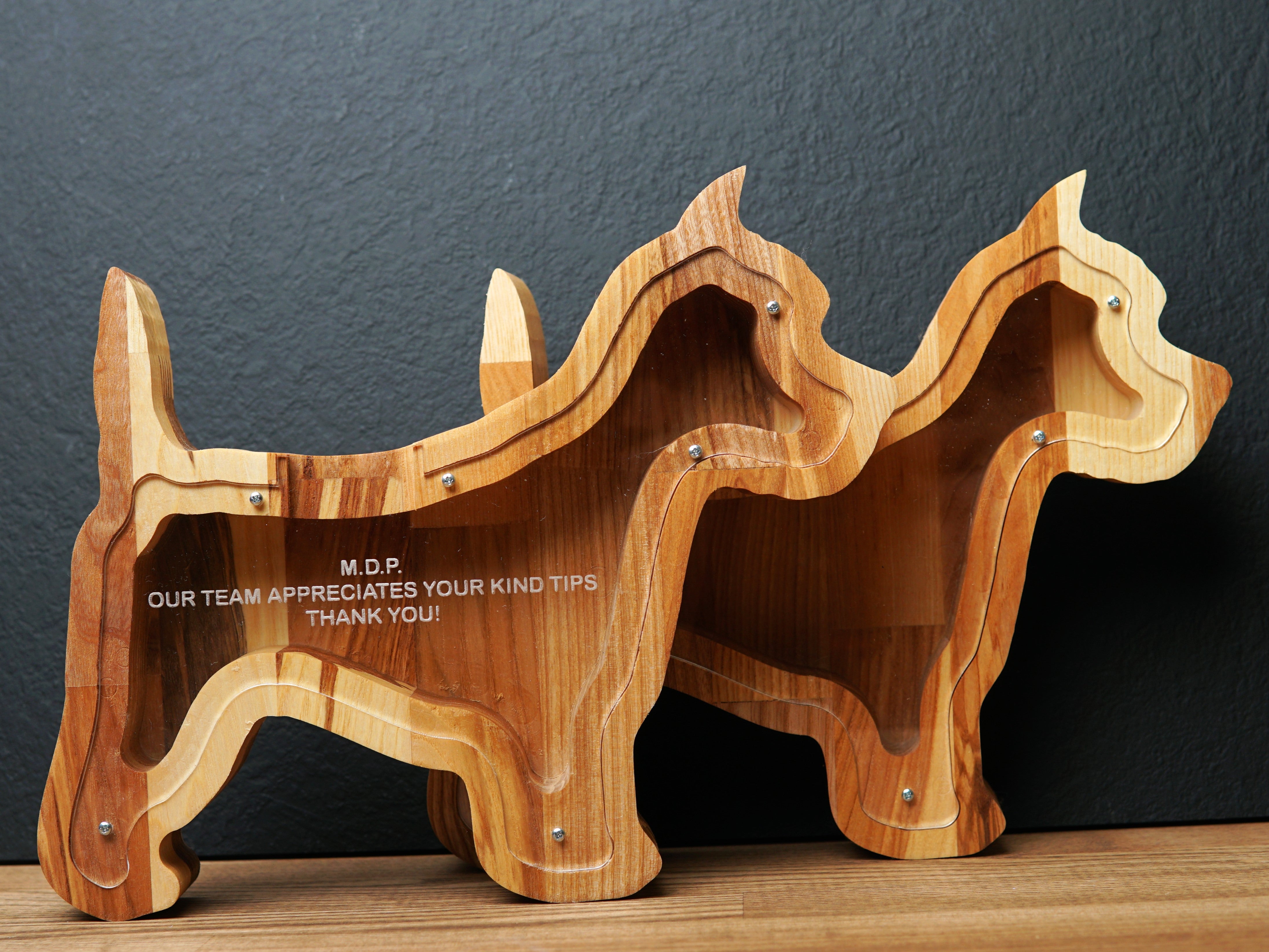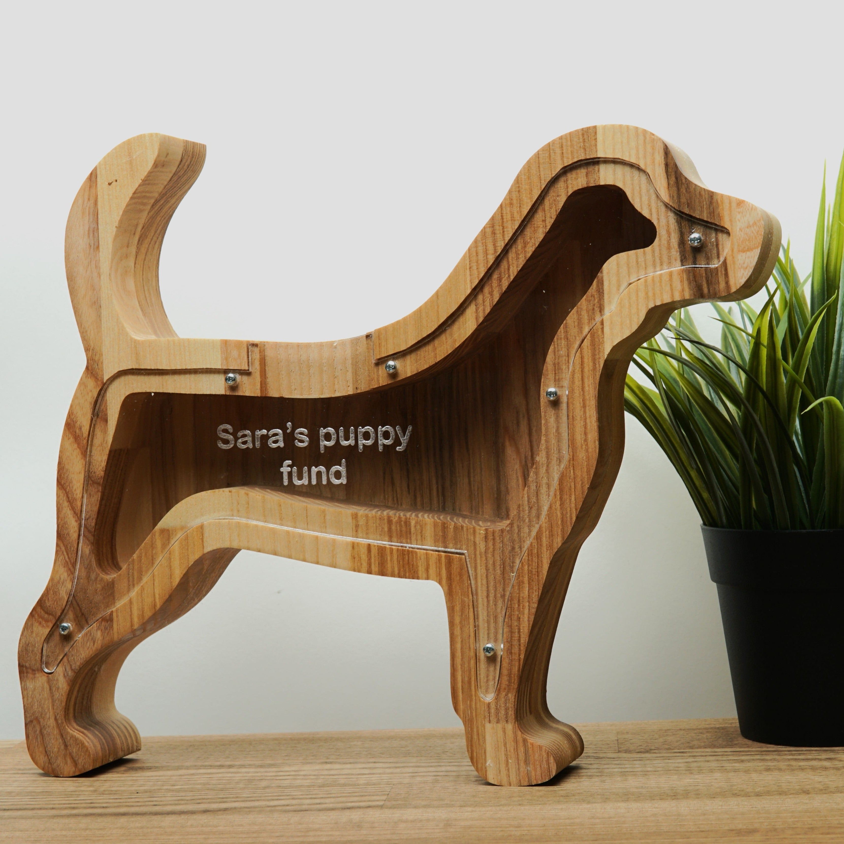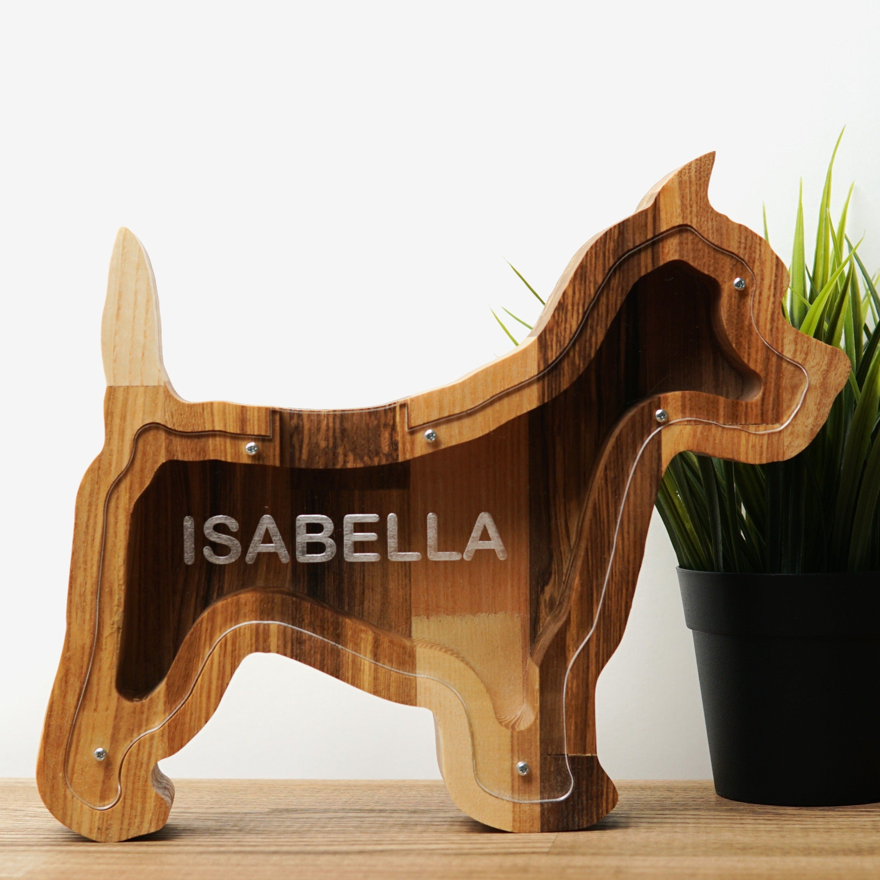Wooden Piggy Bank Dog (Engraving)