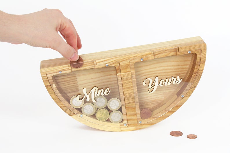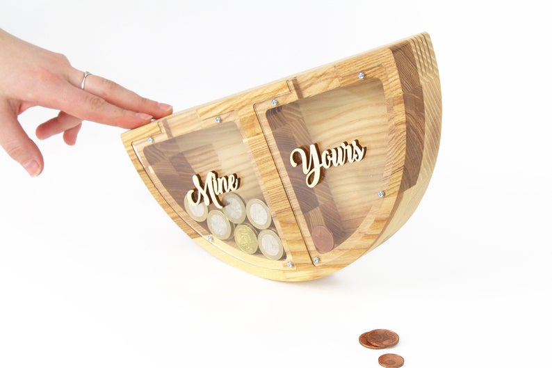 Wooden Piggy Bank For Couple (L, Engraving)