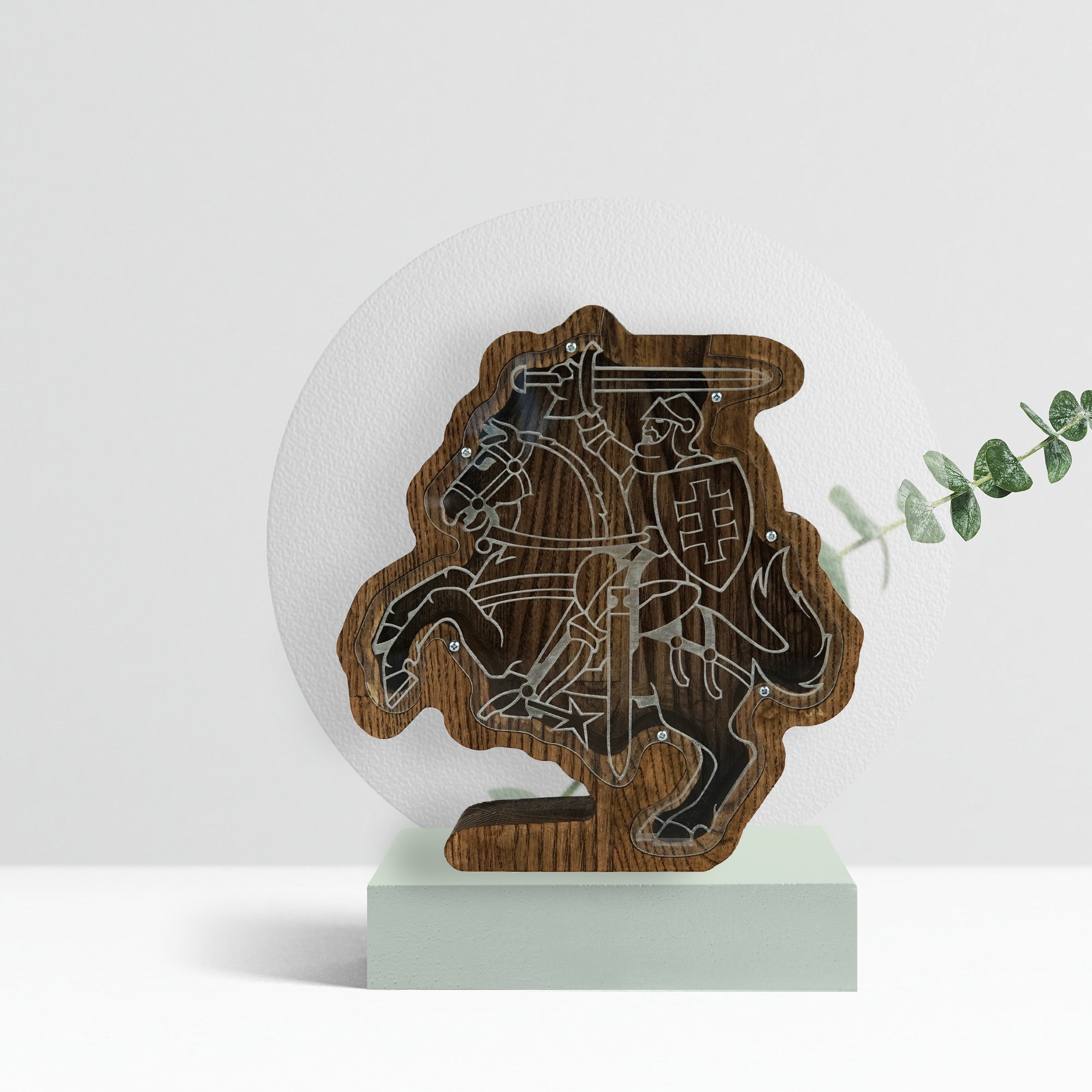 Wooden Piggy Bank Lithuanian Vytis (Engraving)