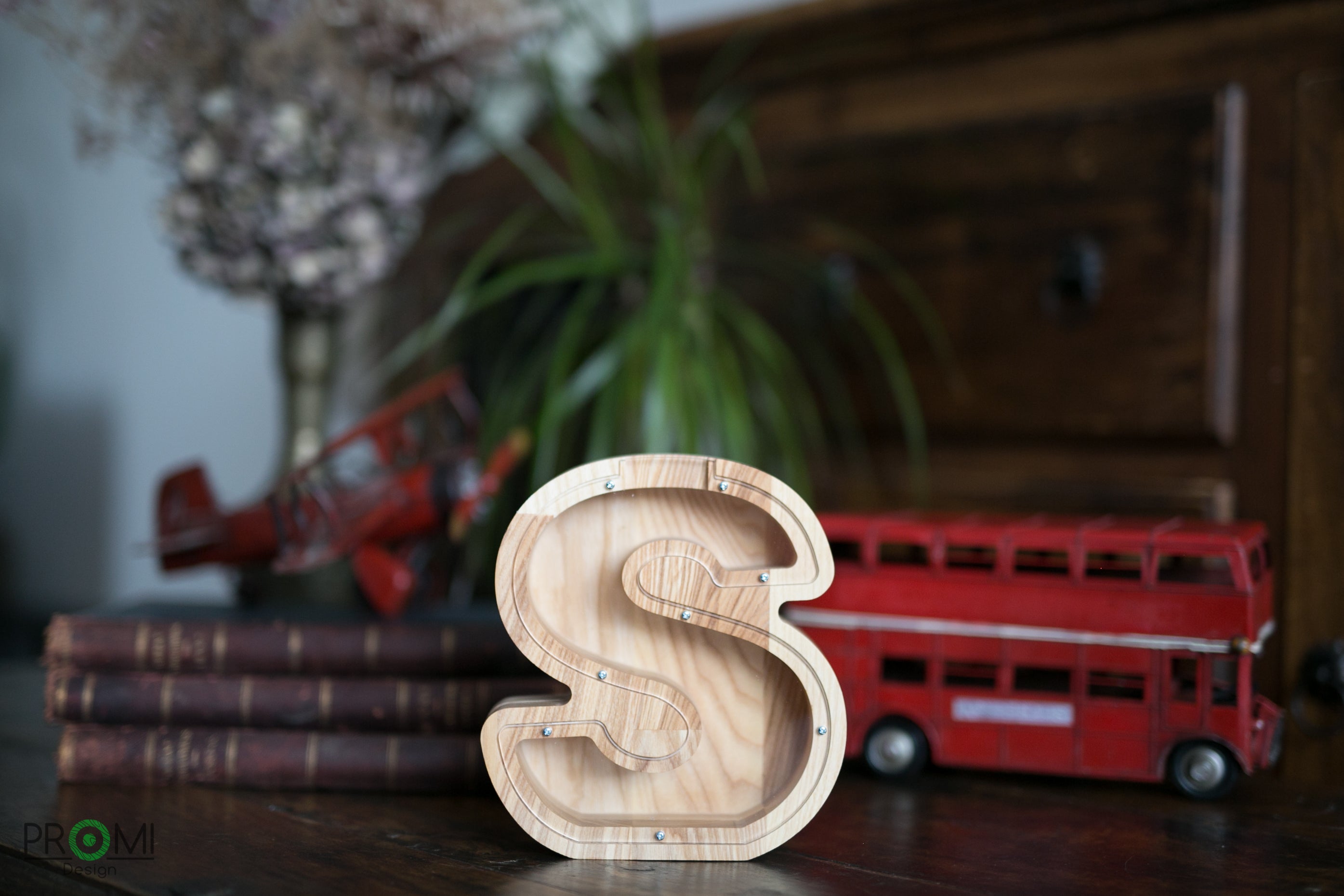 Wooden Piggy Bank Letter (Small, A-Z, Engraving)