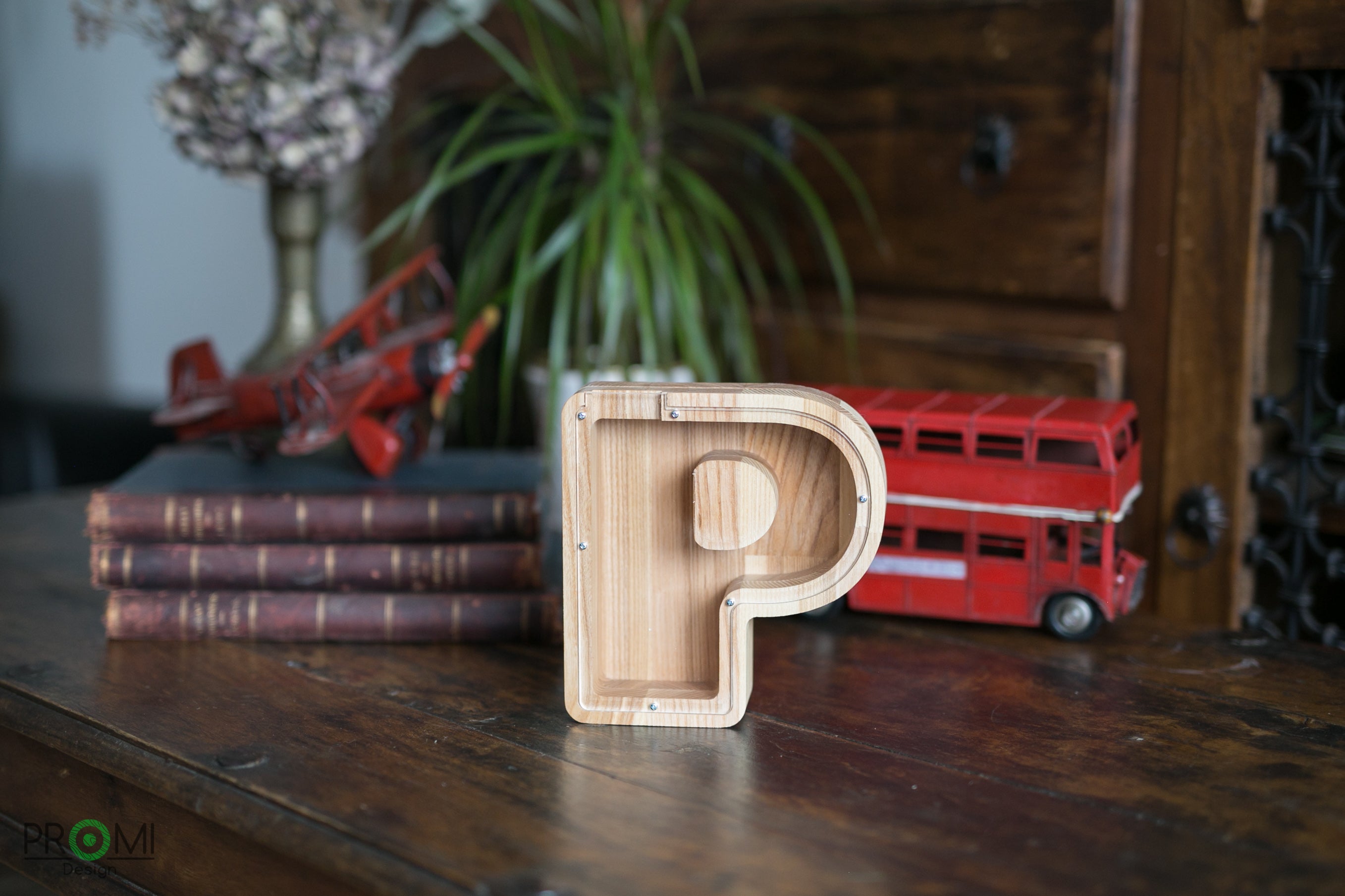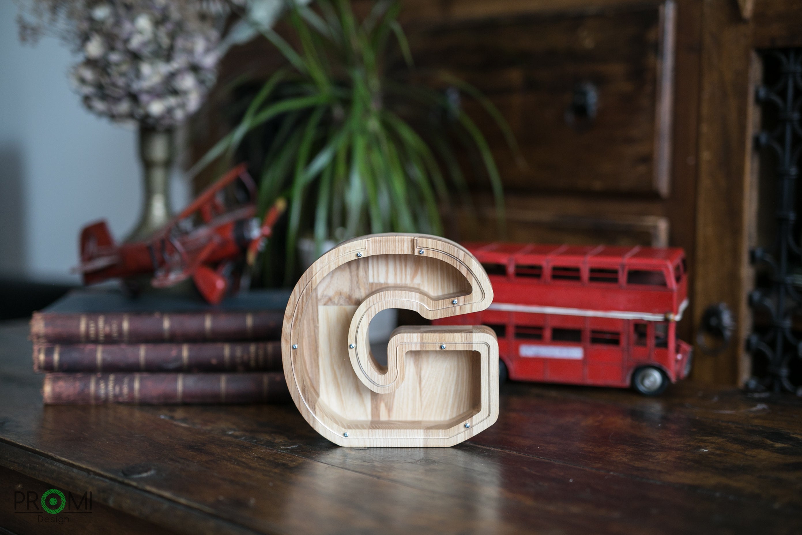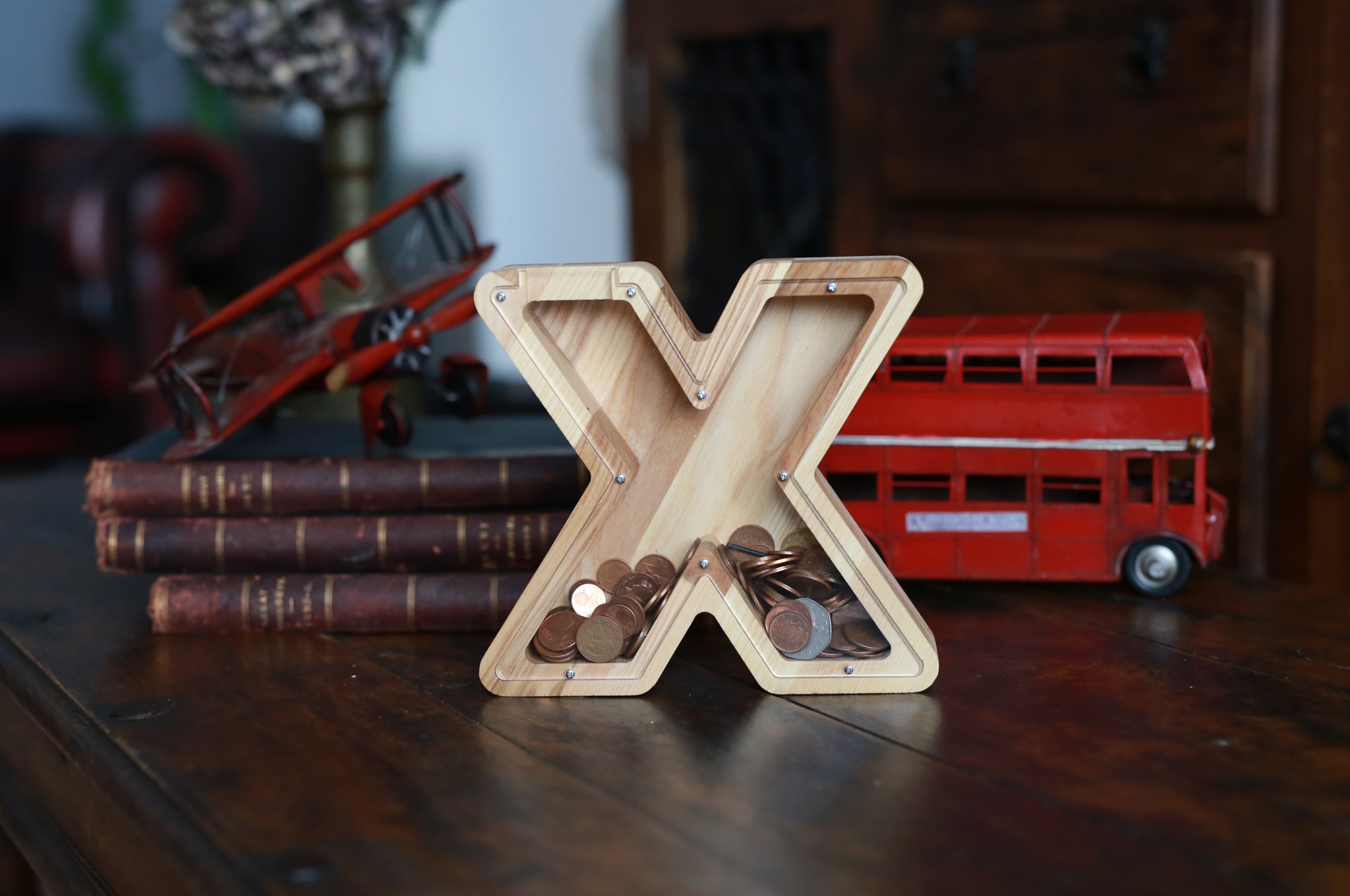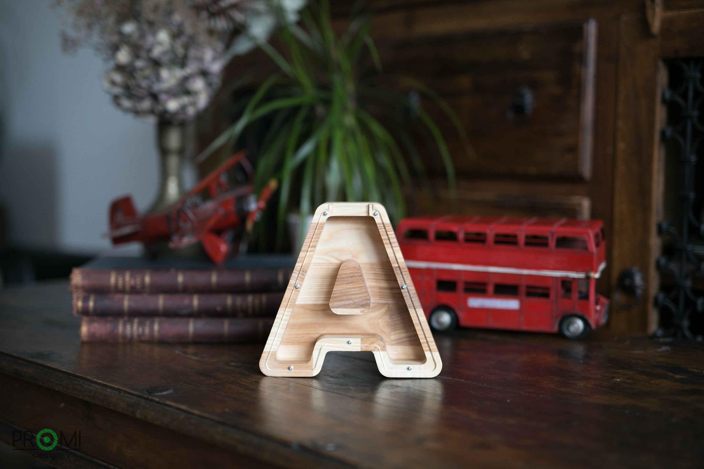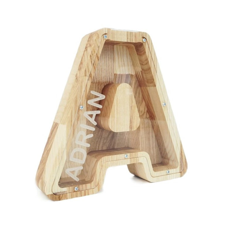 Wooden Piggy Bank Letter (Large, A-Z, Engraving)