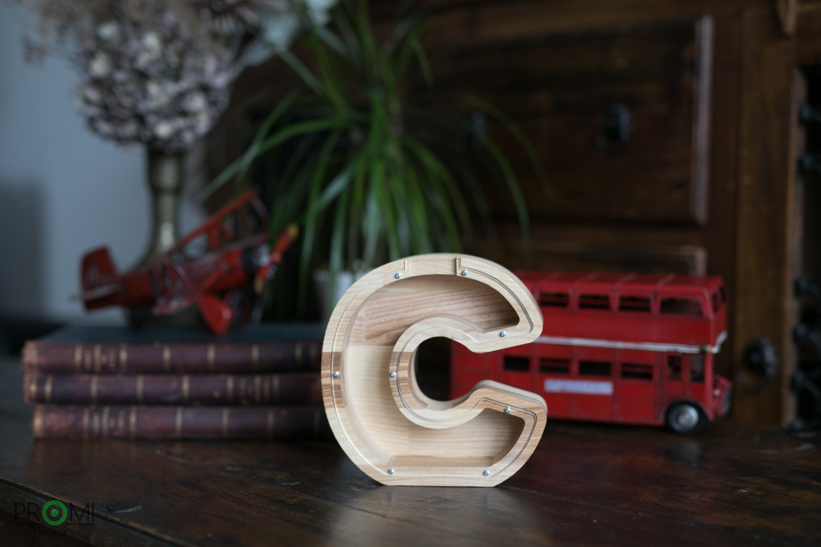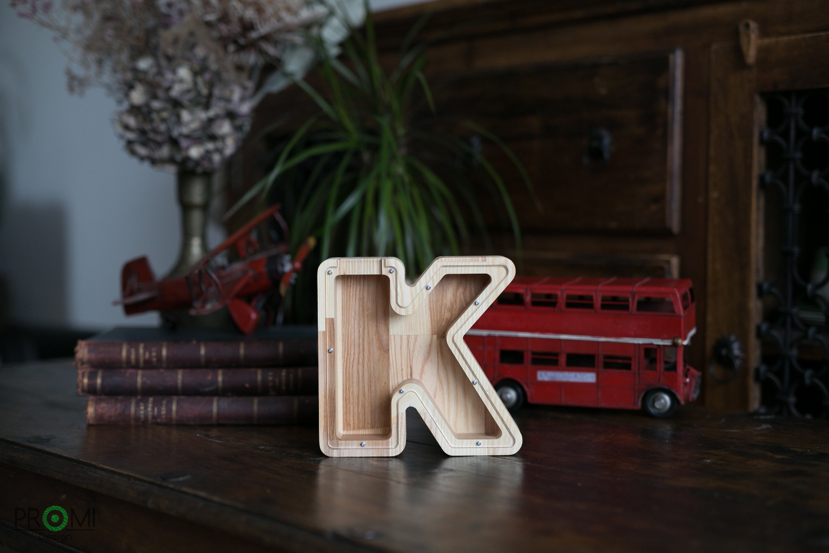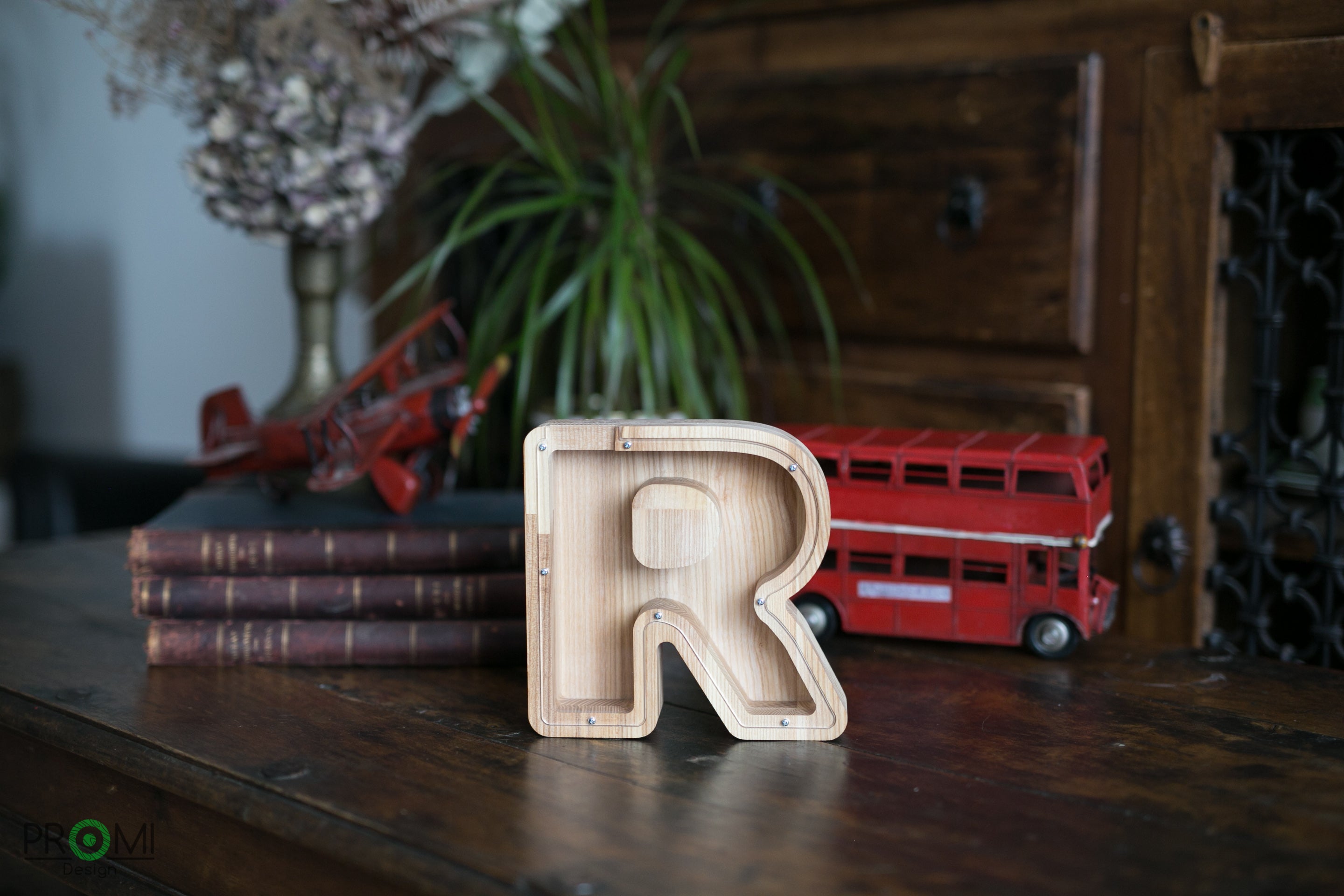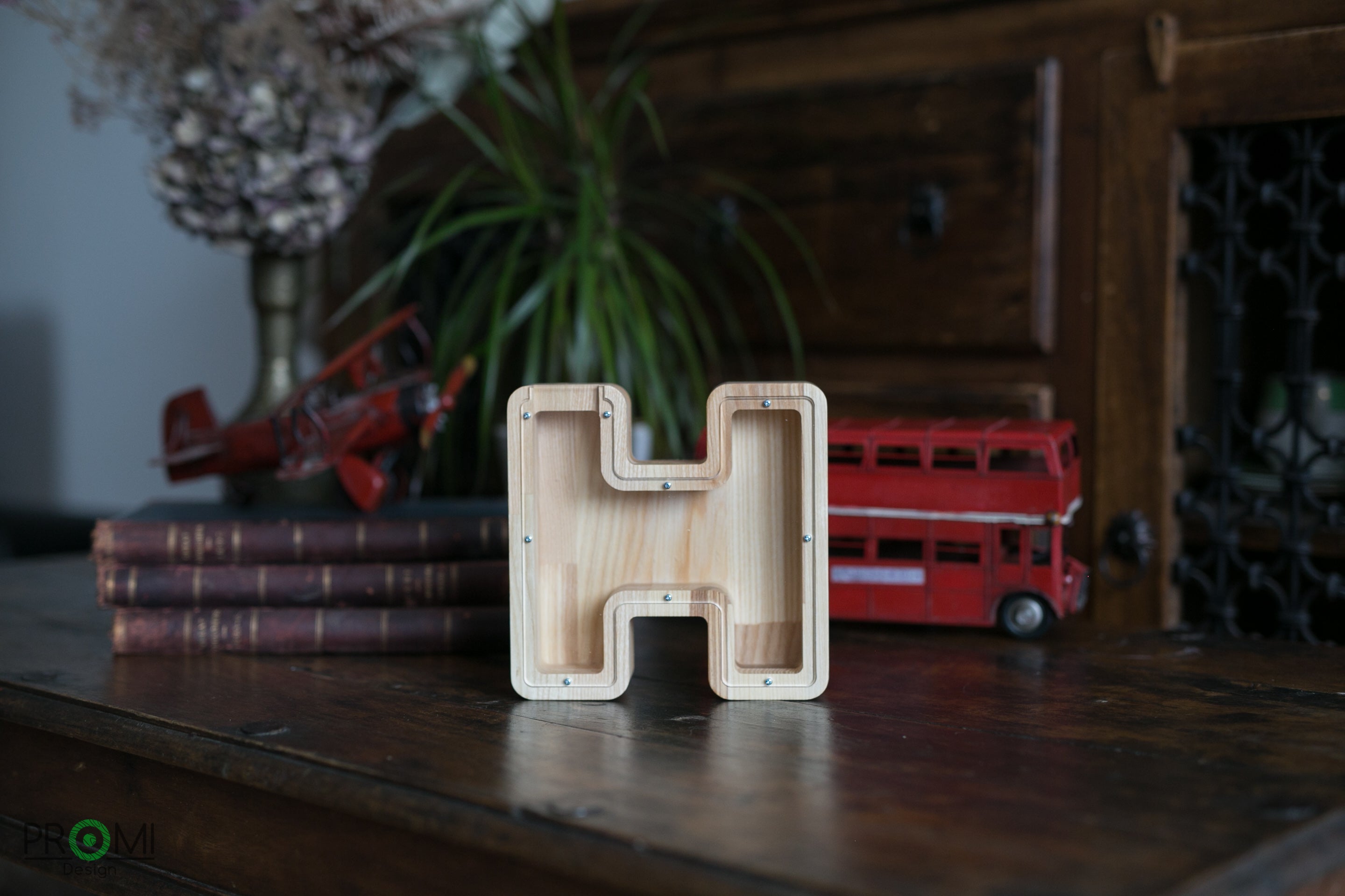 Wooden Piggy Bank Letter (Large, A-Z, Engraving)