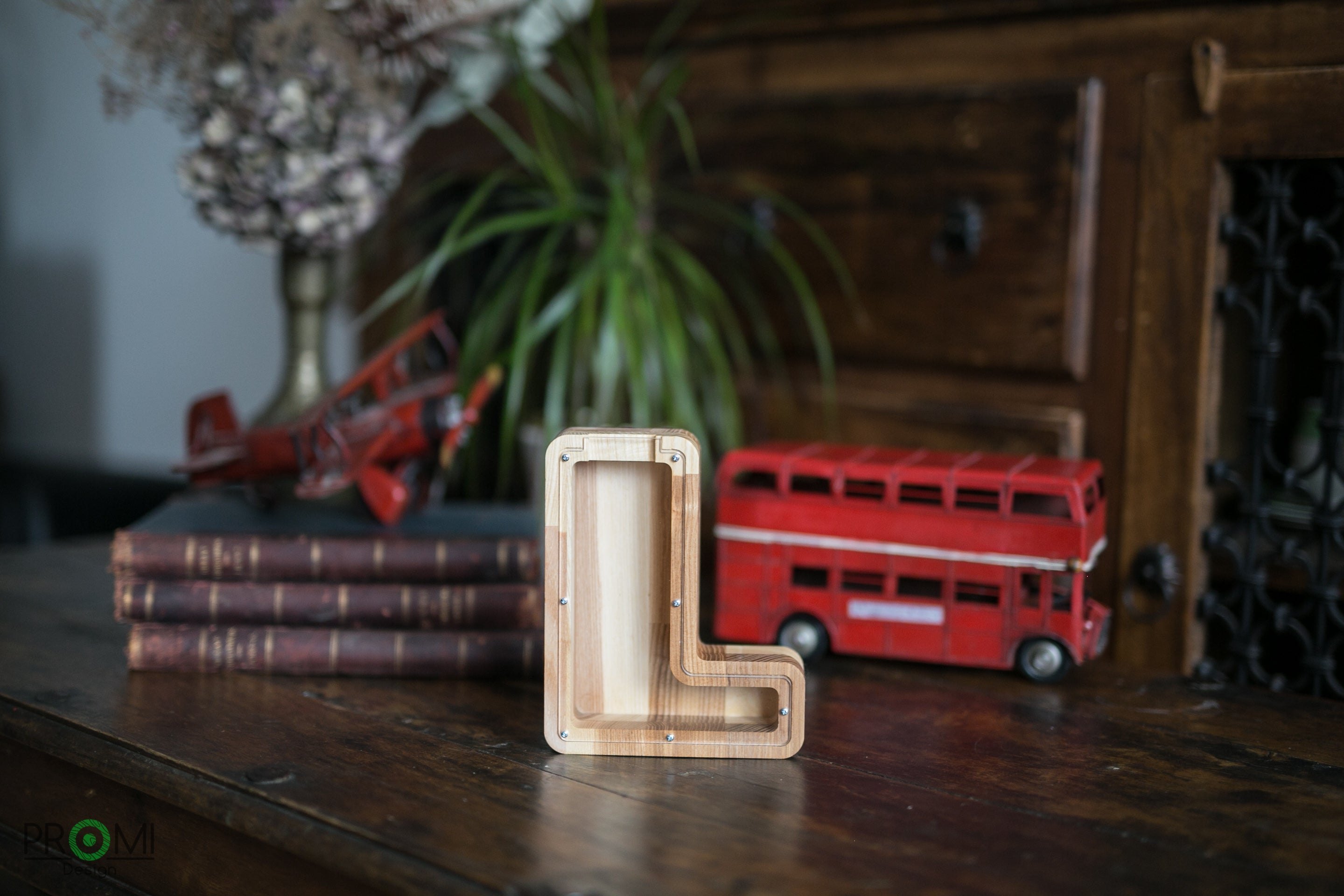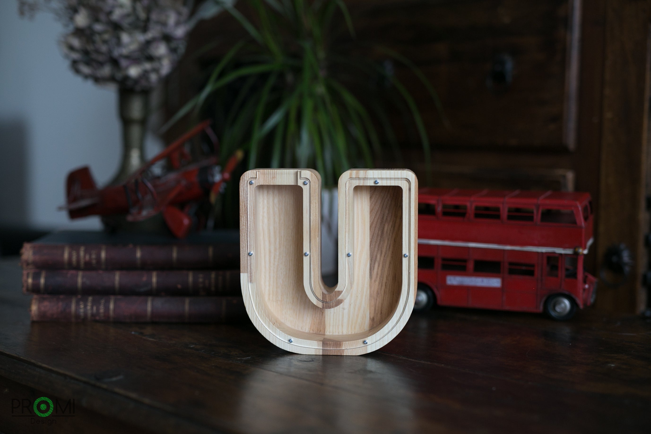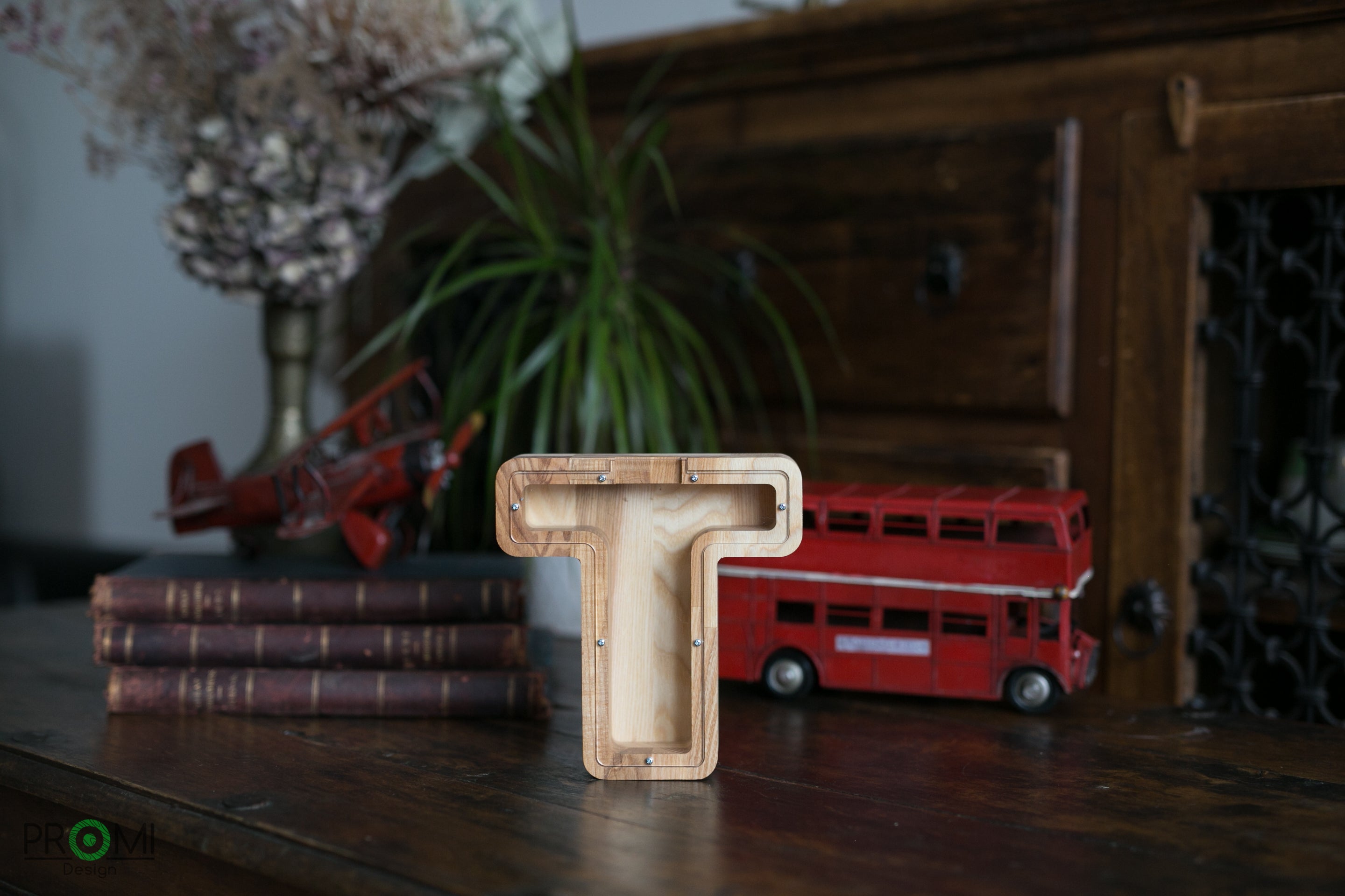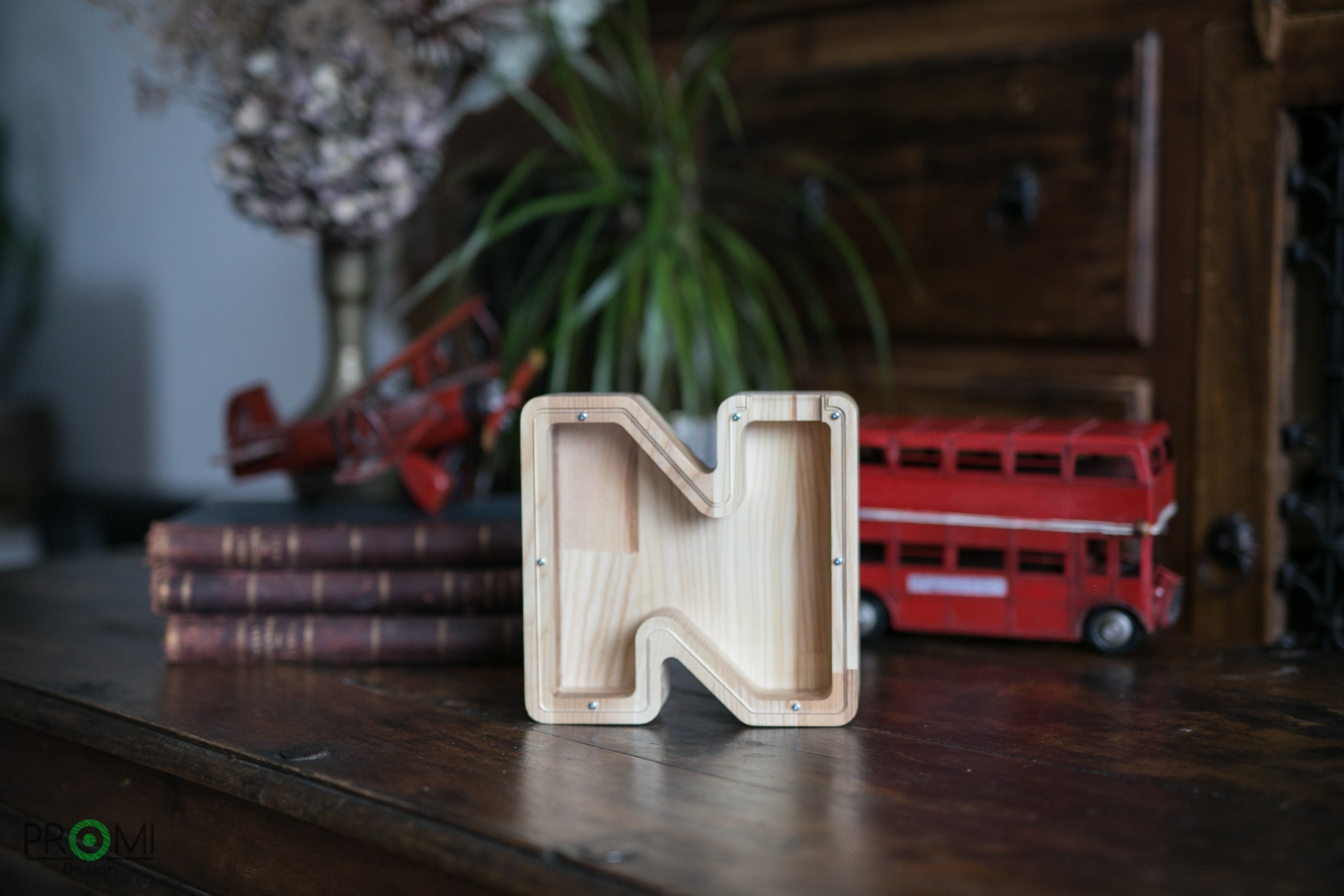 Wooden Piggy Bank Letter (Large, A-Z, Engraving)