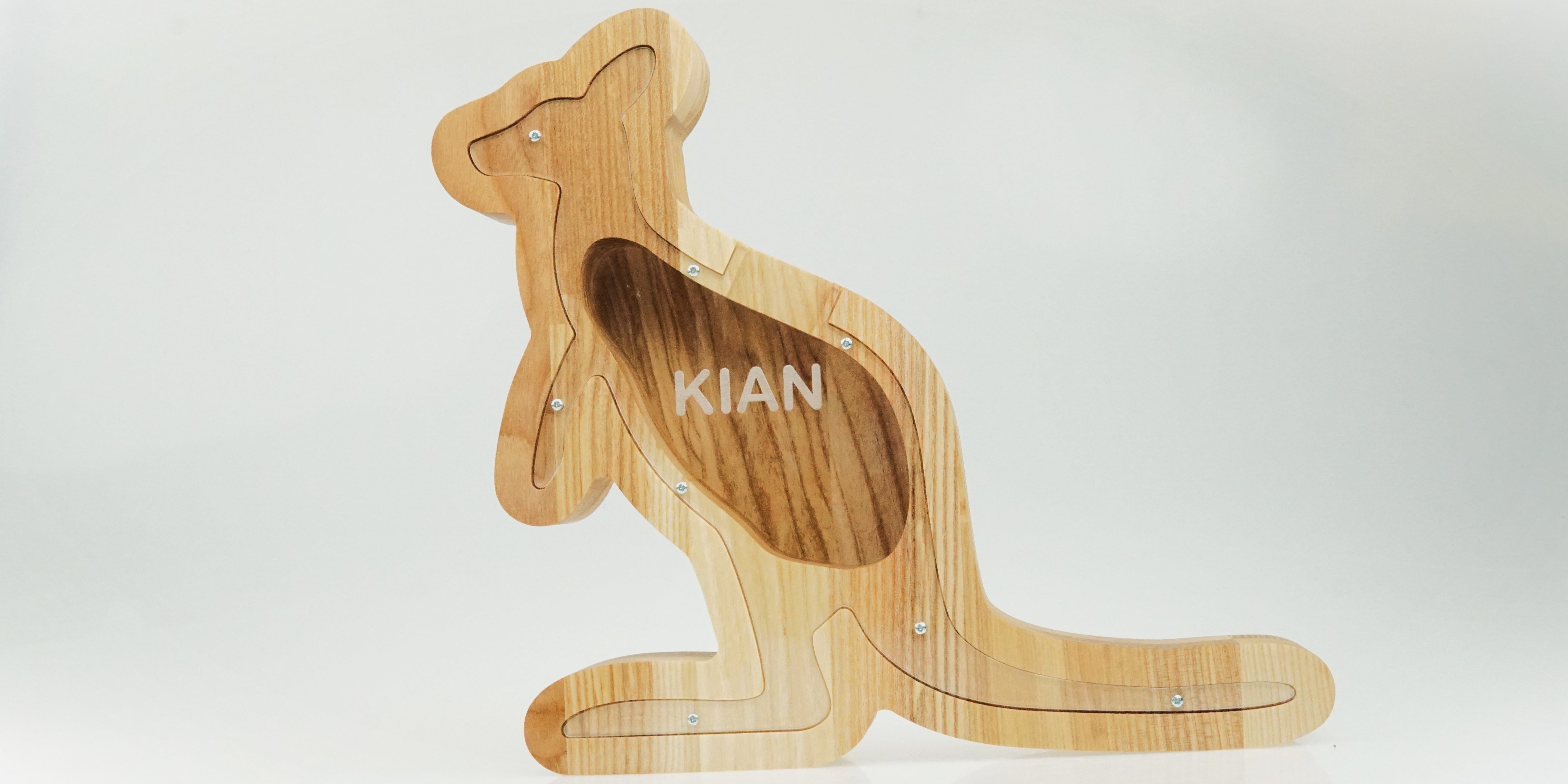 Wooden Piggy Bank Kangaroo (Engraving)