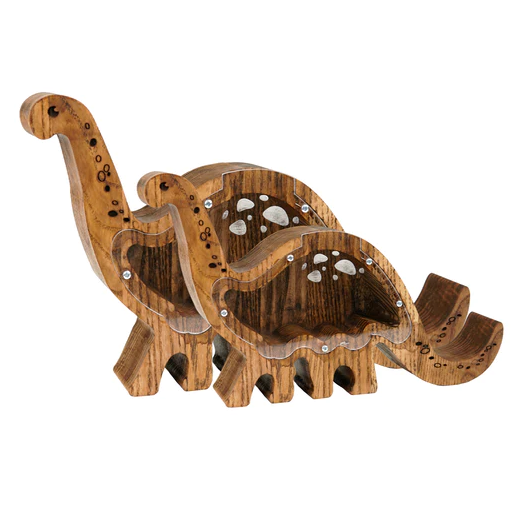Wooden Piggy Bank Dinosaur (Large, Brown, Engraving)