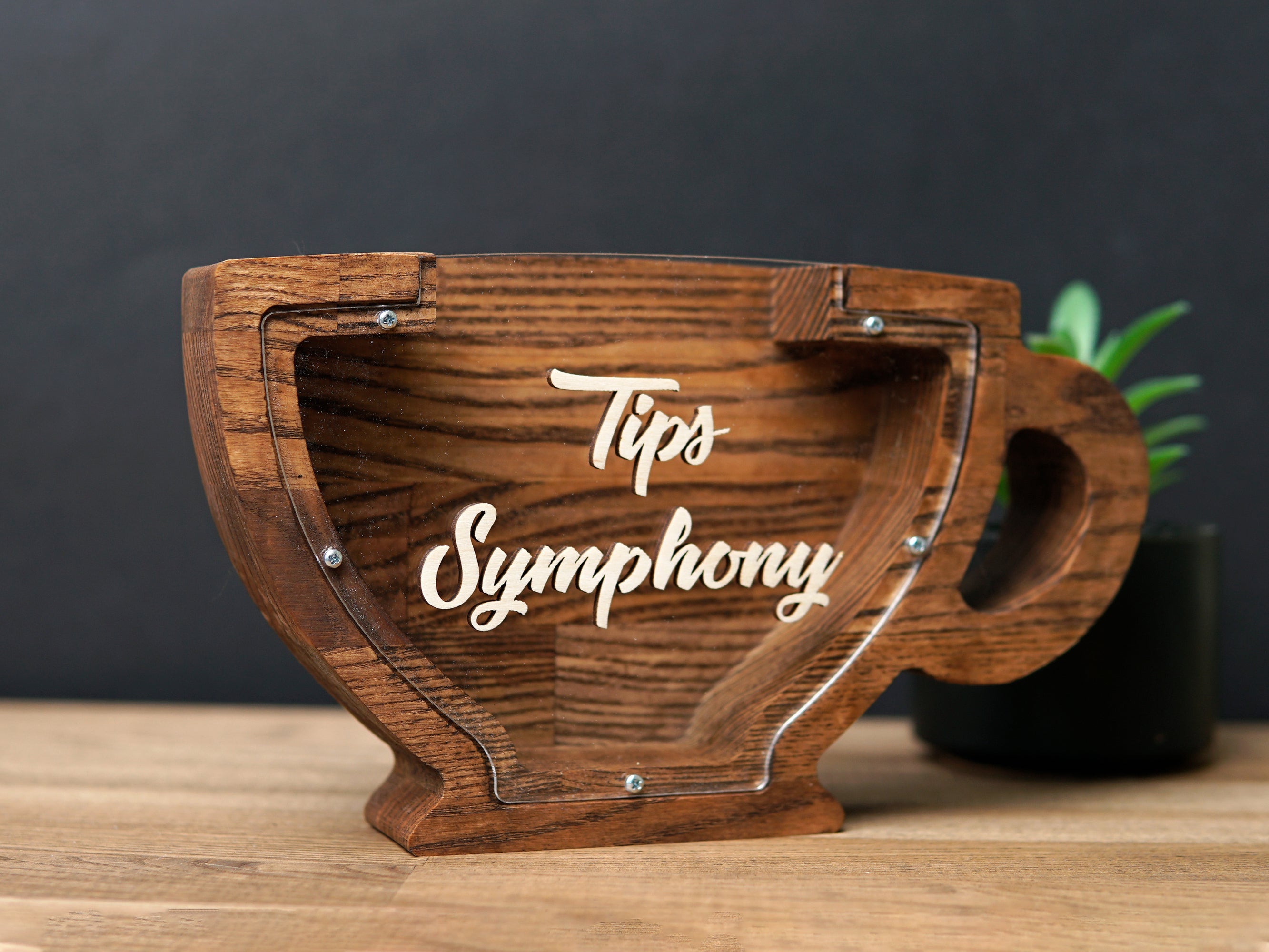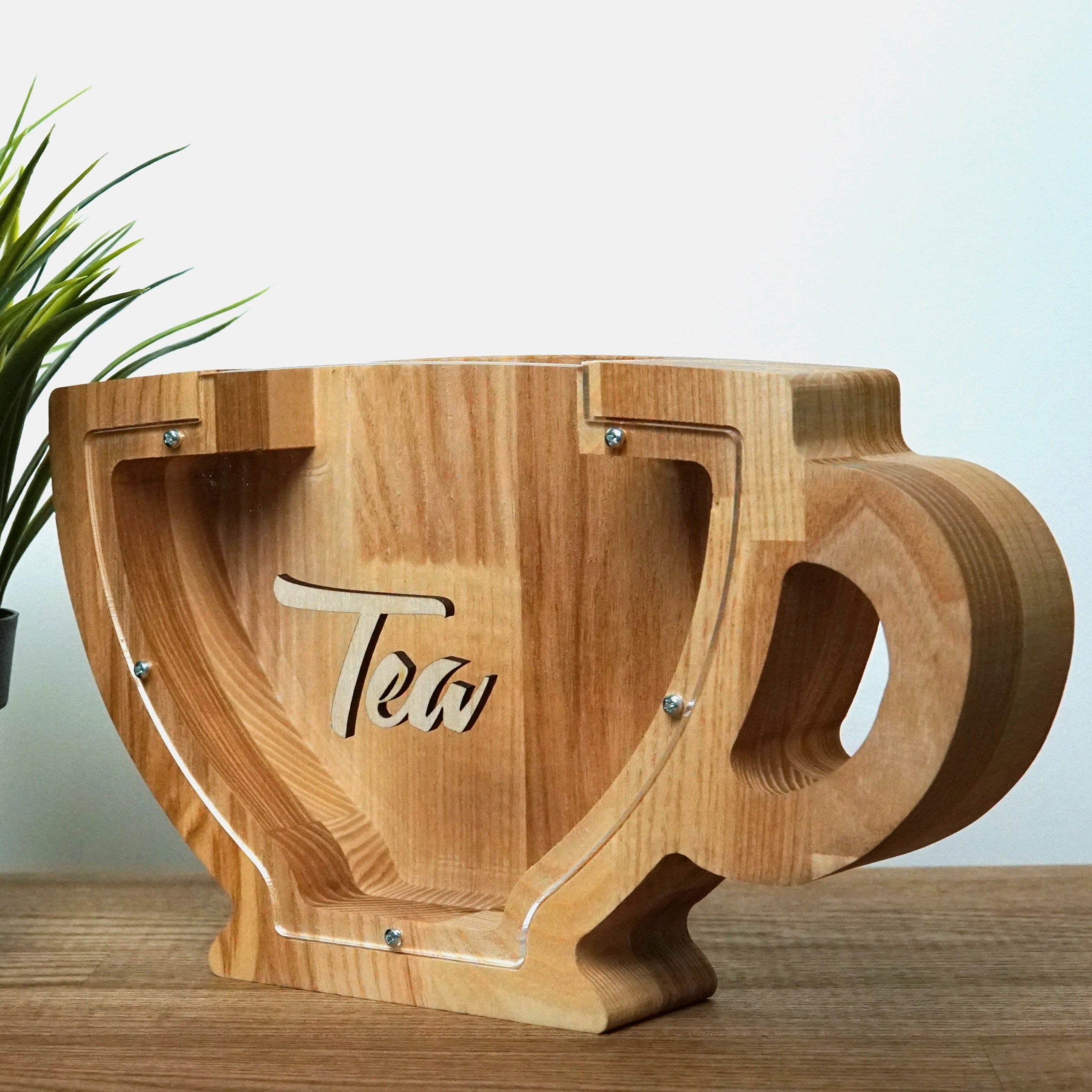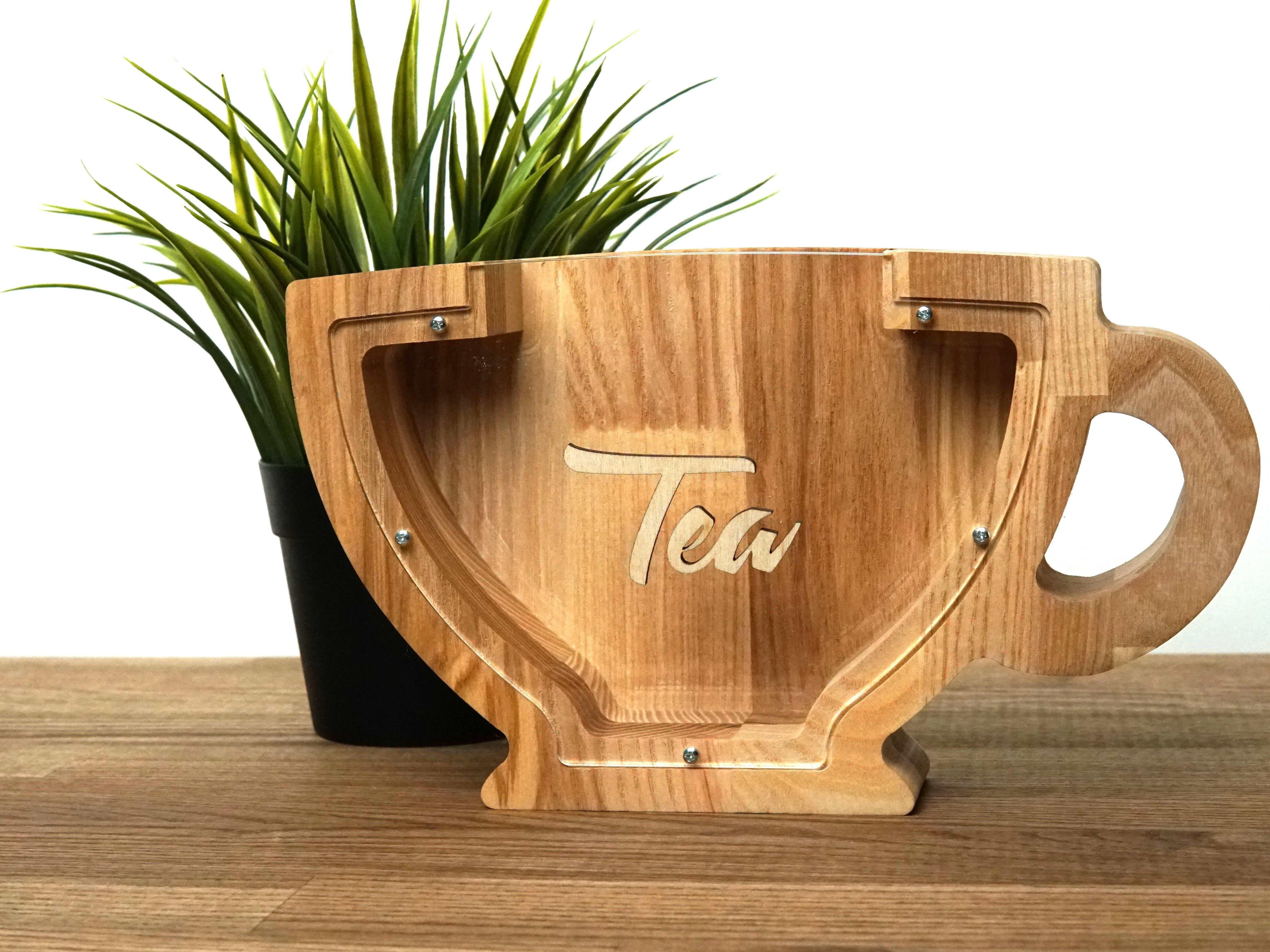 Wooden Piggy Bank Cup (Brown, Engraving)