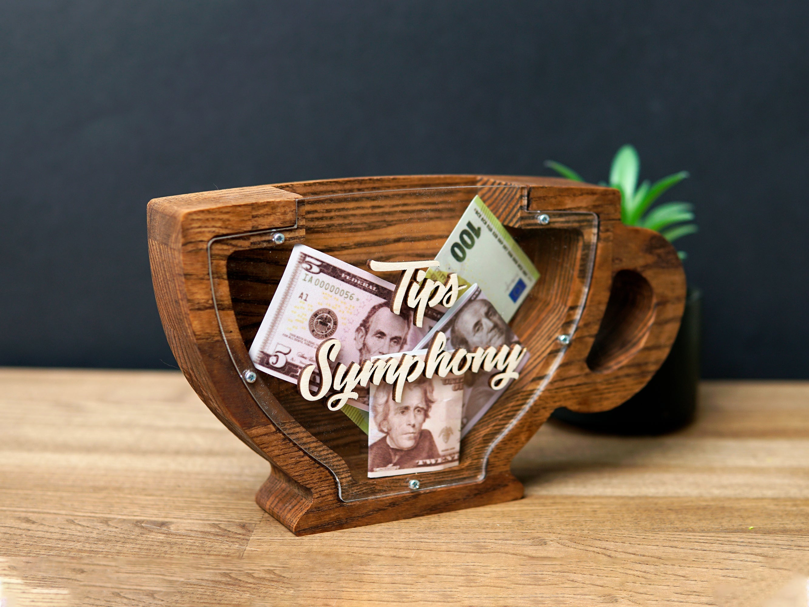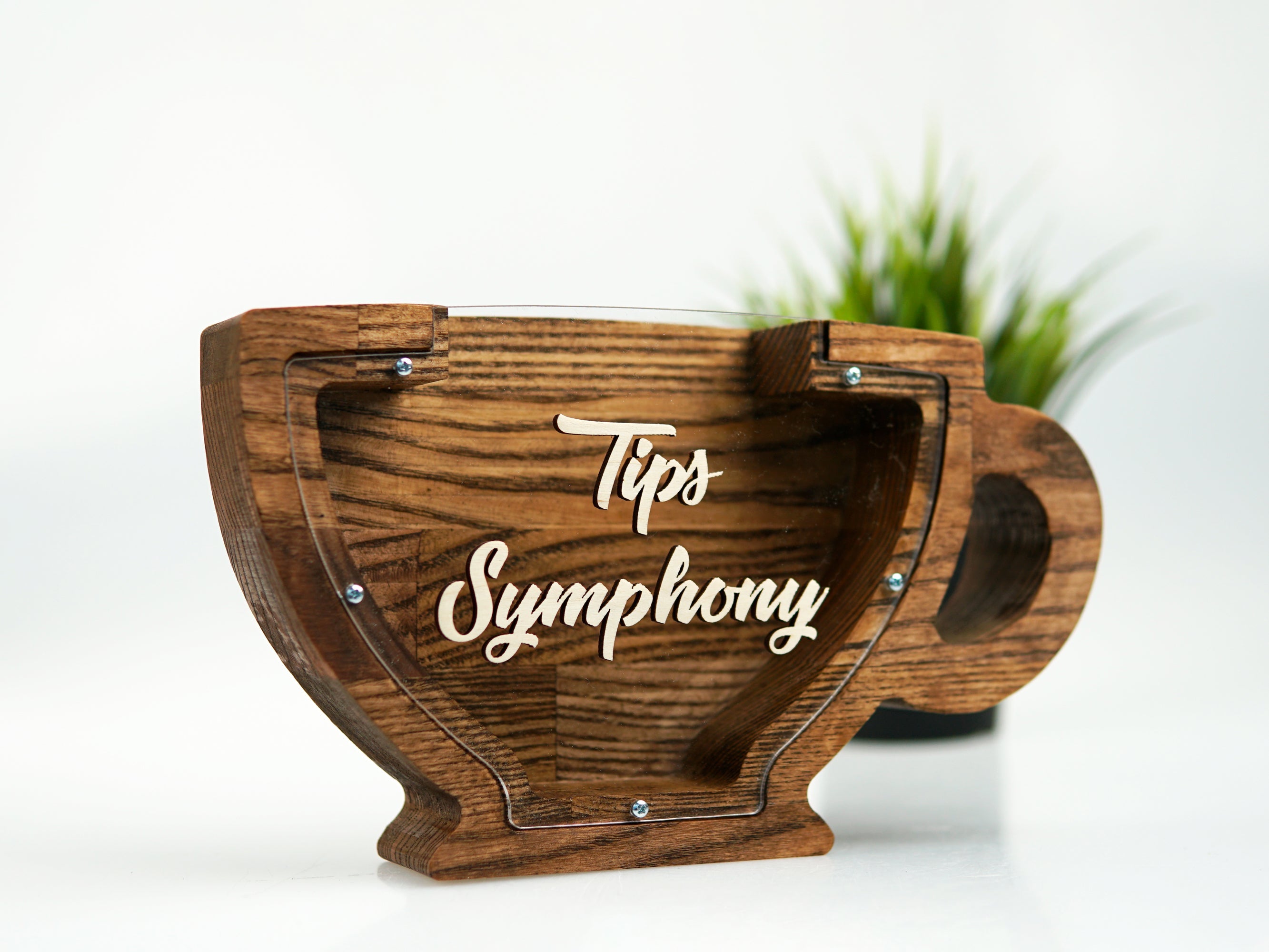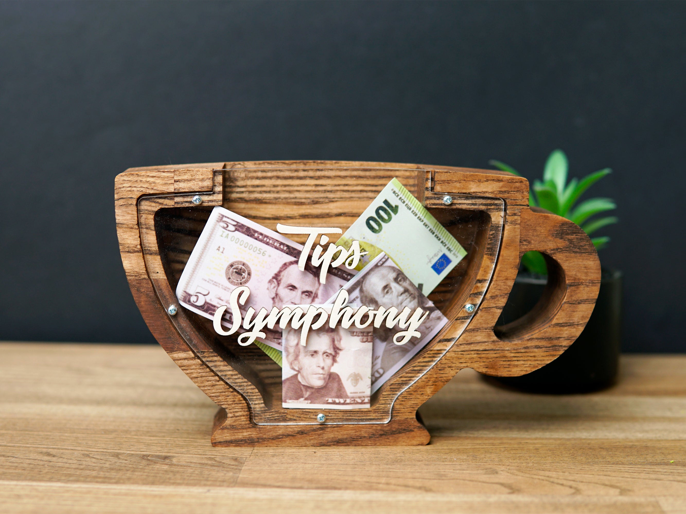 Wooden Piggy Bank Cup (Brown, Engraving)