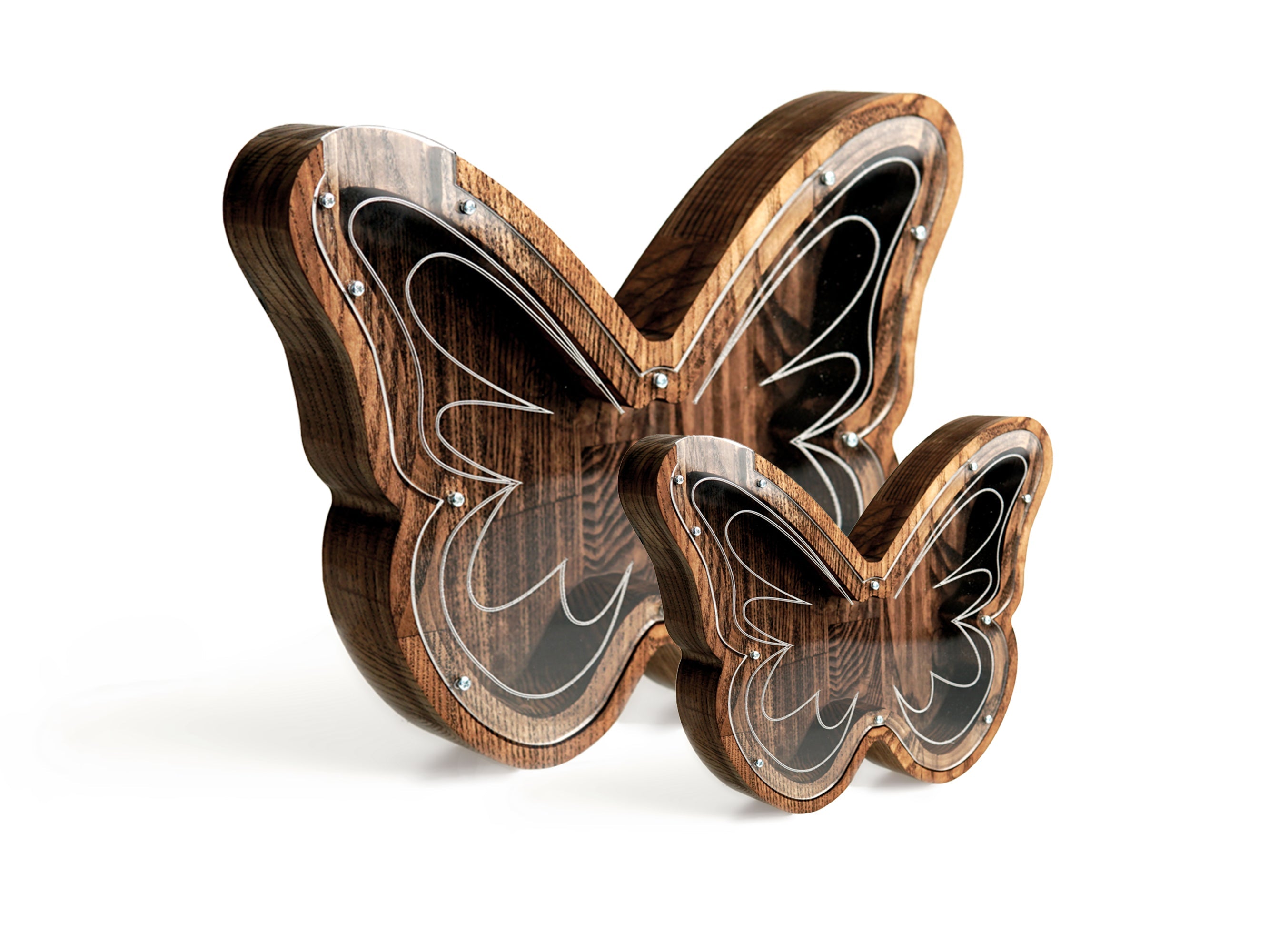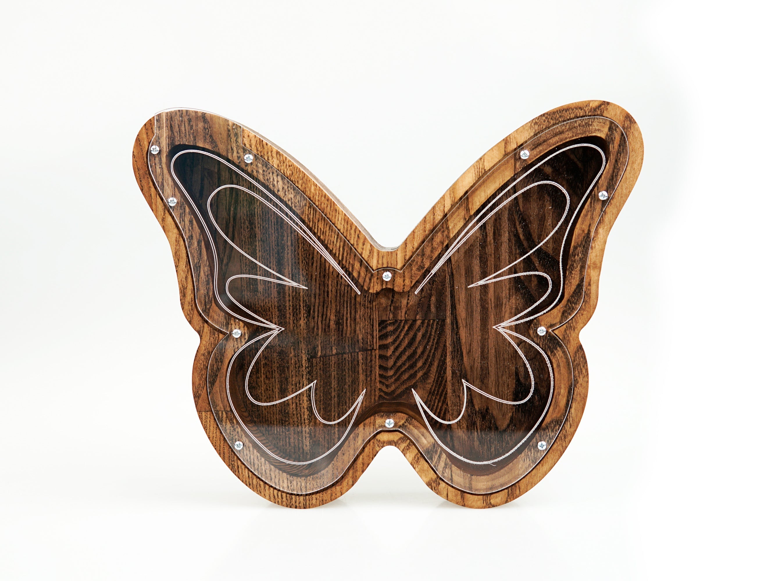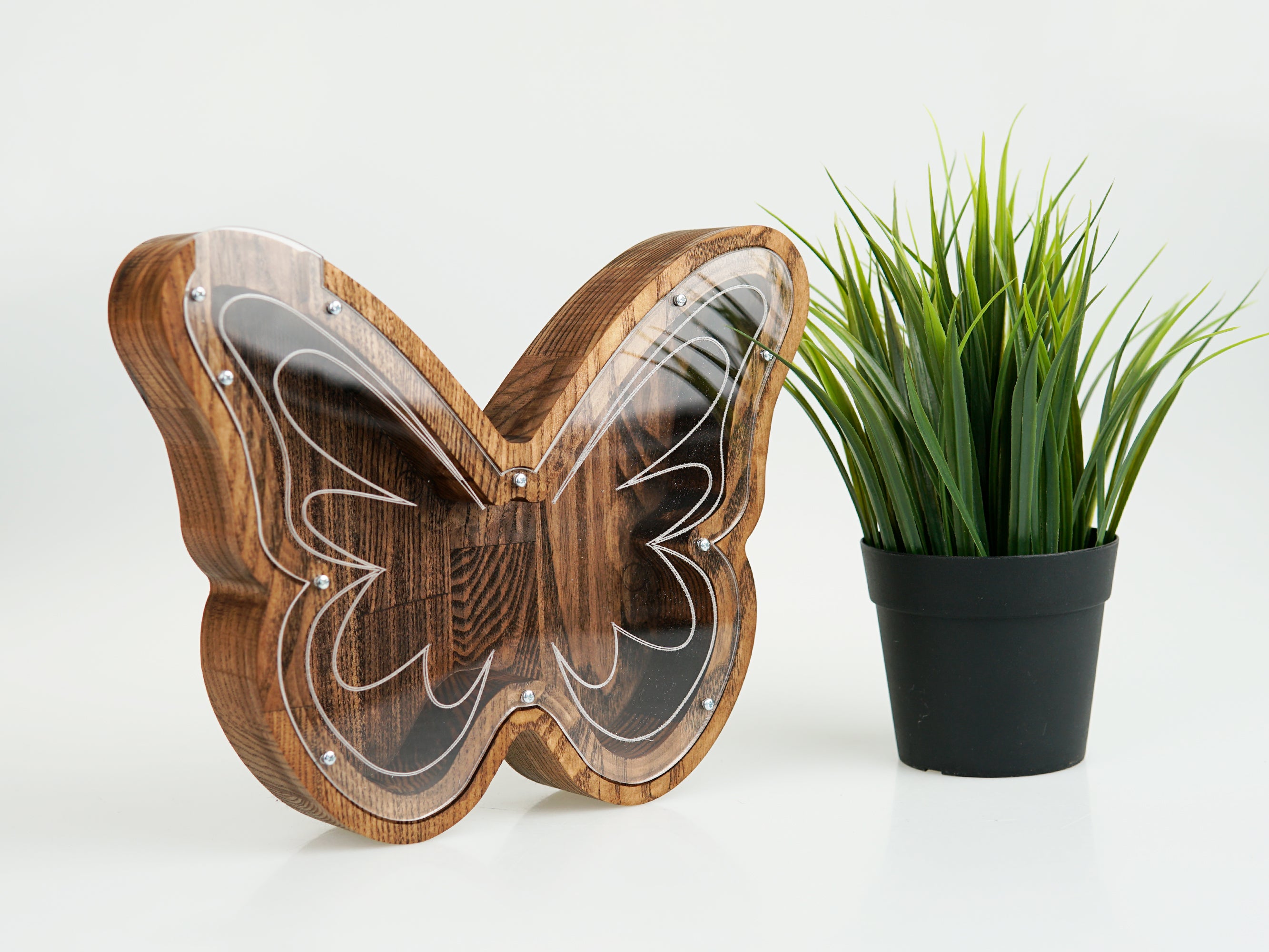 Wooden Piggy Bank Butterfly (Large, Brown, Engraving)