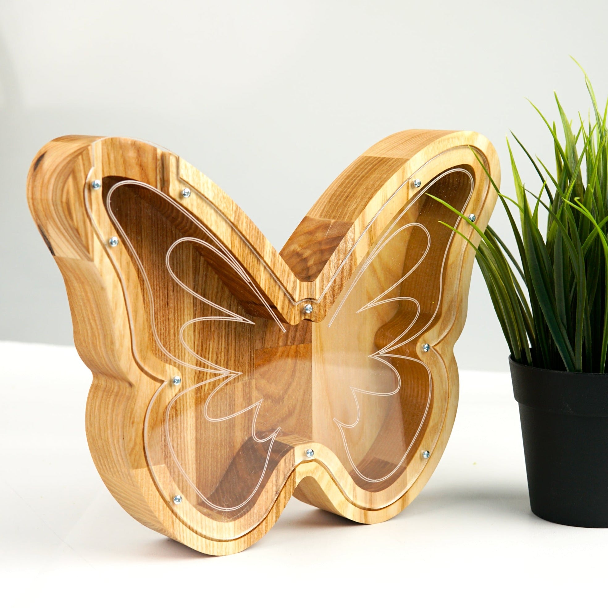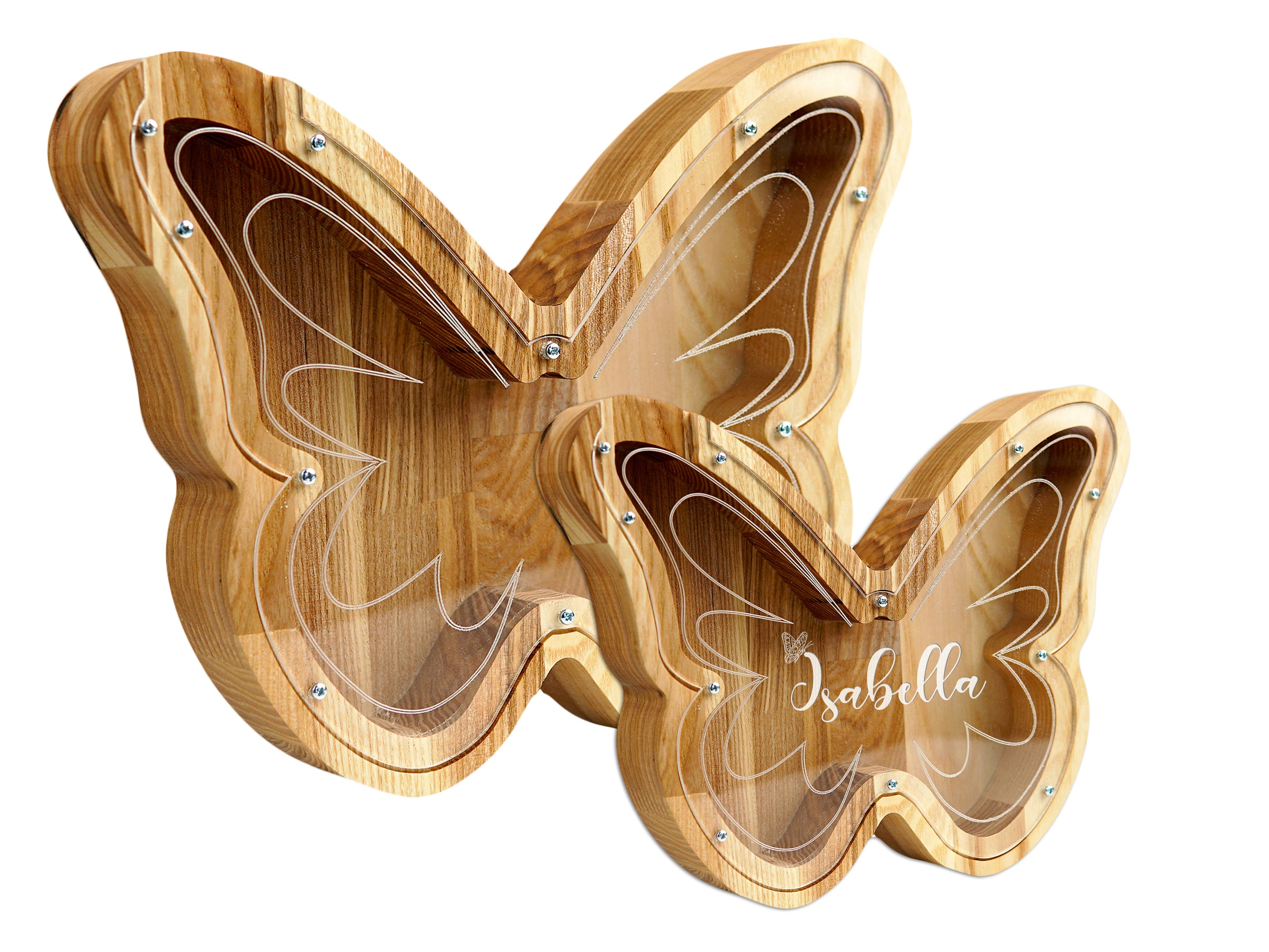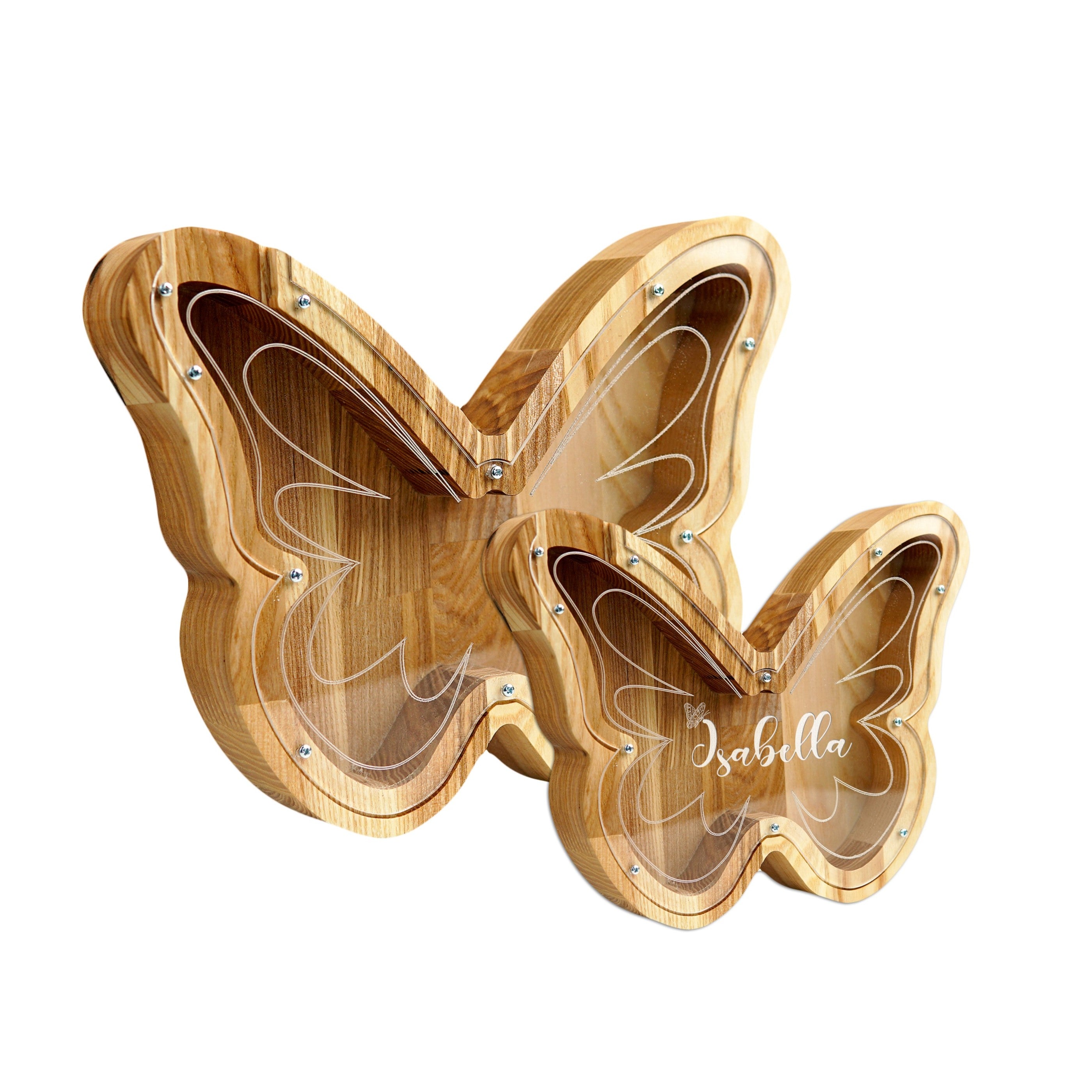 Wooden Piggy Bank Butterfly (Large, Engraving)