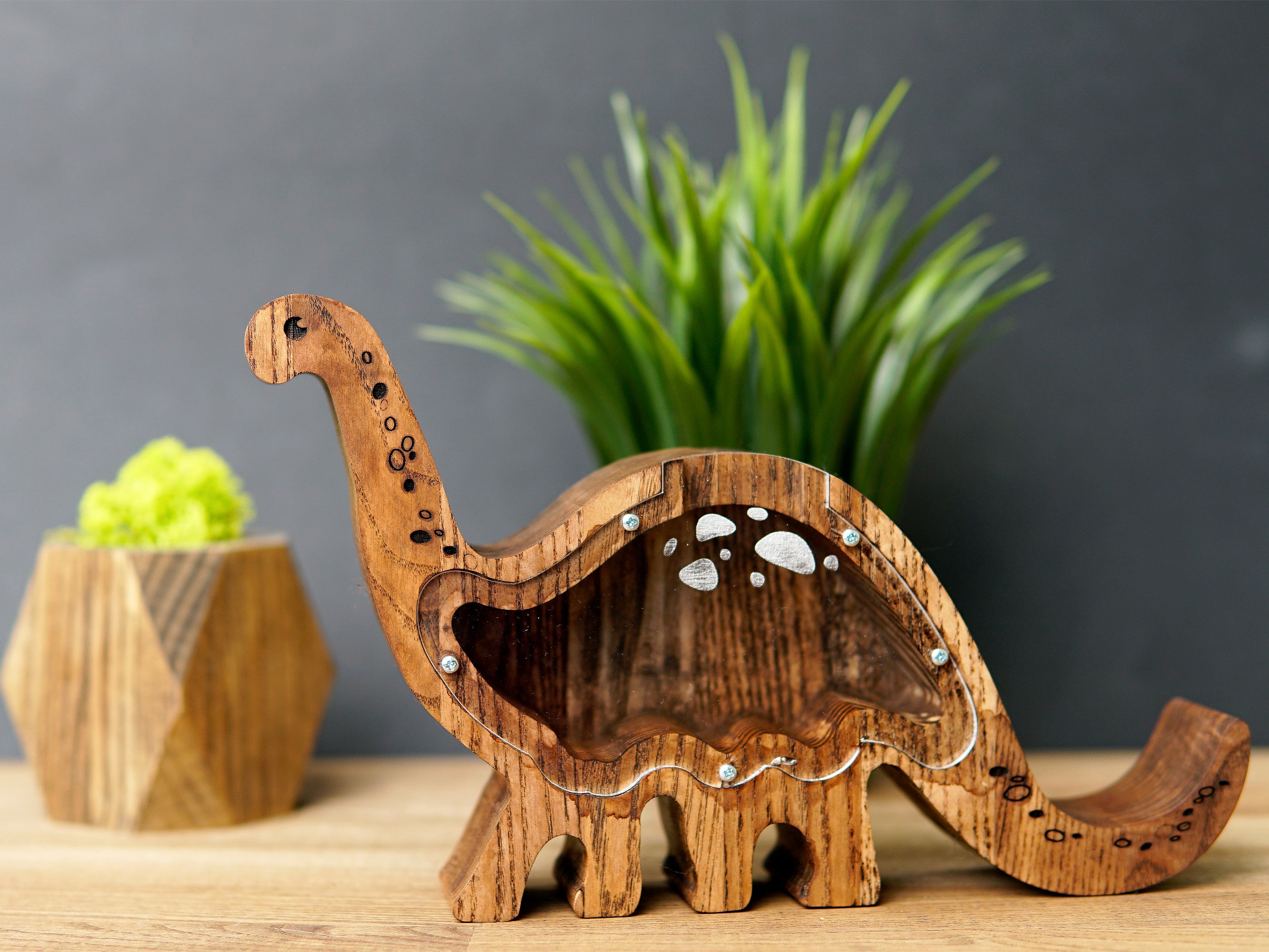 Wooden Piggy Bank Dinosaur (Large, Engraving)