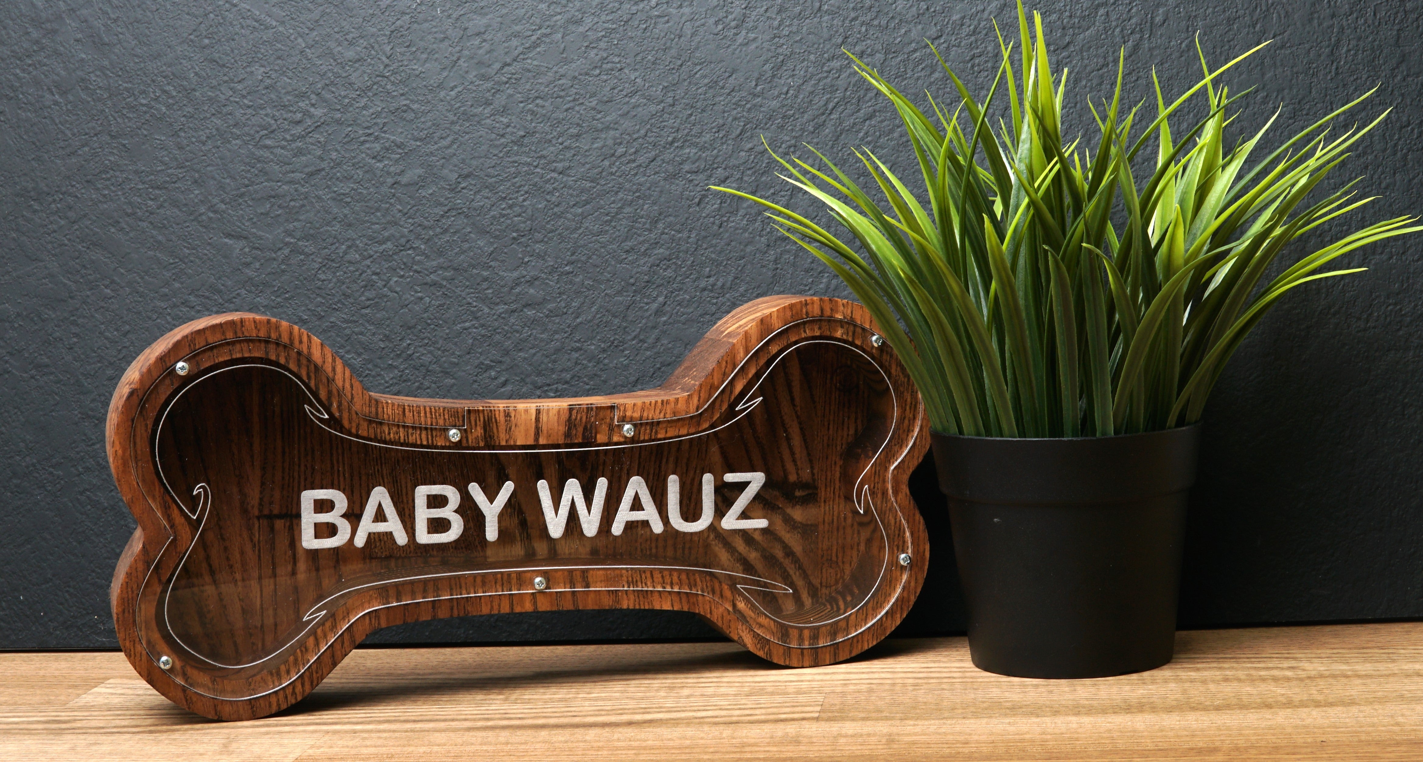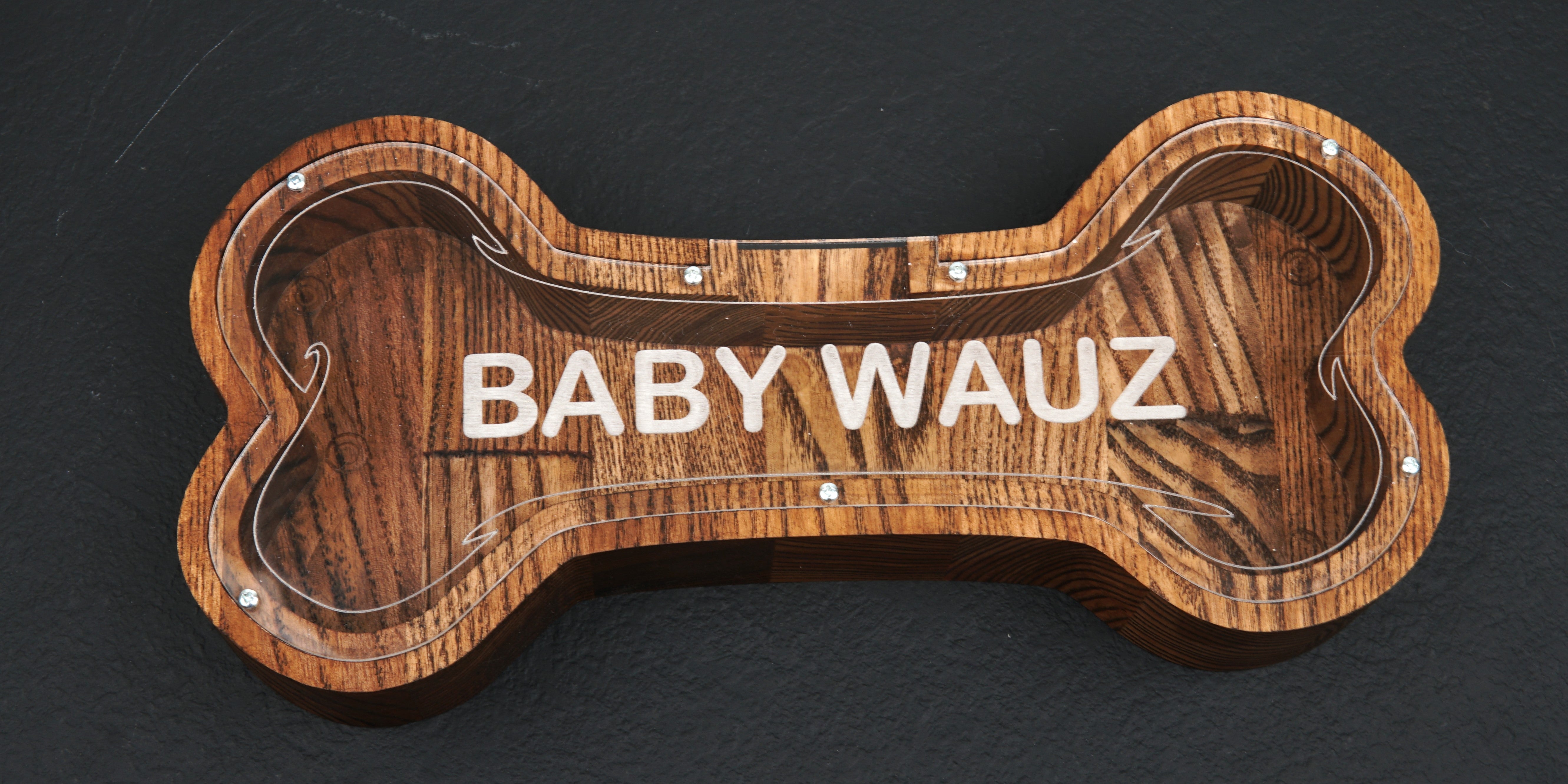 Wooden Piggy Bank Bone (Brown, Engraving)