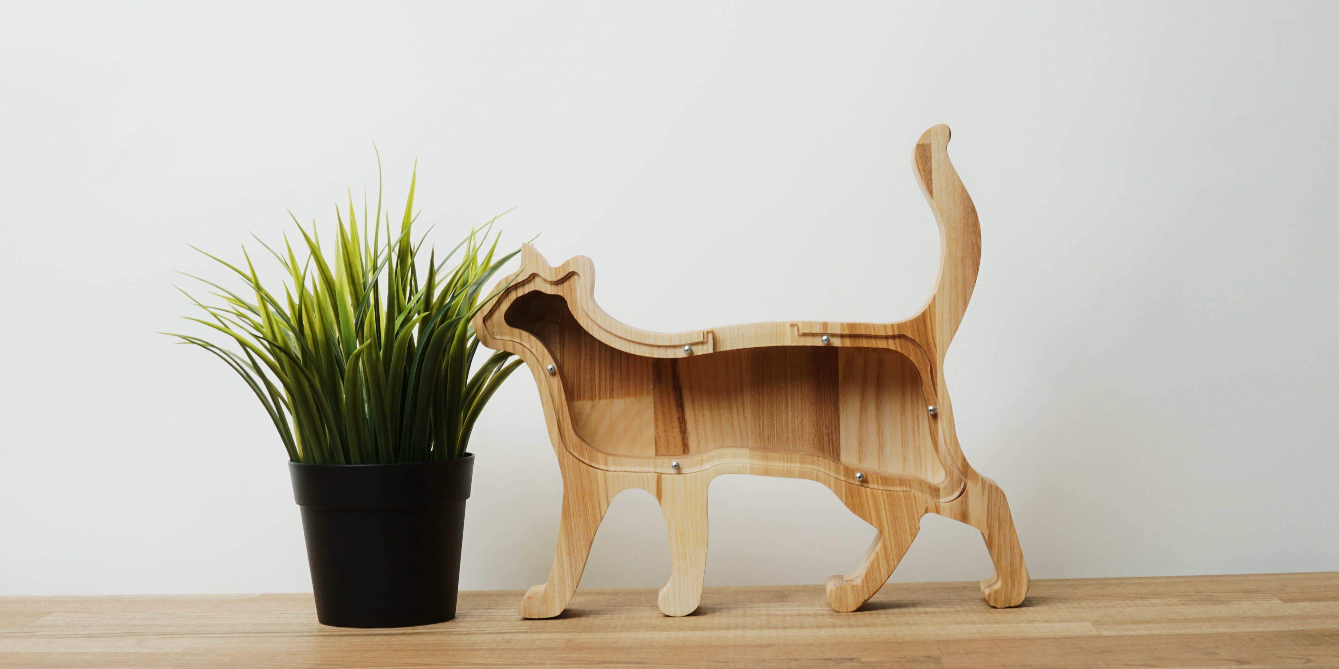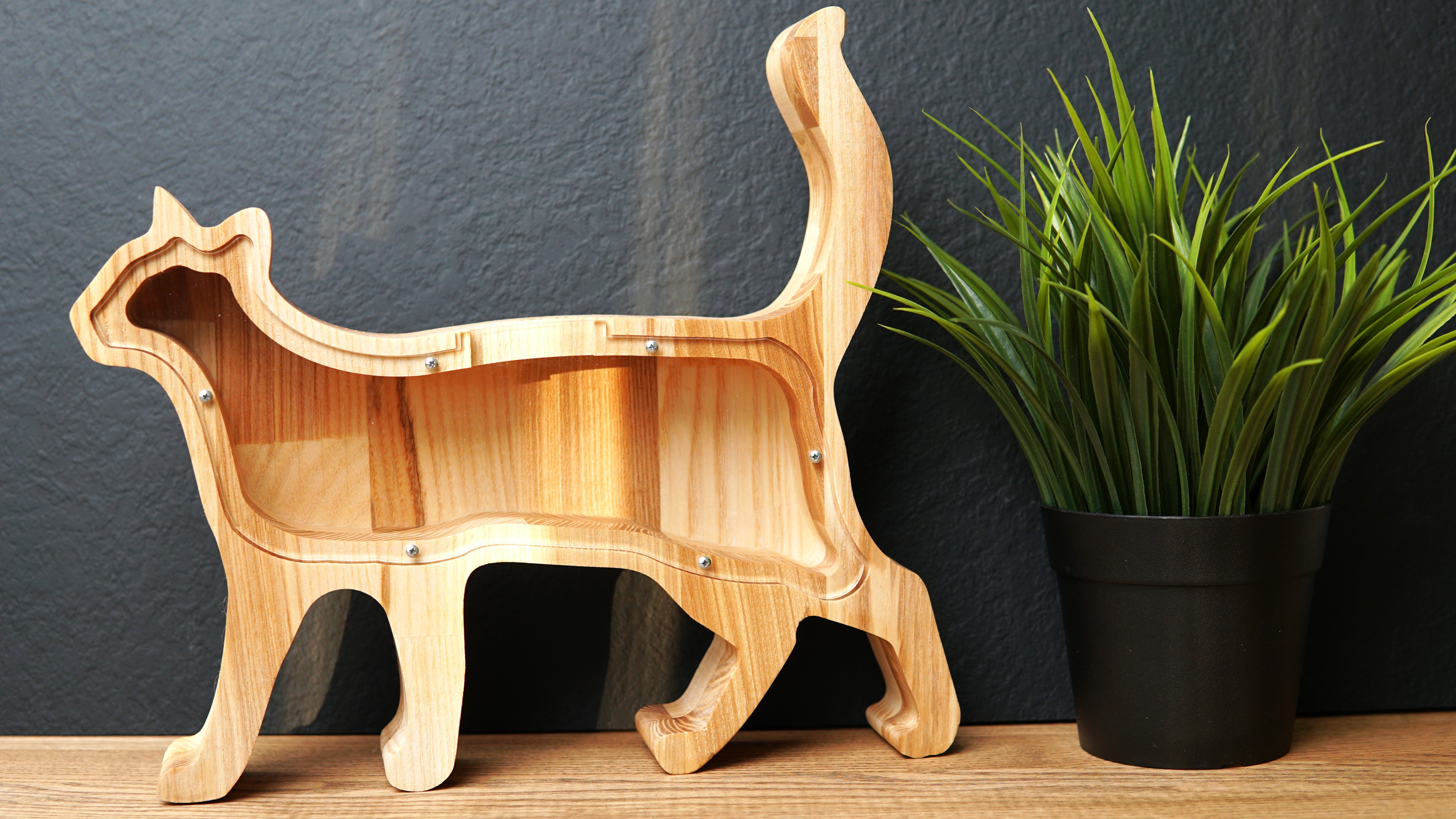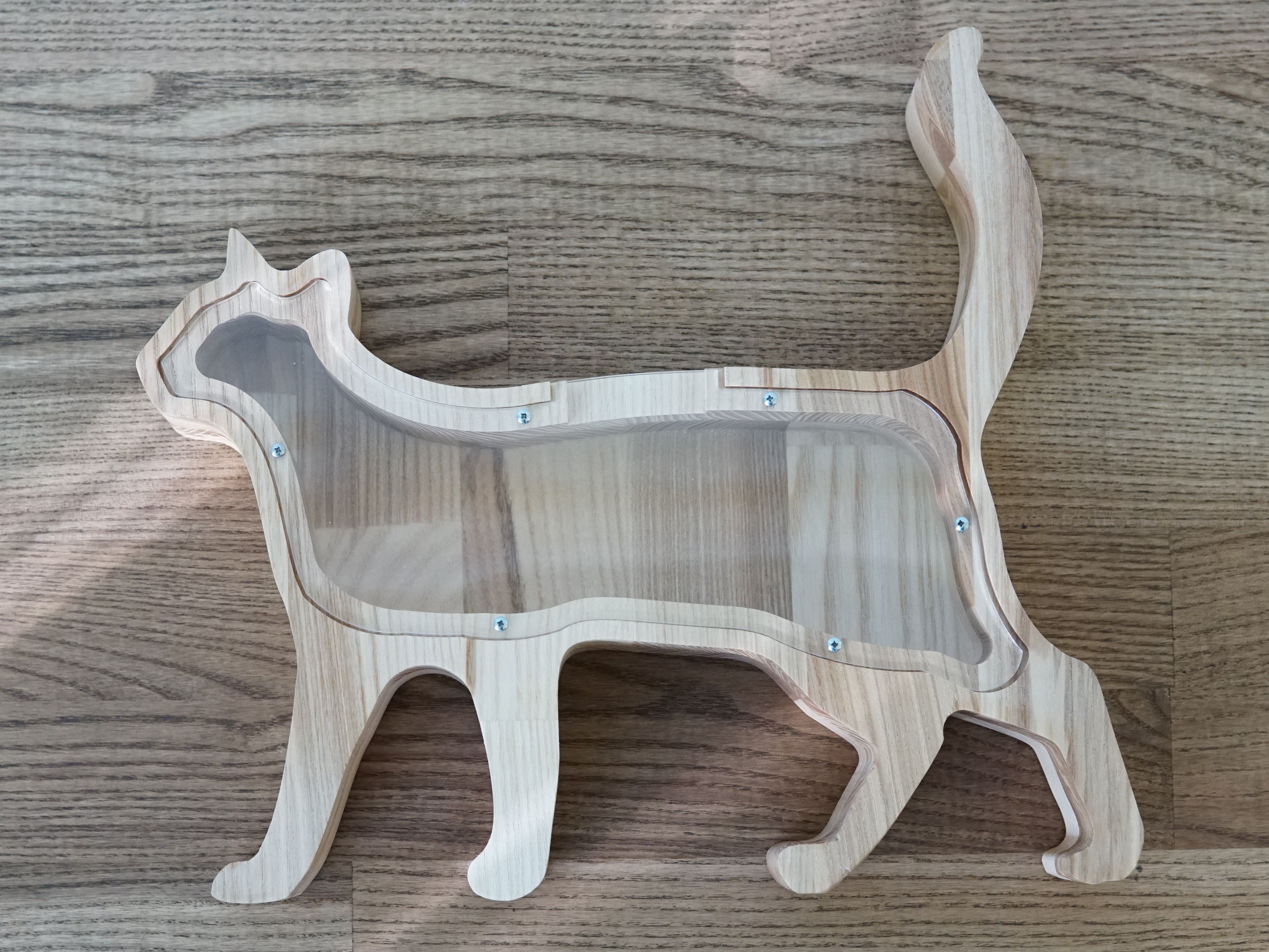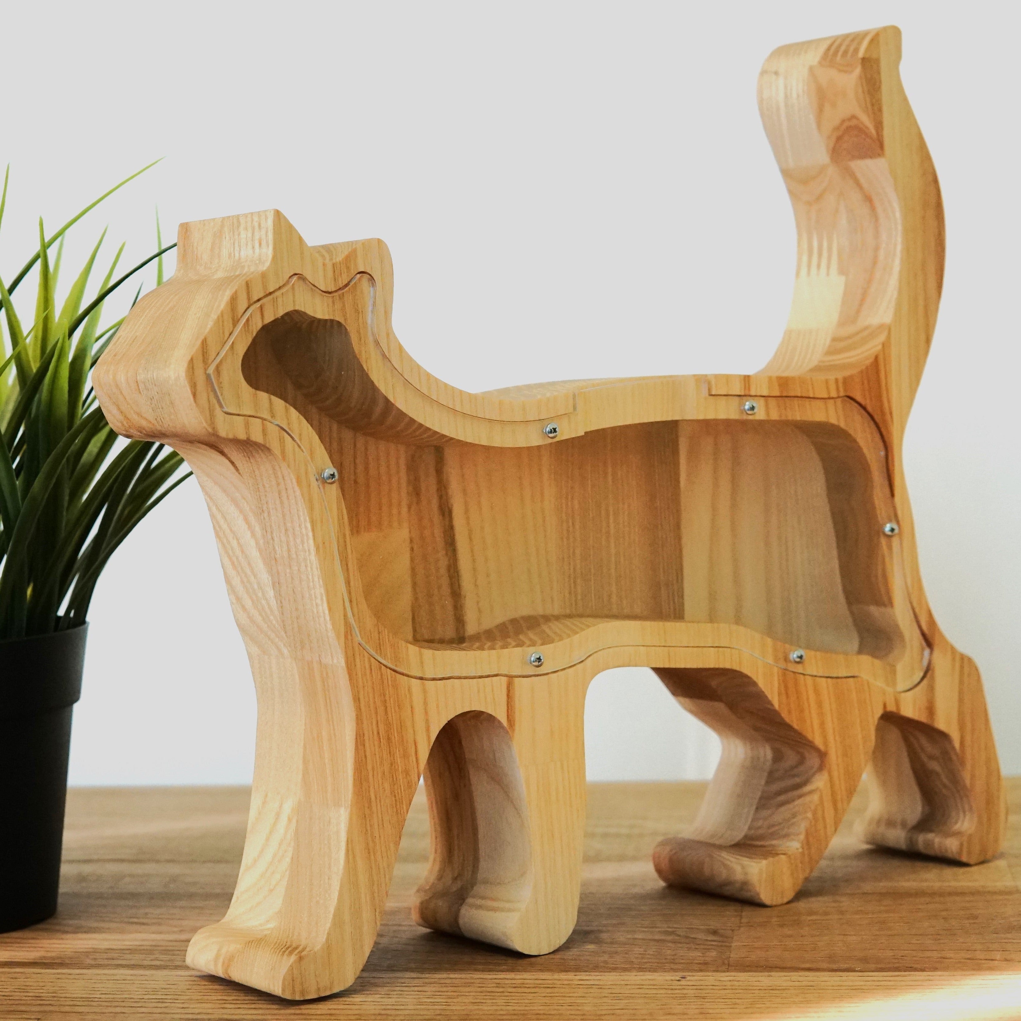 Wooden Piggy Bank Cat (Engraving)