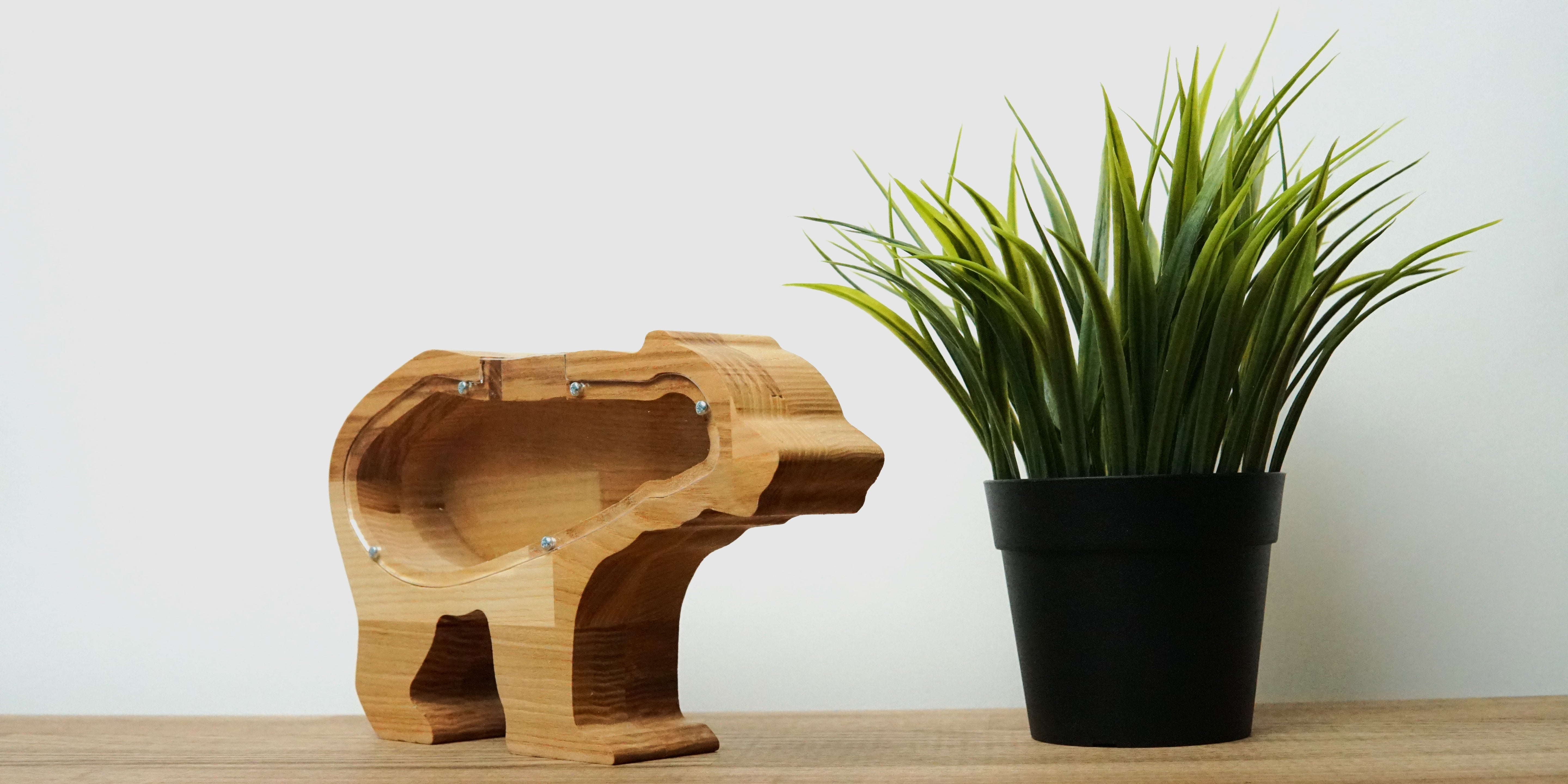 Wooden Piggy Bank Bear (Engraving)