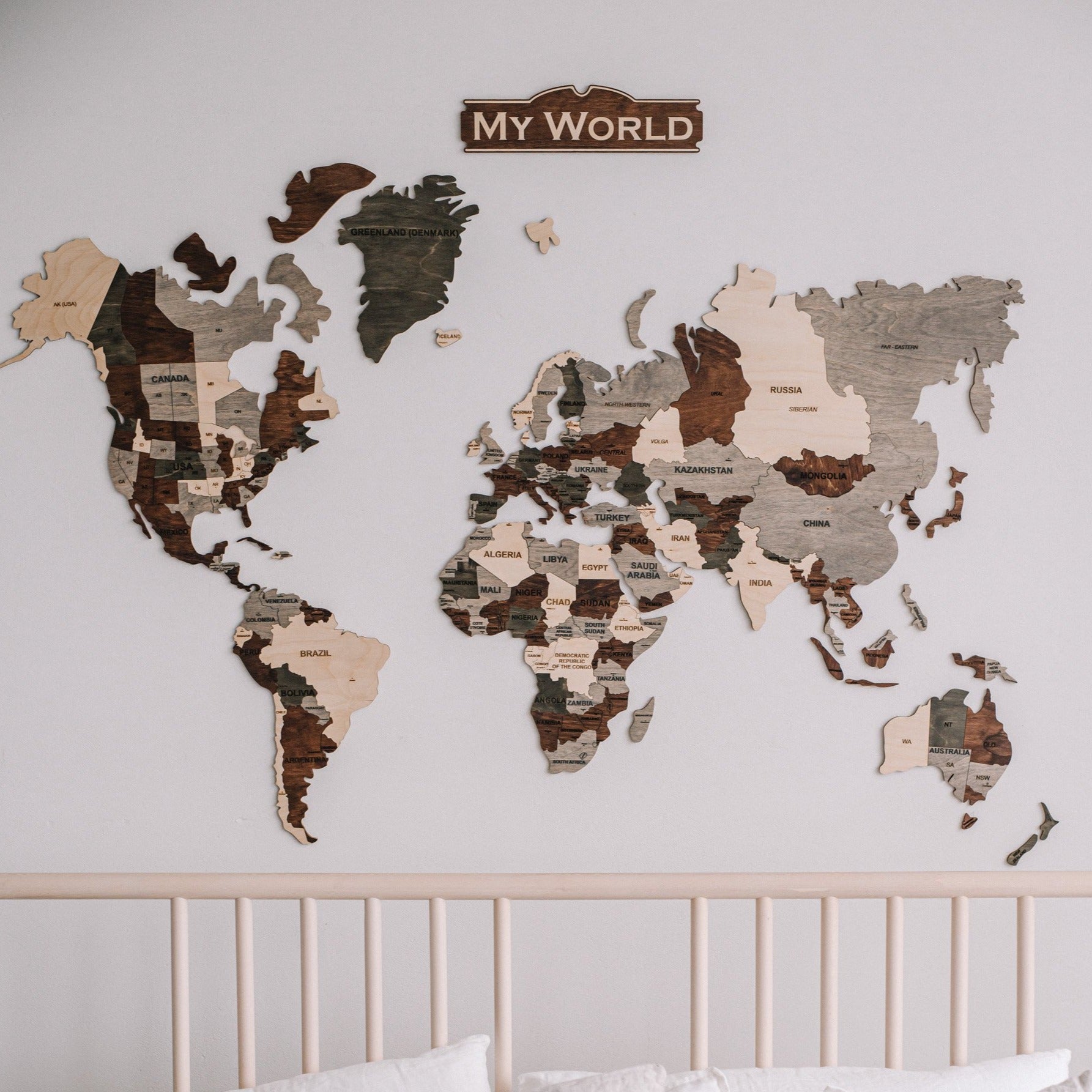 A large size wooden world map will become a nice interior detail in any room or office. Especially suitable for kids rooms, as it will make the room cozier, and will help to learn geography. Also, it is perfect for nurseries, schools, or homeschoolers, as it will not just look nice on a wall, but also inspire them to explore the World.