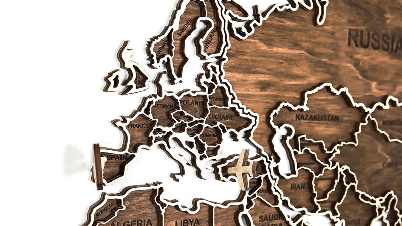 This is a unique, beautiful, and one-of-a-kind wooden Map of the World. A large size wooden world map will become a nice interior detail in any room or office. Especially suitable for kids' rooms, as it will make the room cozier, and will motivate geography learning.