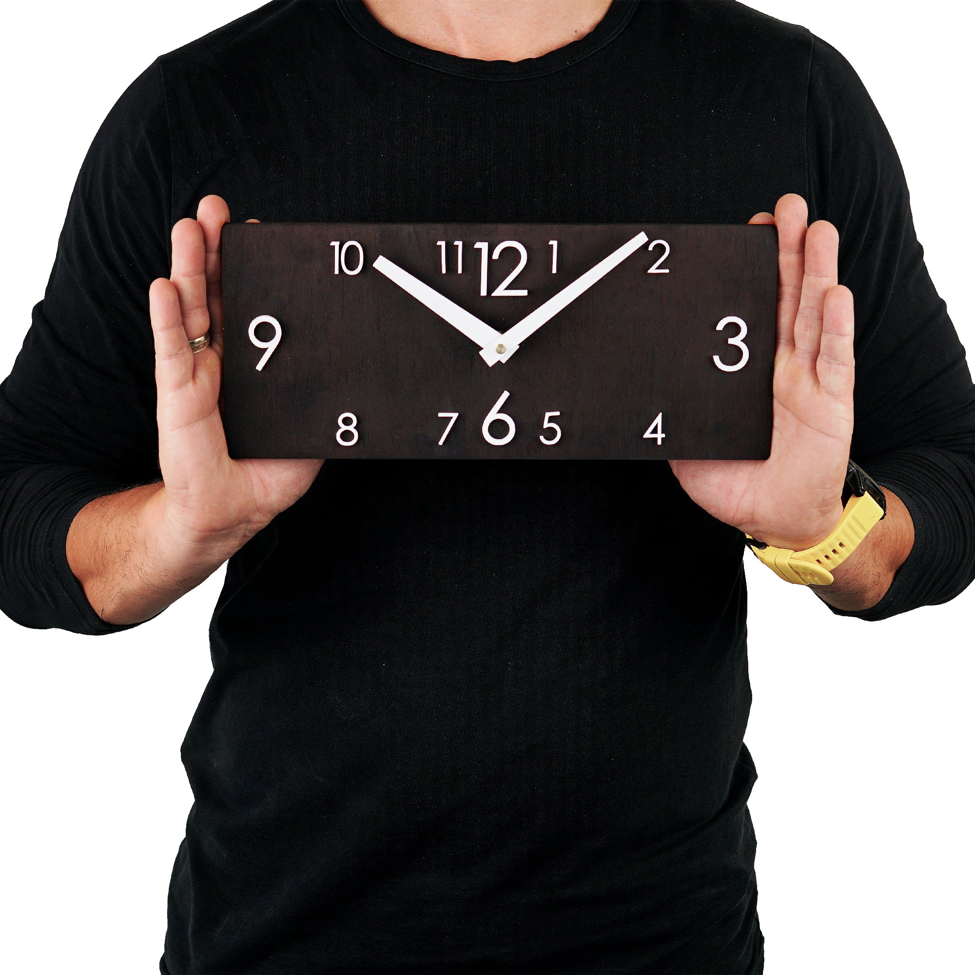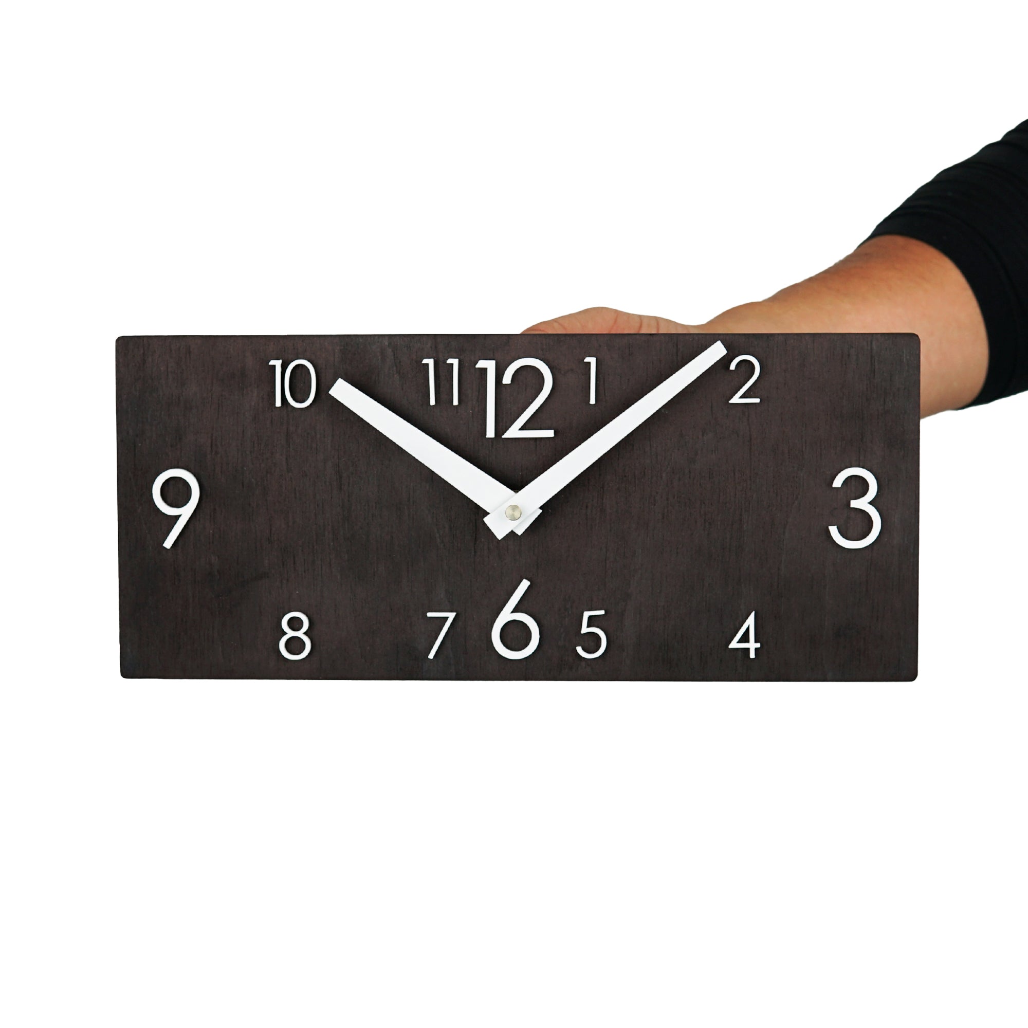 Weighing approximately 400-700 grams, this clock is lightweight and easy to hang on your wall or place on a shelf, making it a hassle-free addition to your decor. Whether you're looking to enhance your living room, bedroom, or workspace, the Black Plywood Clock with White Clock Arrows is a statement piece that effortlessly combines form and function, bringing a sense of timeless style to your surroundings.