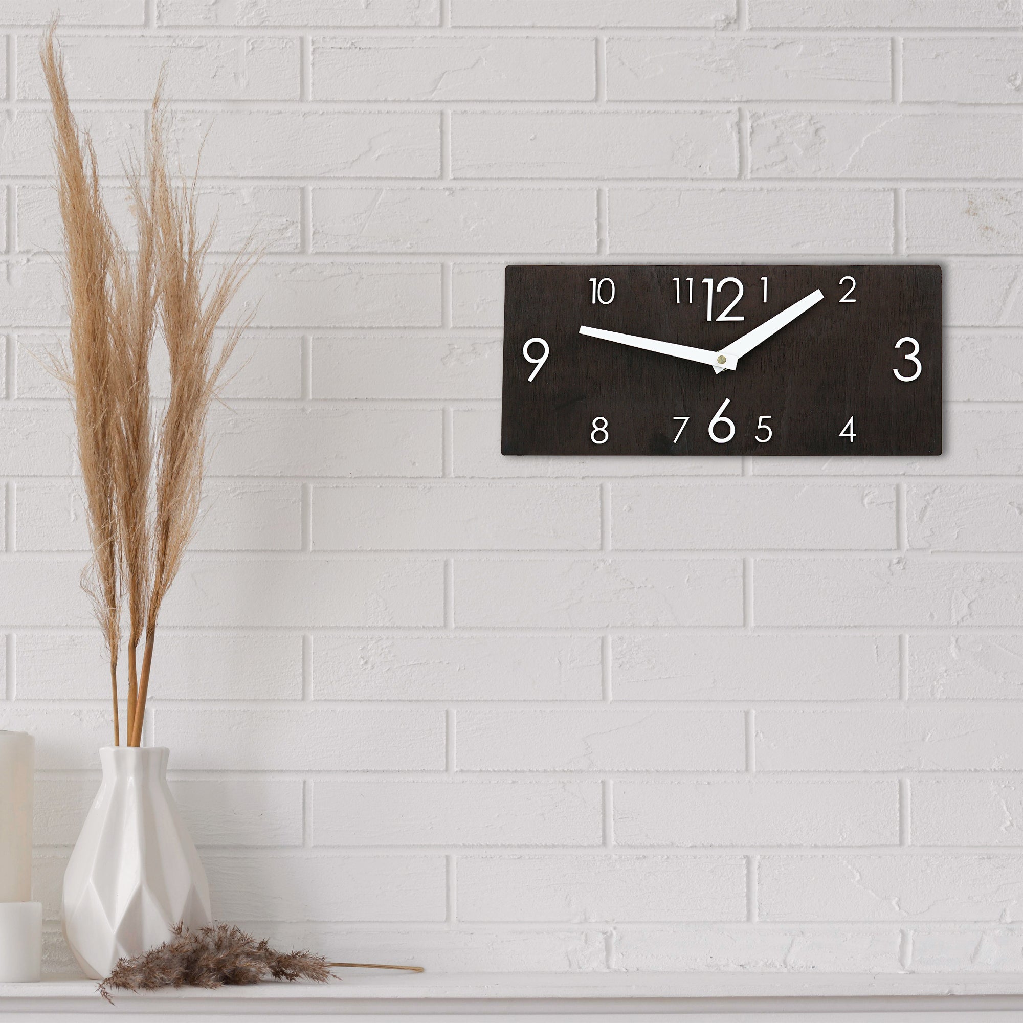 The clock features crisp white clock arrows that provide a striking contrast against the black backdrop. These arrows are not only visually appealing but also ensure excellent visibility, allowing you to keep track of time with ease.