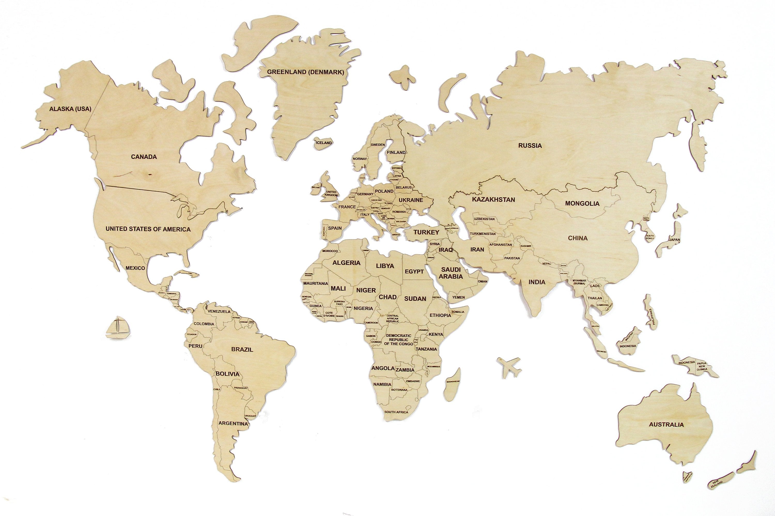 This is a unique, beautiful, and one-of-a-kind wooden map of the world. A large size wooden world map will become a nice interior detail in any room or office. Especially suitable for kids rooms, as it will make the room cozier, and will help to learn geography. Also, it is perfect for nurseries, schools, or homeschoolers, as it will not just look nice on a wall, but also inspire them to explore the World.