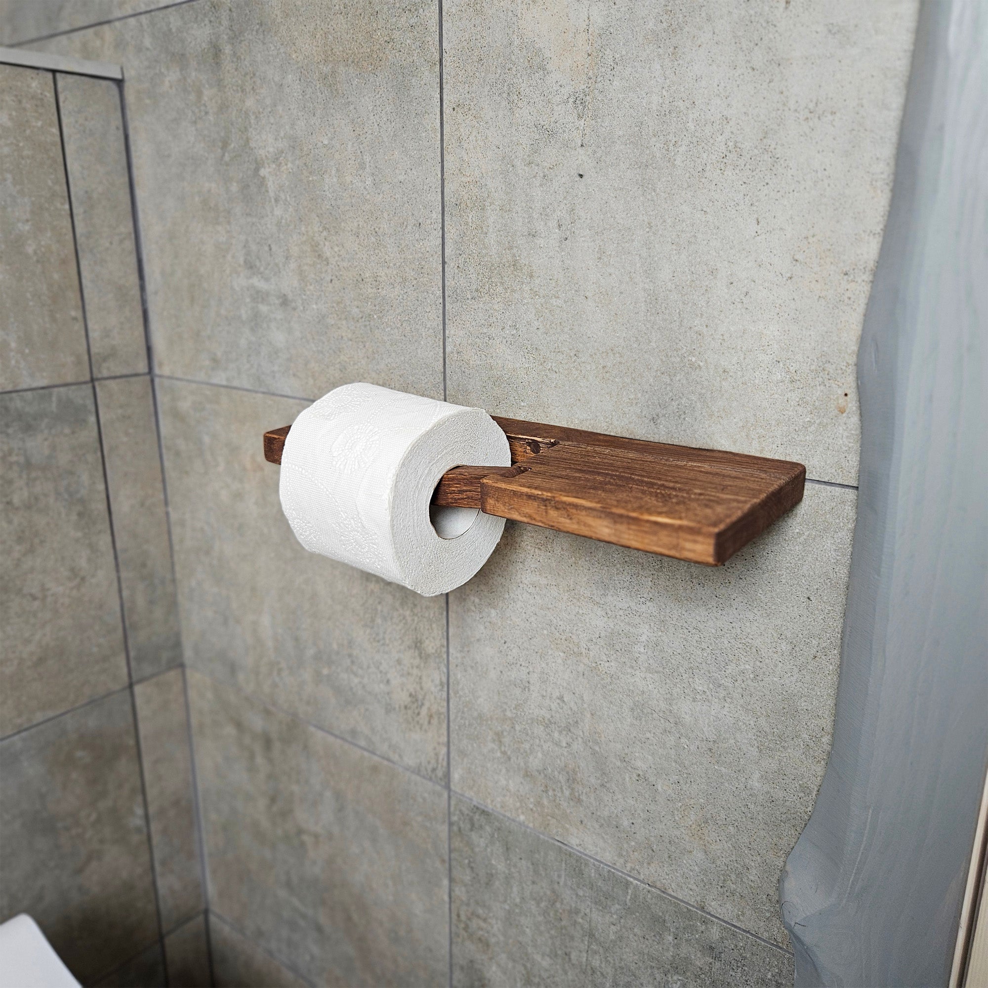 This wooden toilet paper holder with a shelf is made from sturdy oak, ensuring durability and style. The wall-mounted design saves space and ensures that toilet paper is easily accessible. The shelf is perfect for holding small items like a phone or decorative accents. This is a must-have accessory for any bathroom.