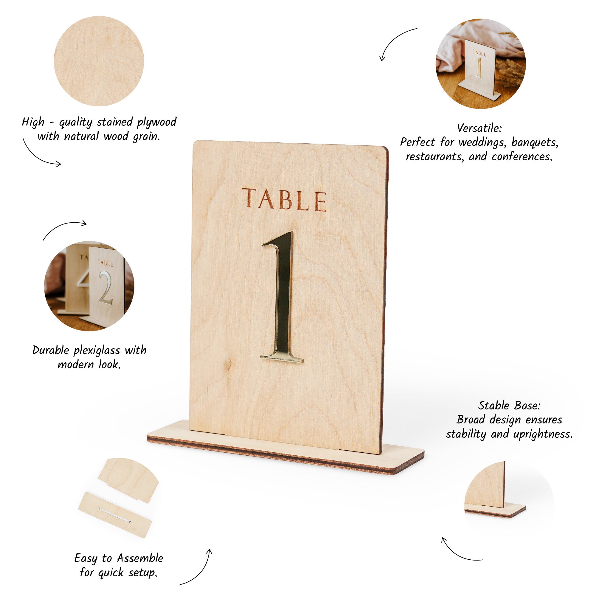 - Each number features a minimalist arch-shaped design. Its simple, modern look makes it easy to place on any table without additional support. The design is perfect for adding an elegant touch to any event or wedding decor.