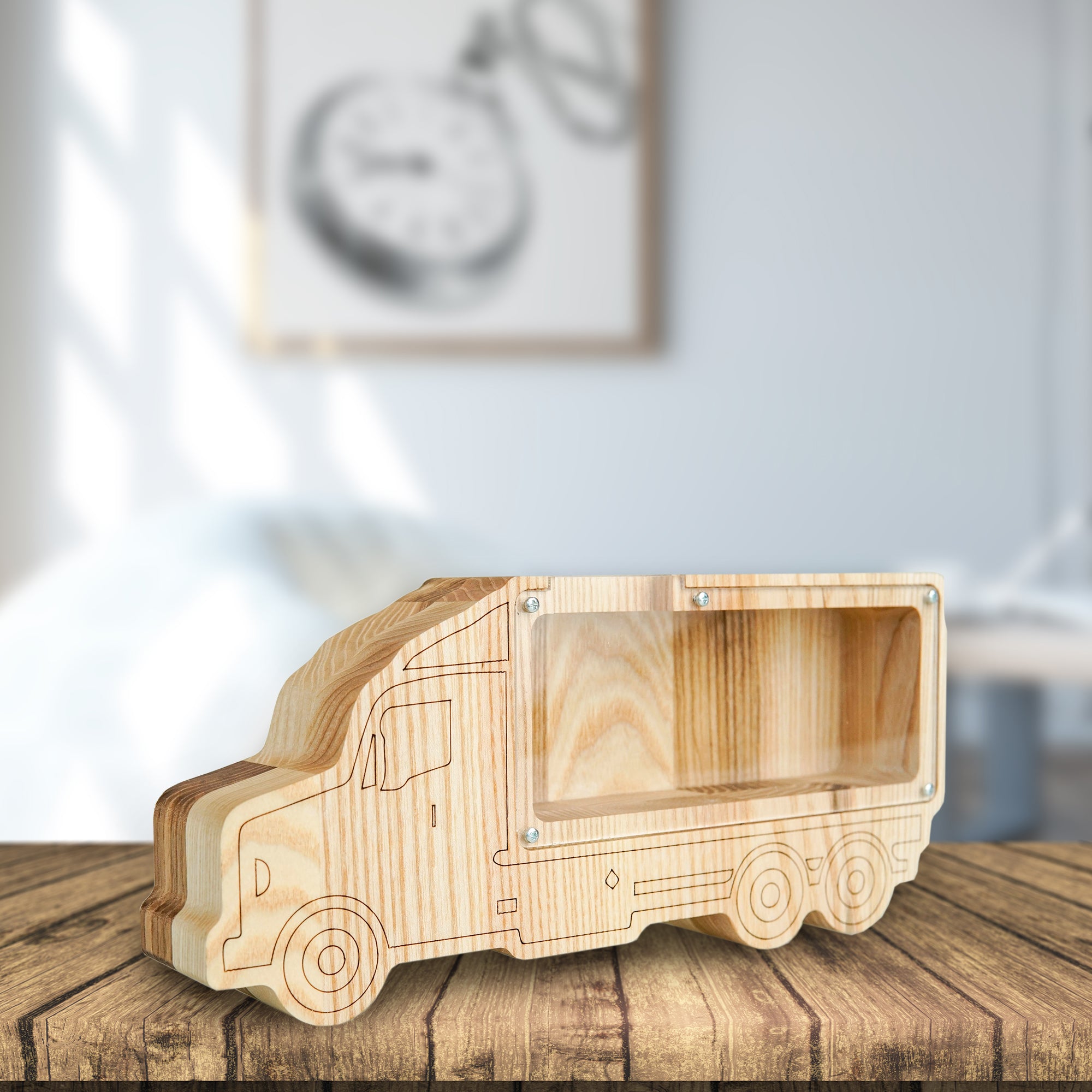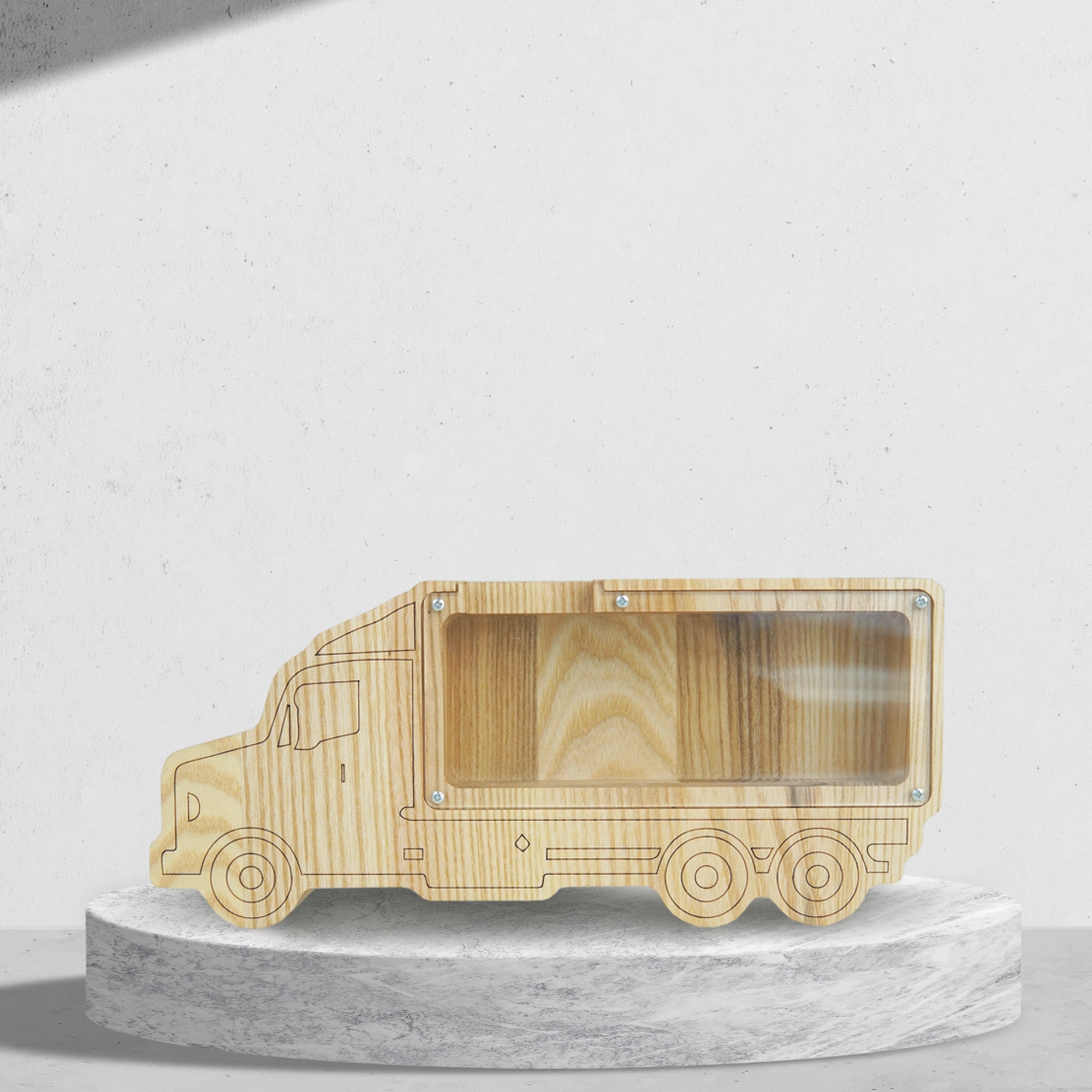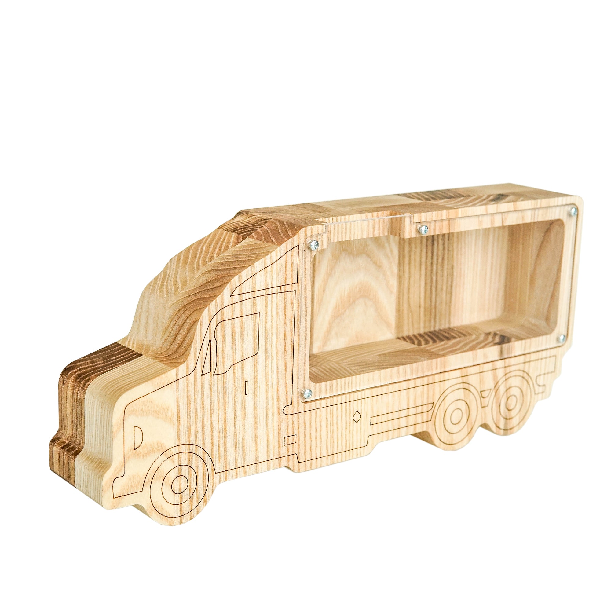 Truck-Shaped Wooden Piggy Bank, Ash Wood Coin Box, Gift for Truck Enthusiasts