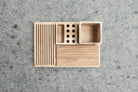 The desk organizer is crafted from a single glued piece of wood, designed and made in our workshop using a CNC milling technology.
