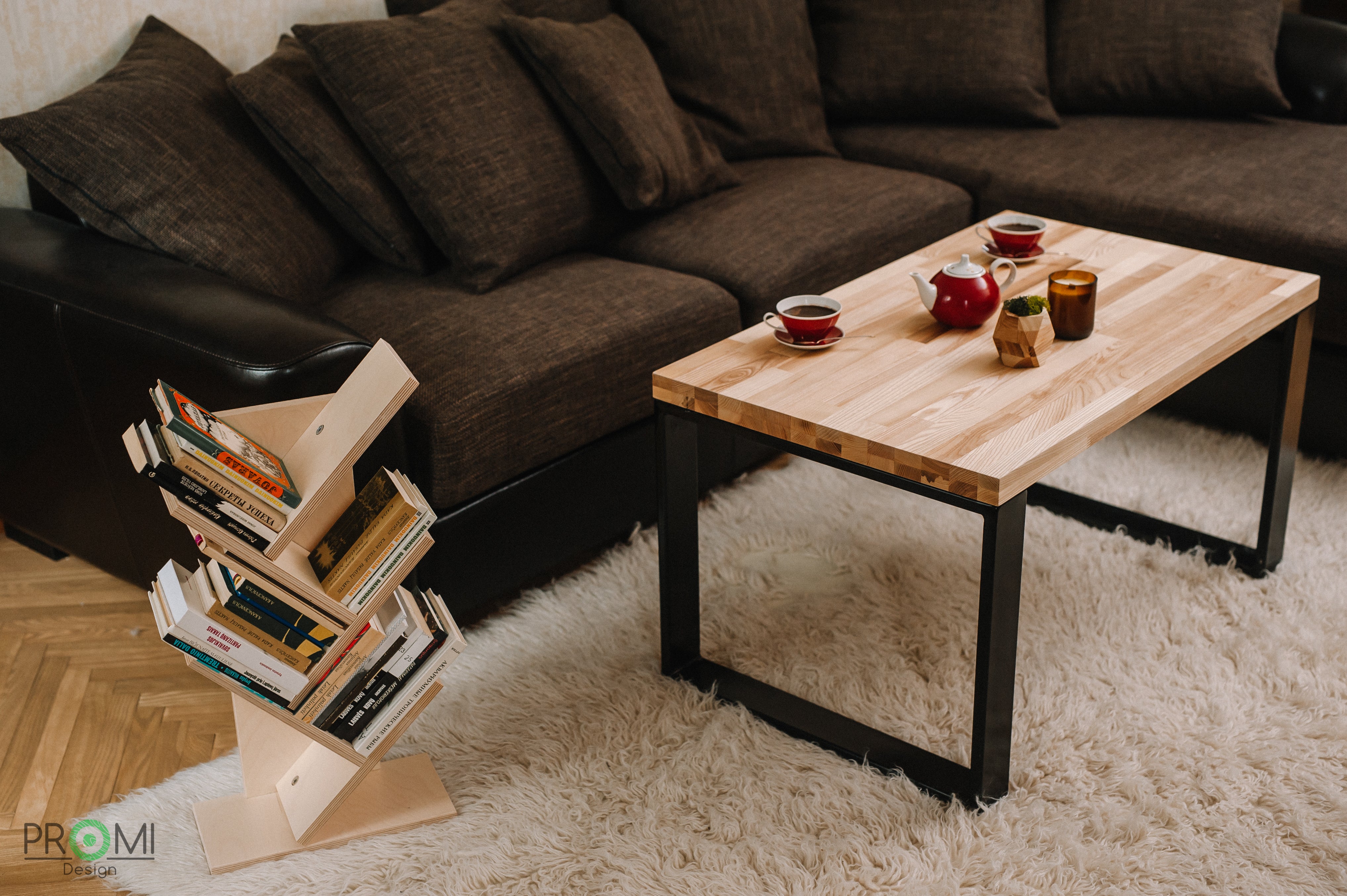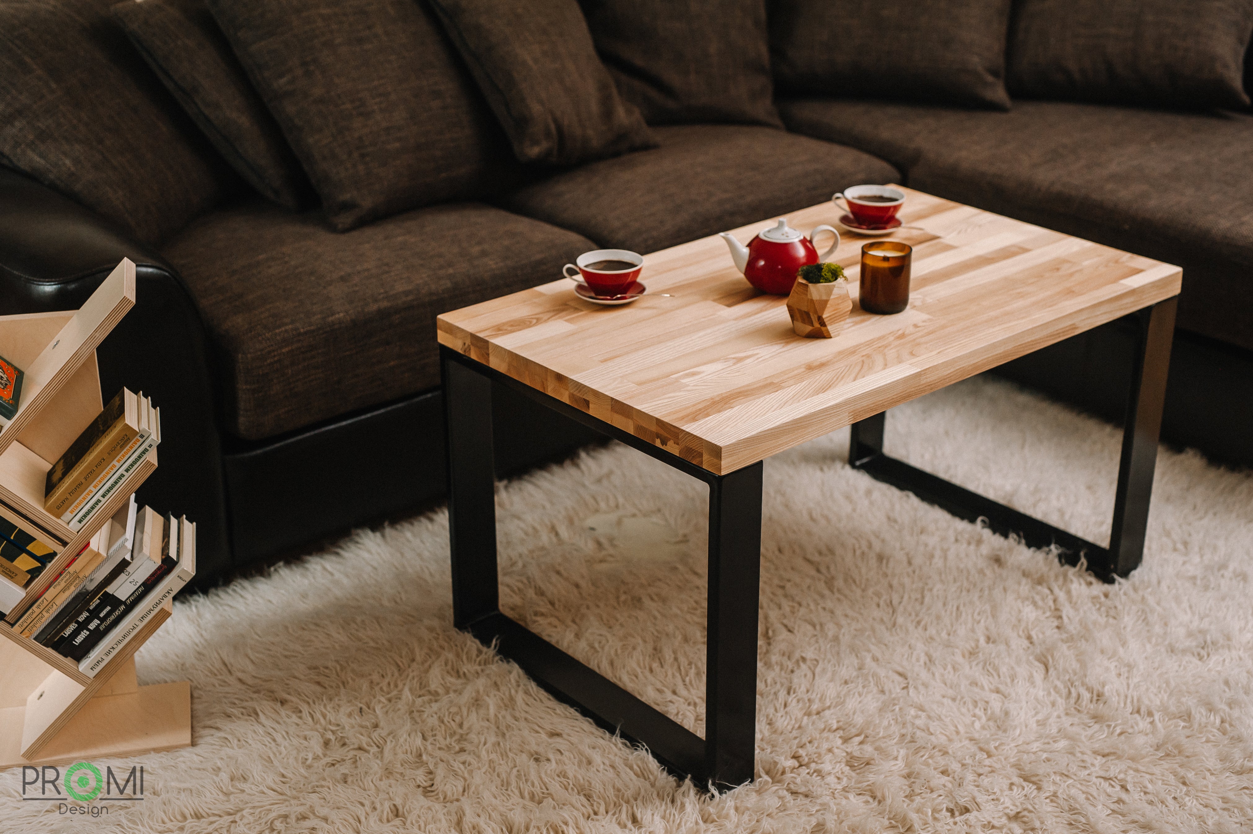 Coffee Table - wooden coffee table with metal legs