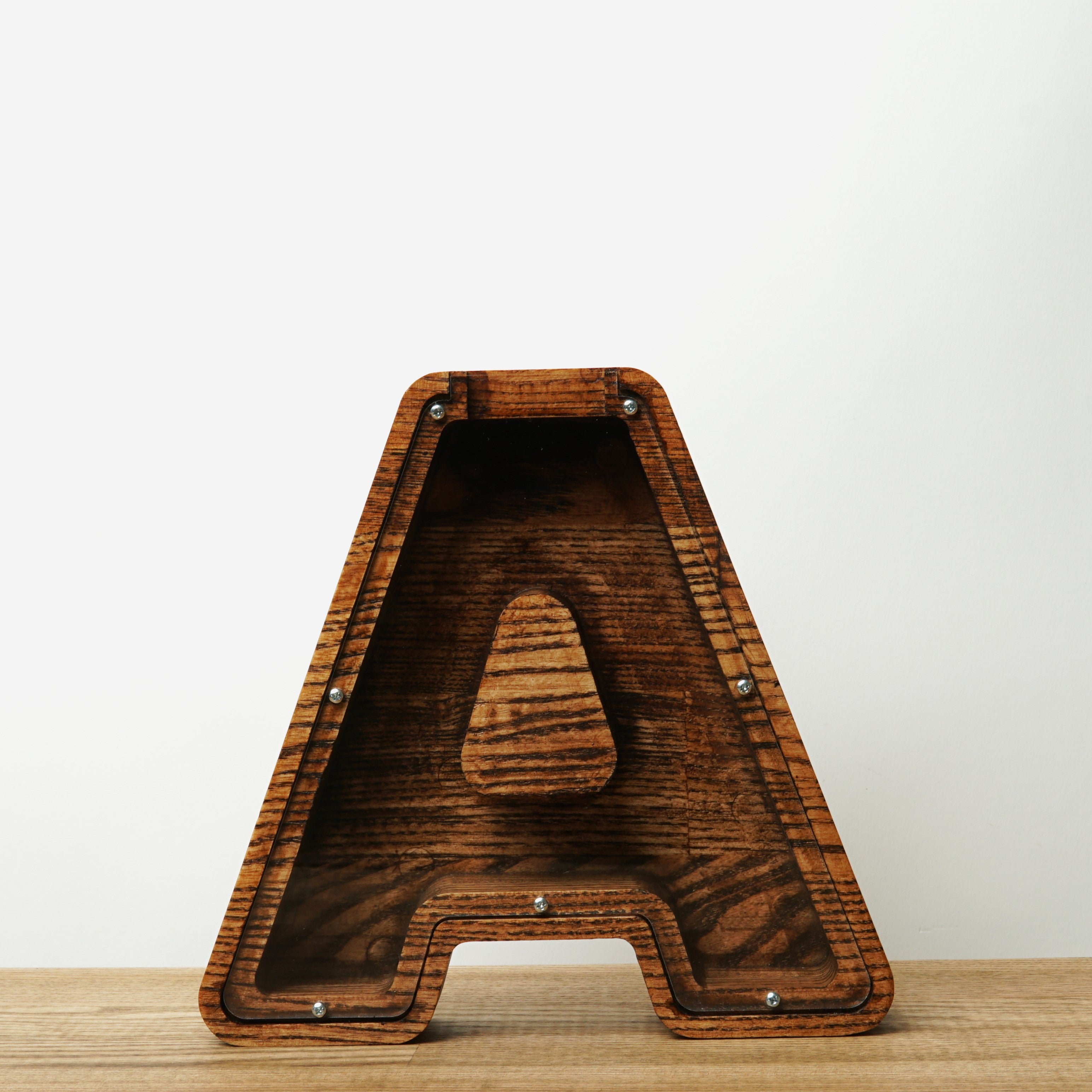 Wooden Piggy Bank Letter (Small, Brown, A-Z, Engraving)
