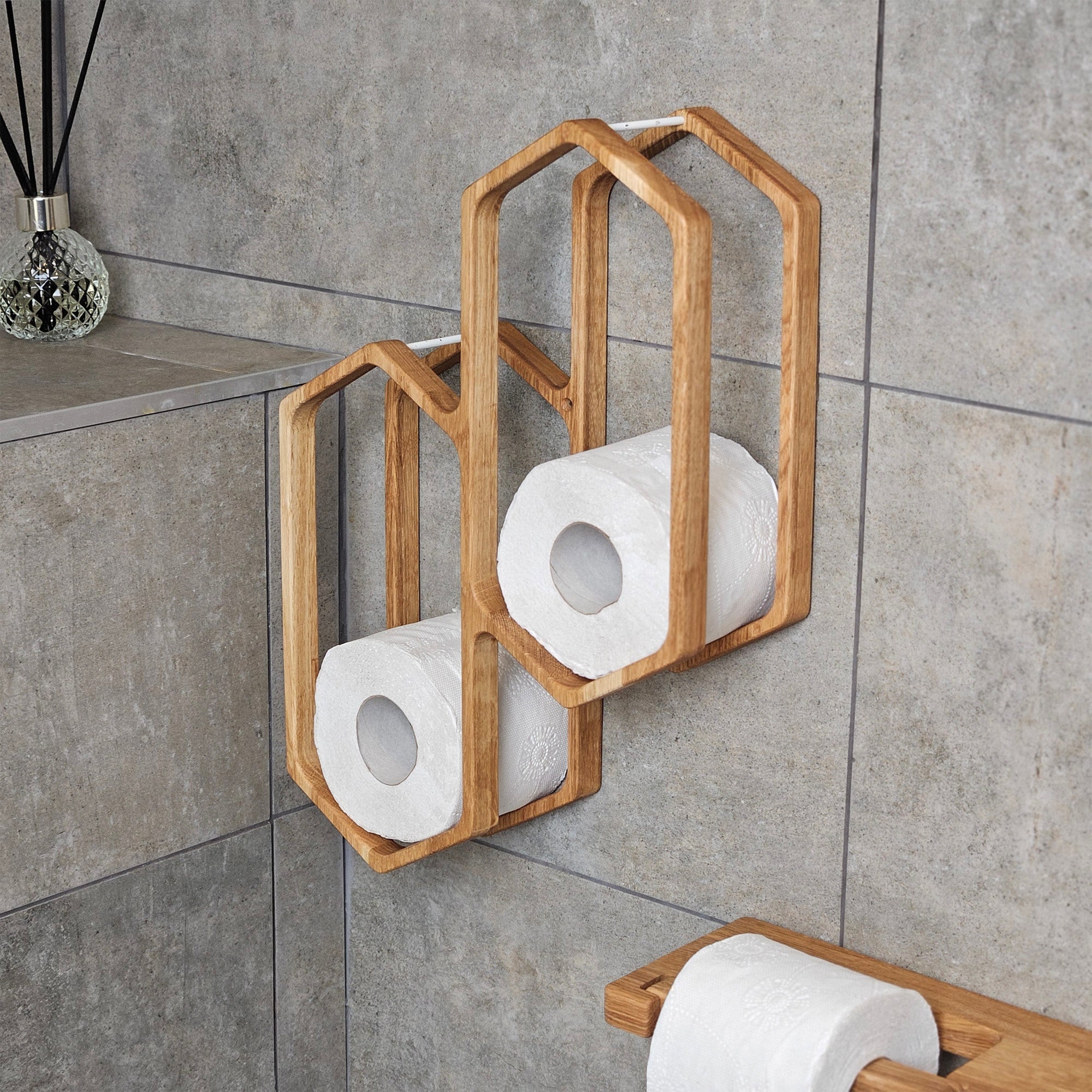 Wooden Toilet Paper Holder for 4-Roll Storage, Wall-Mounted Rack for Bathroom Organization