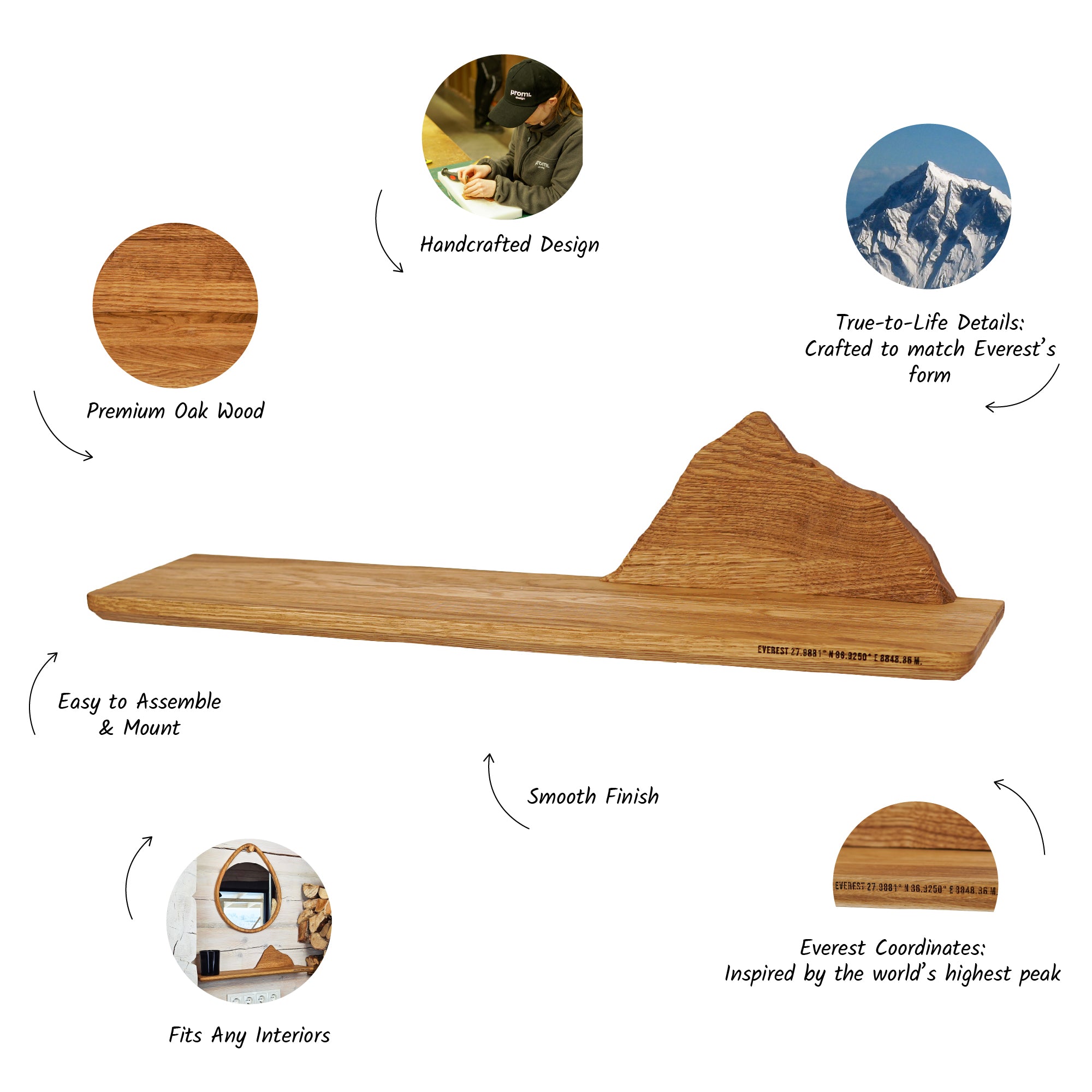 Wooden Shelf with Mountain Design, Functional Storage and Unique Decoration for Modern and Rustic Spaces