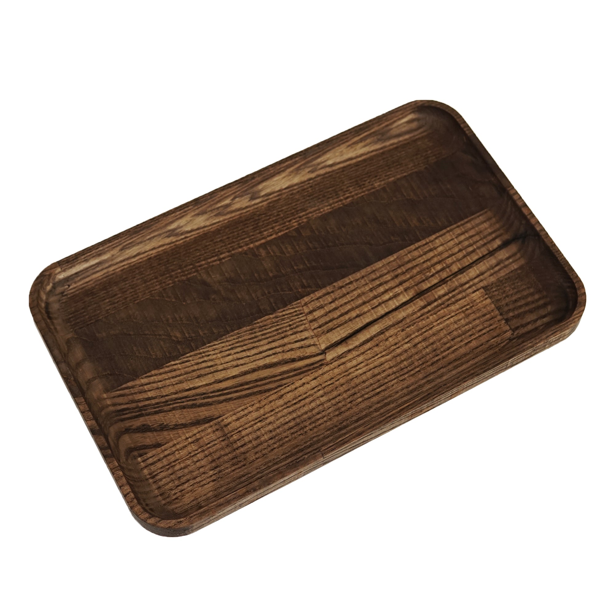 Natural and eco-friendly materials were used in the production of this wooden pallet. The tray itself is made of natural solid ash wood. Brown paint was used to give the substrate properties of durability and long-lasting, and at the same time to make it fit better into the interior. In addition, a protective layer of clear lacquer is applied, which protects the product from moisture and scratches, and at the same time makes the tray suitable for use with food due to the good properties of the lacquer.