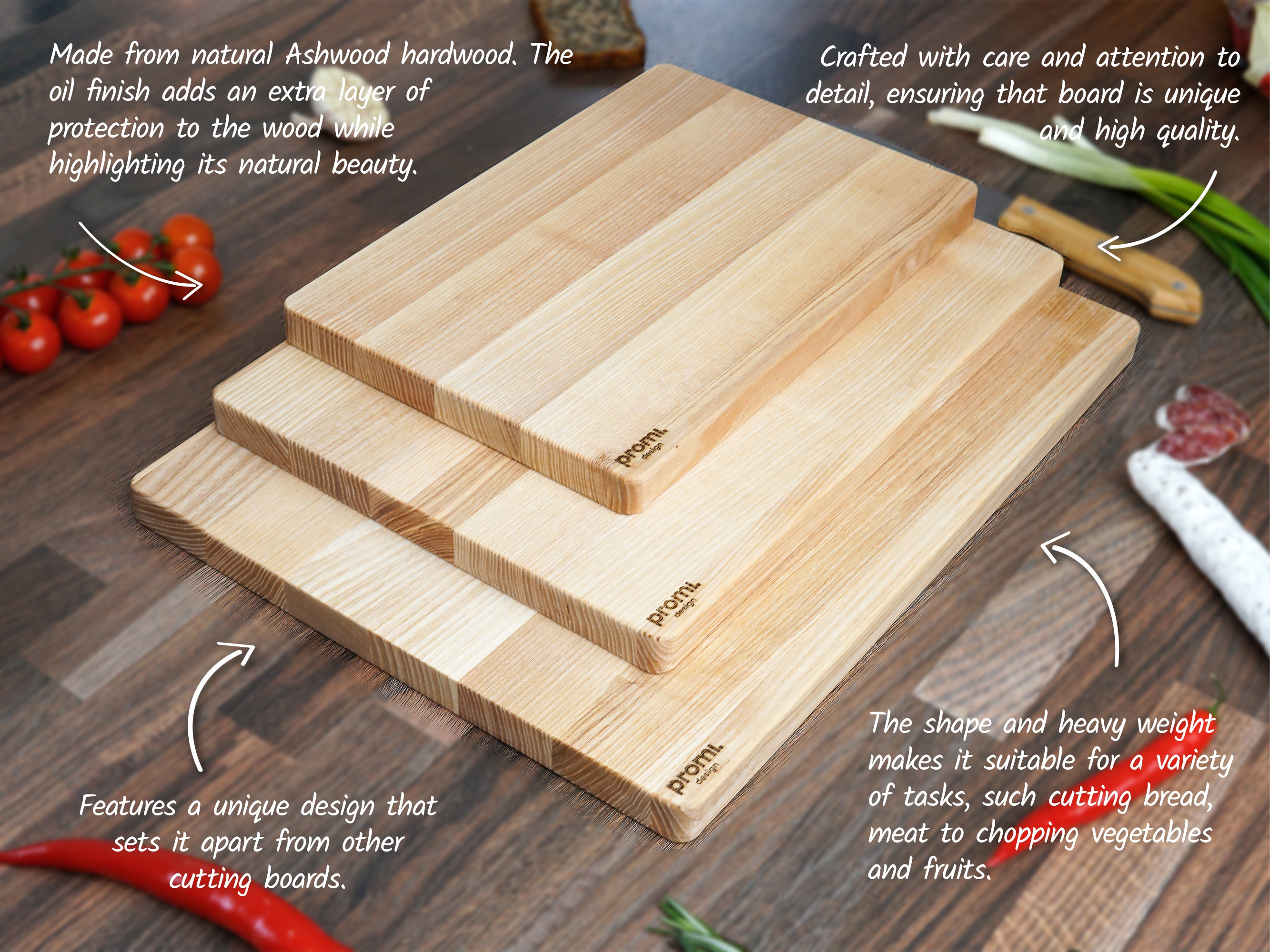 Hard Natural Ashwood Block Cutting Board (3 sizes, 3 colors )