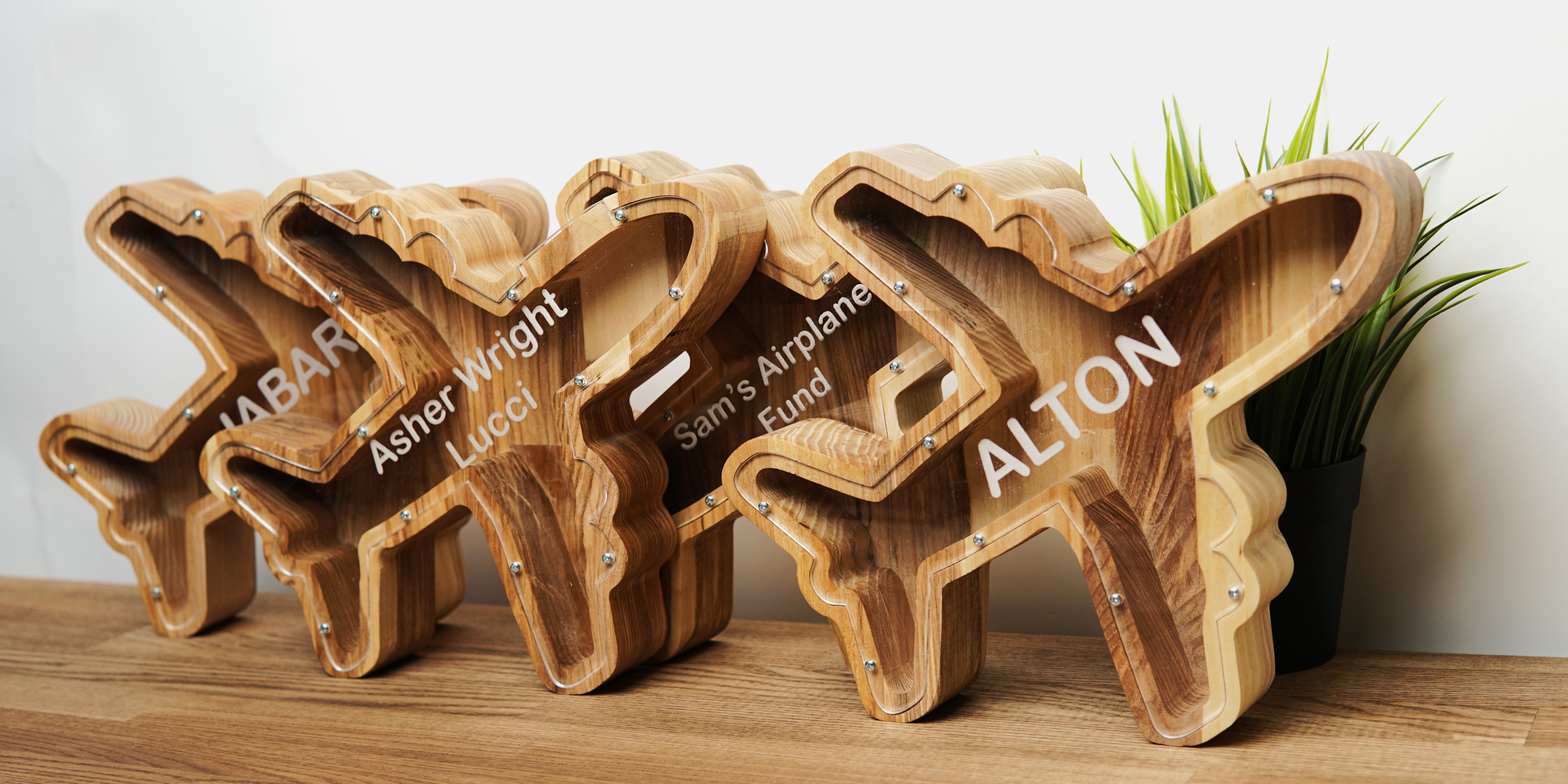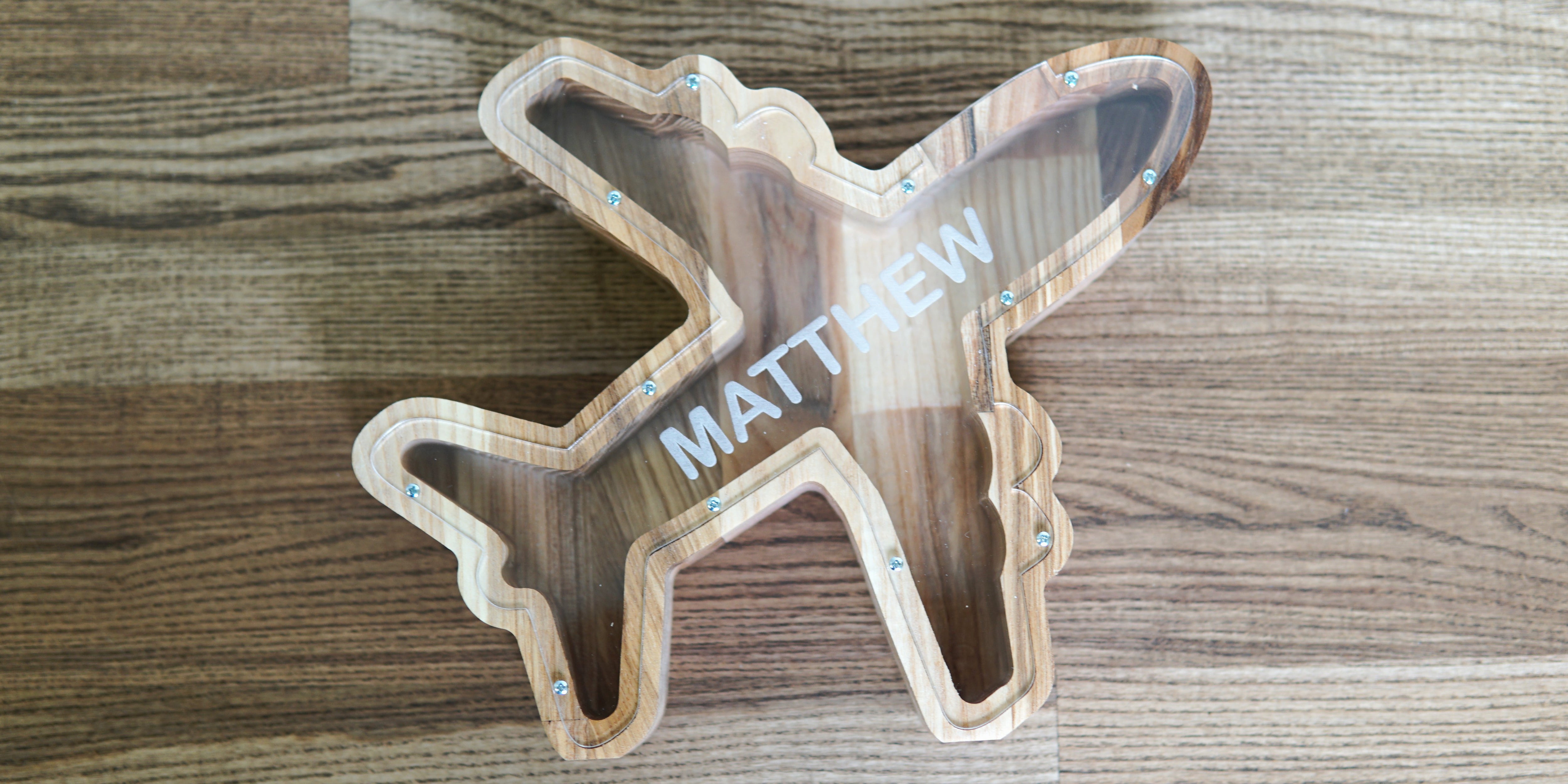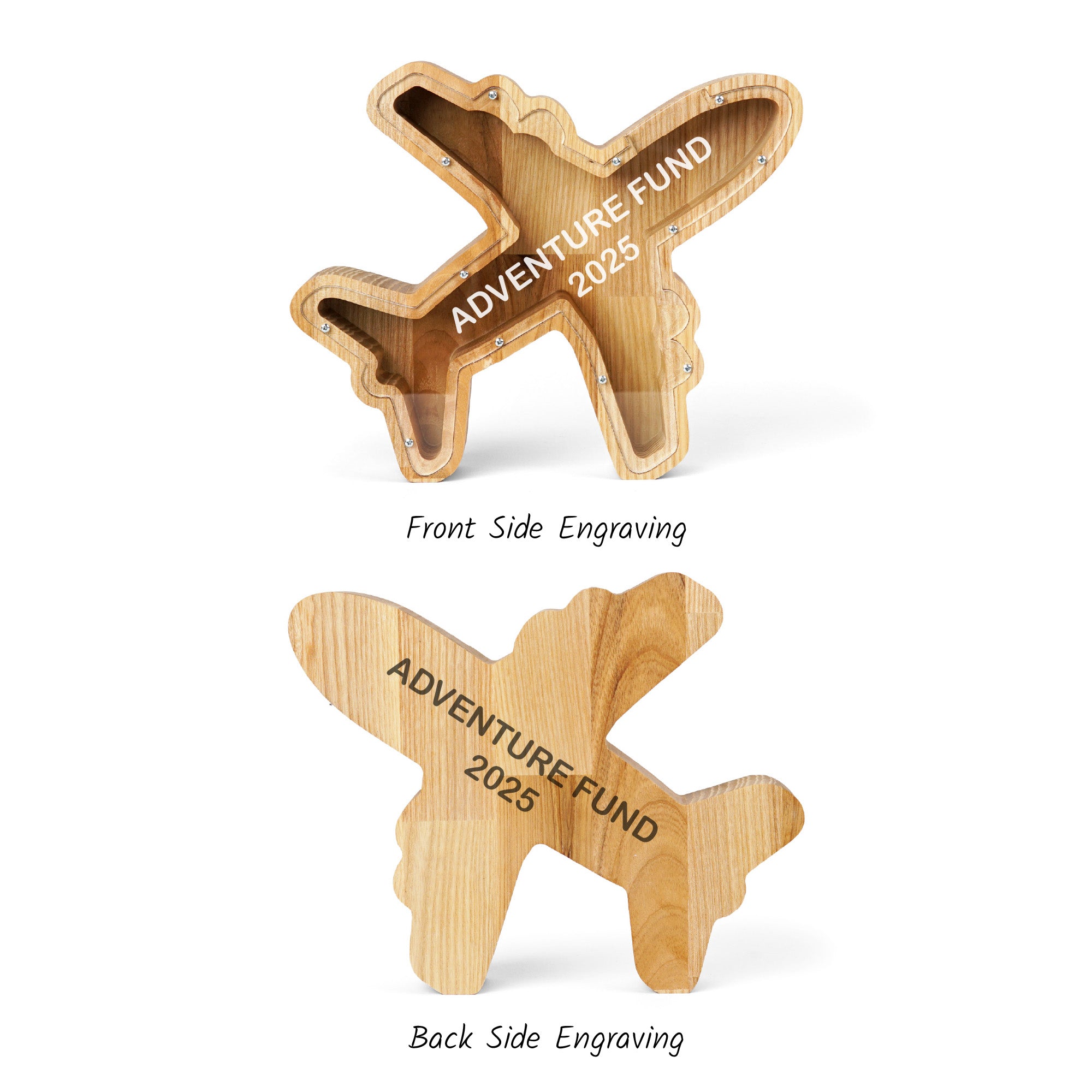 Personalized Airplane Money Box for Saving Money, Unique Wooden Coin Bank for Children, Desk, or Travel Lovers