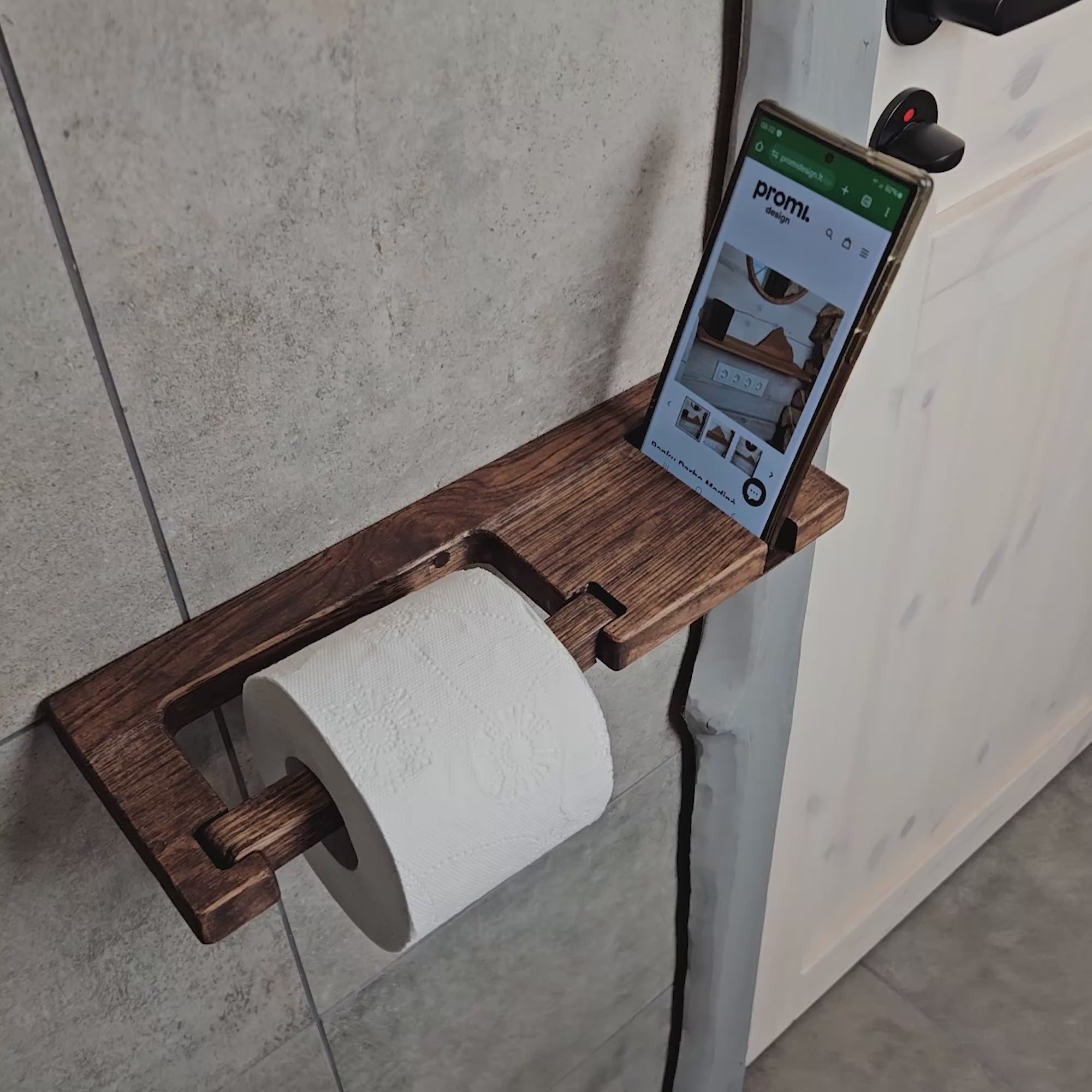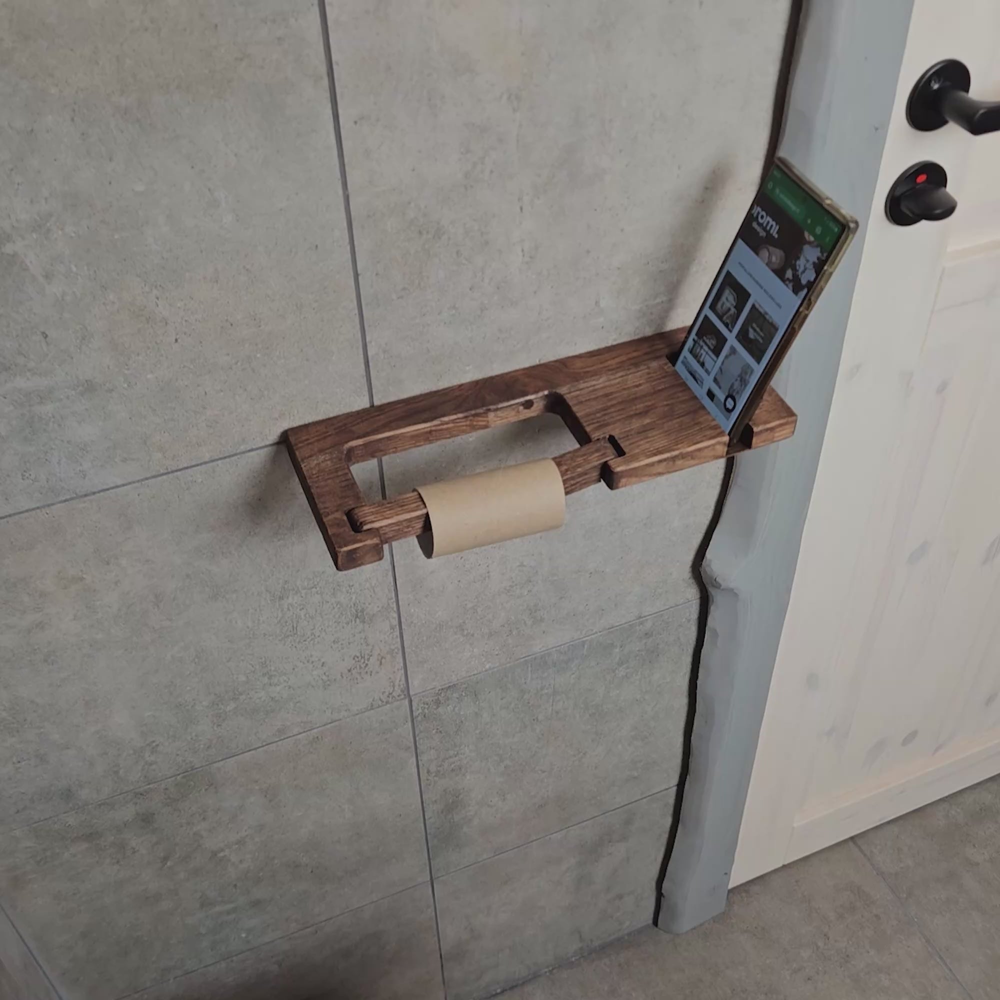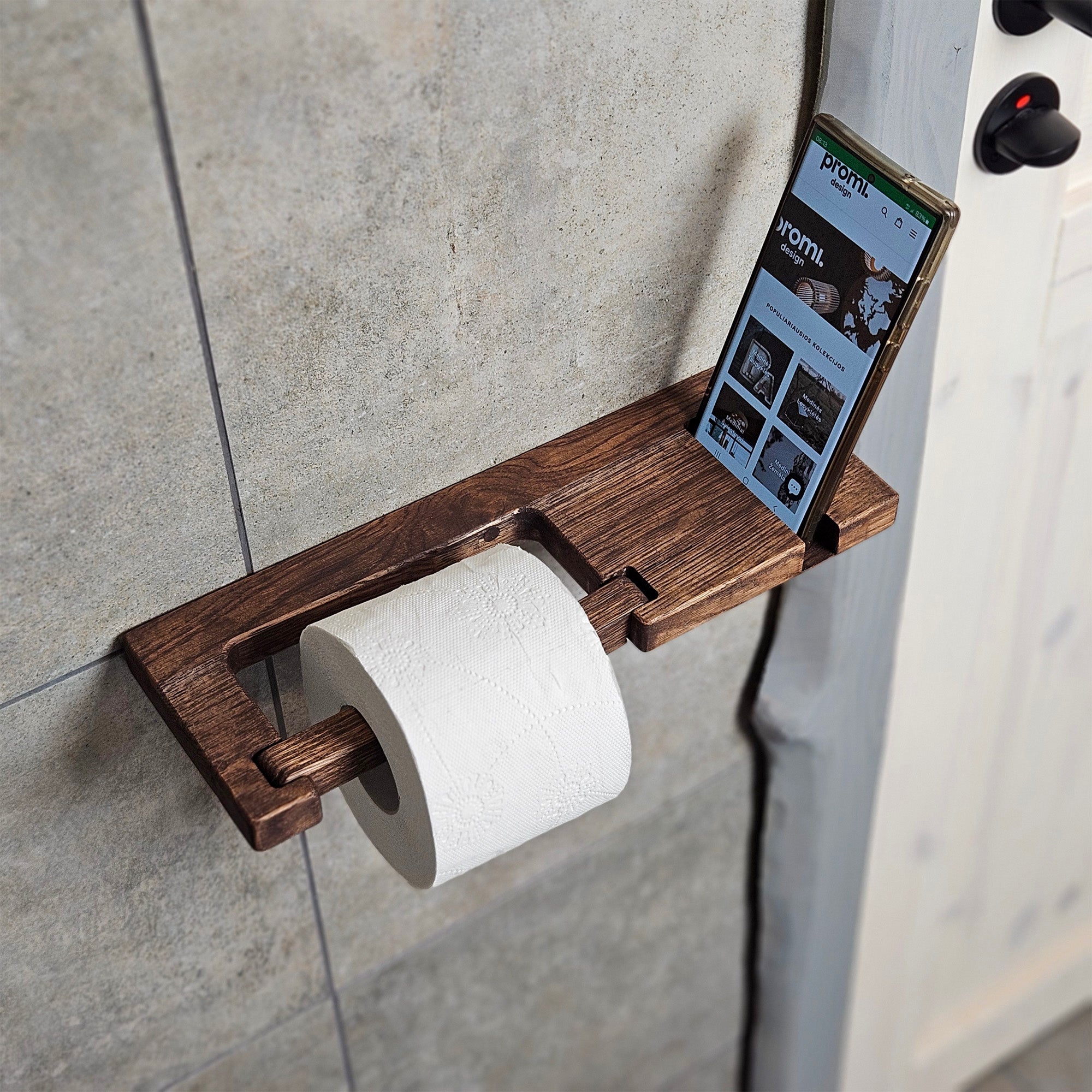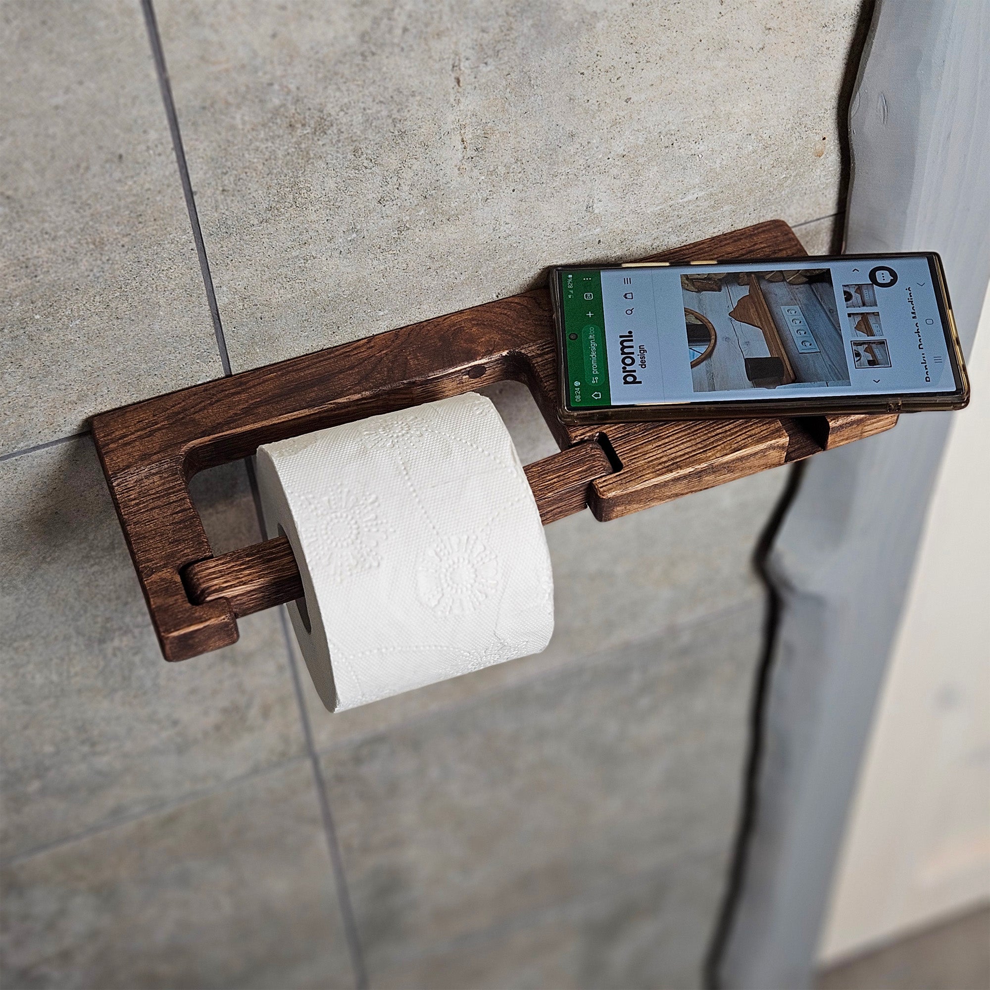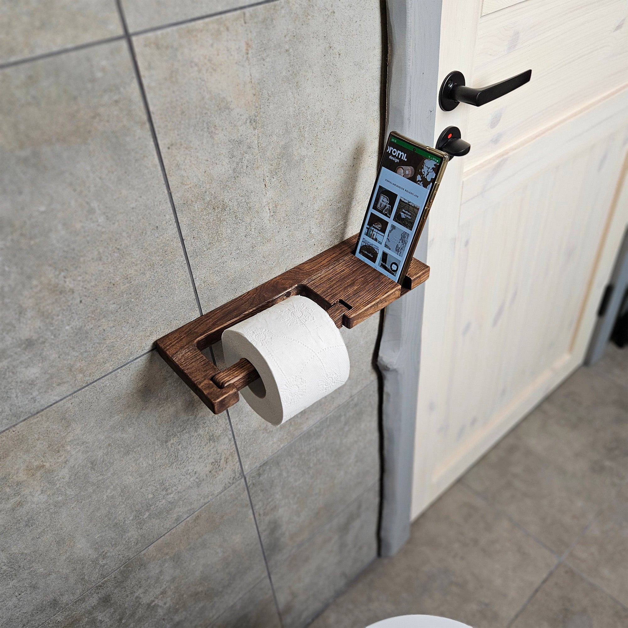 This wall-mounted toilet paper holder is made from solid oak and includes a built-in phone shelf. It’s a practical solution for keeping your essentials close while keeping your bathroom setup clean and simple. The design fits standard toilet paper rolls and mounts easily to any bathroom wall. Good for small bathrooms or anyone looking for space-saving options. The minimalist style works well with modern or Scandinavian interiors. Suitable for residential bathrooms, guest bathrooms, or short-term rental units.
